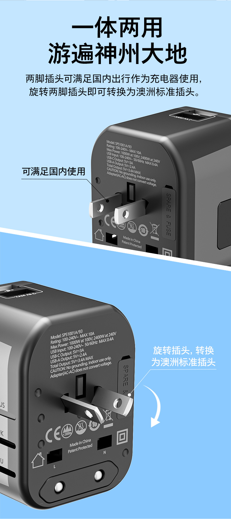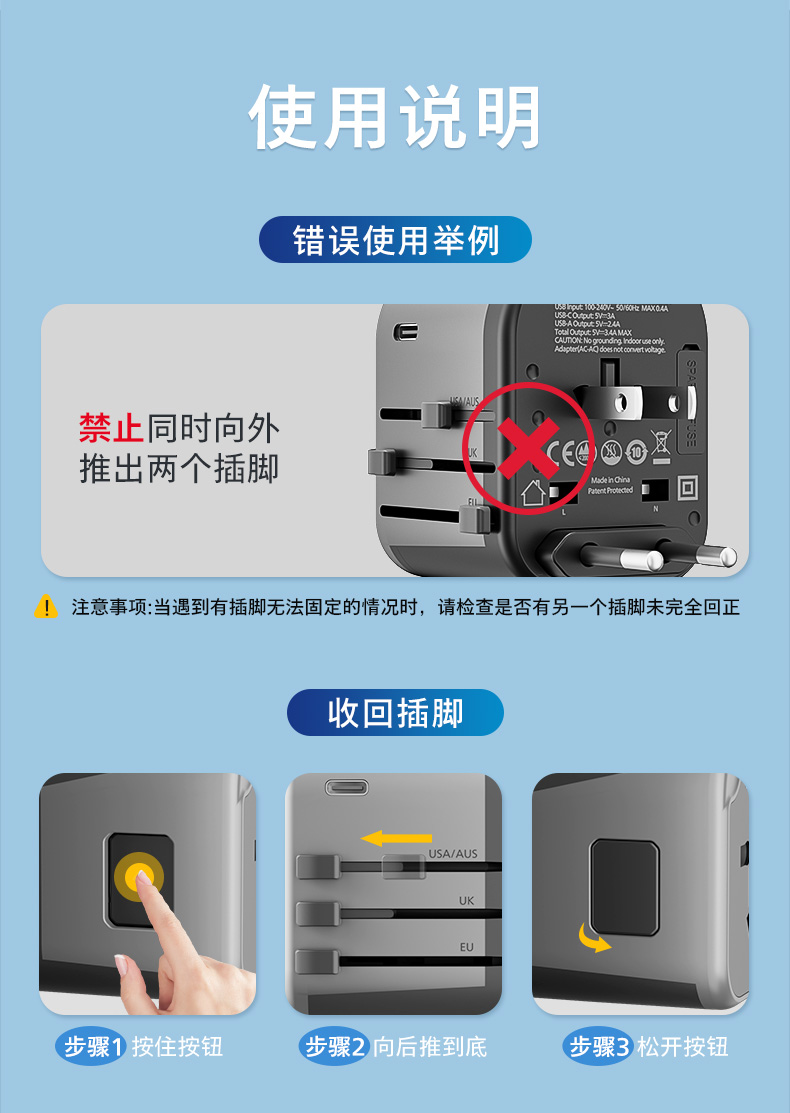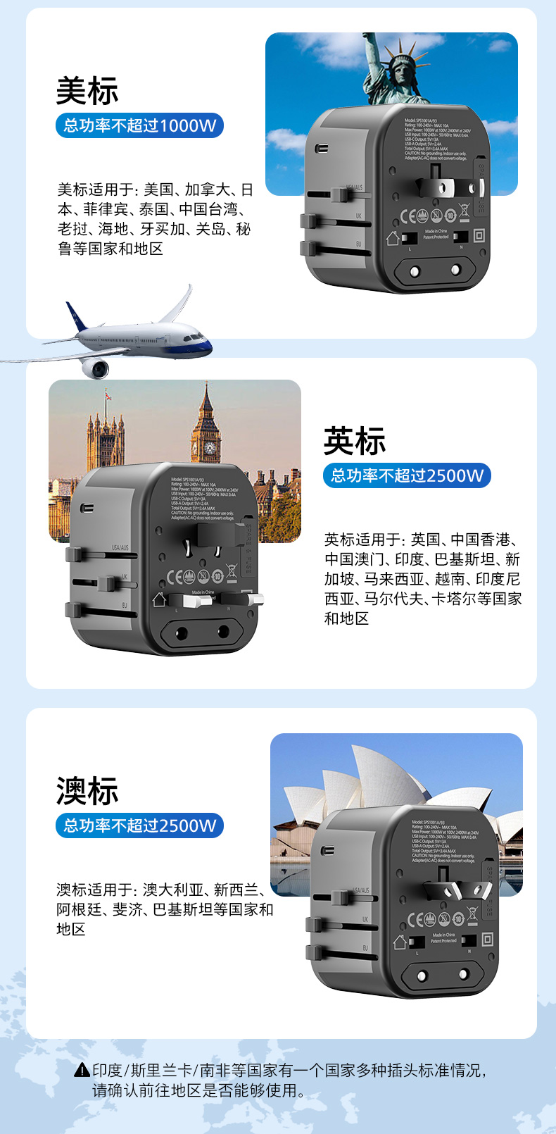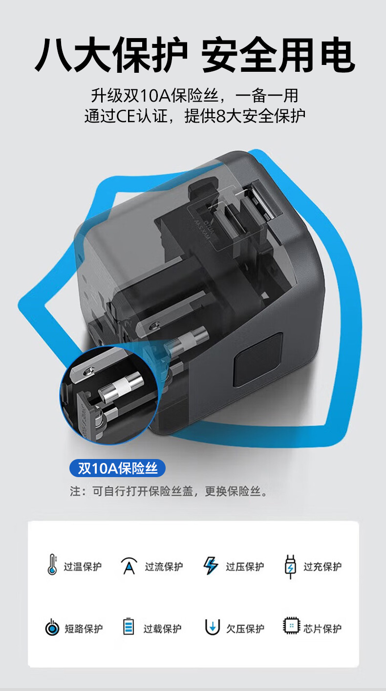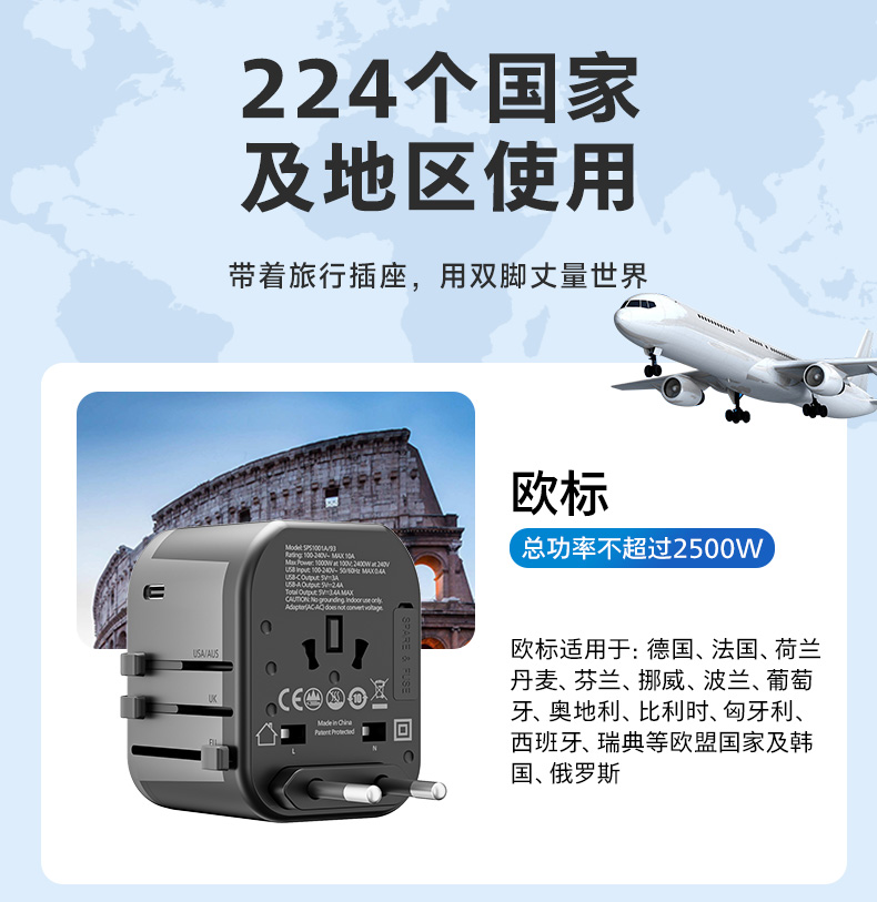飞利浦(PHILIPS) 插座欧标插座全球通用德标插排韩国排插巴厘岛泰国插头转换器转换插头全球通用转换插头 【全球通】升级15W多C口