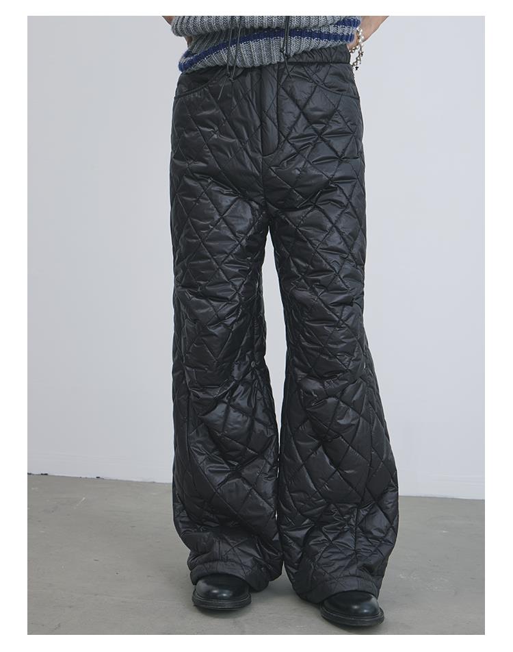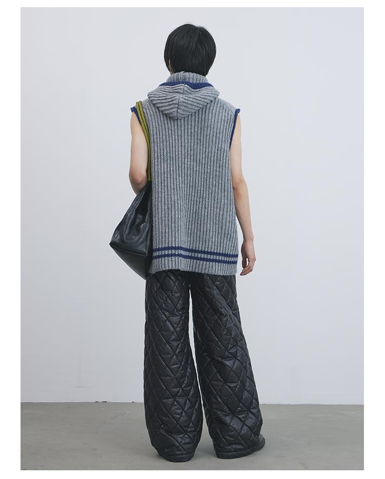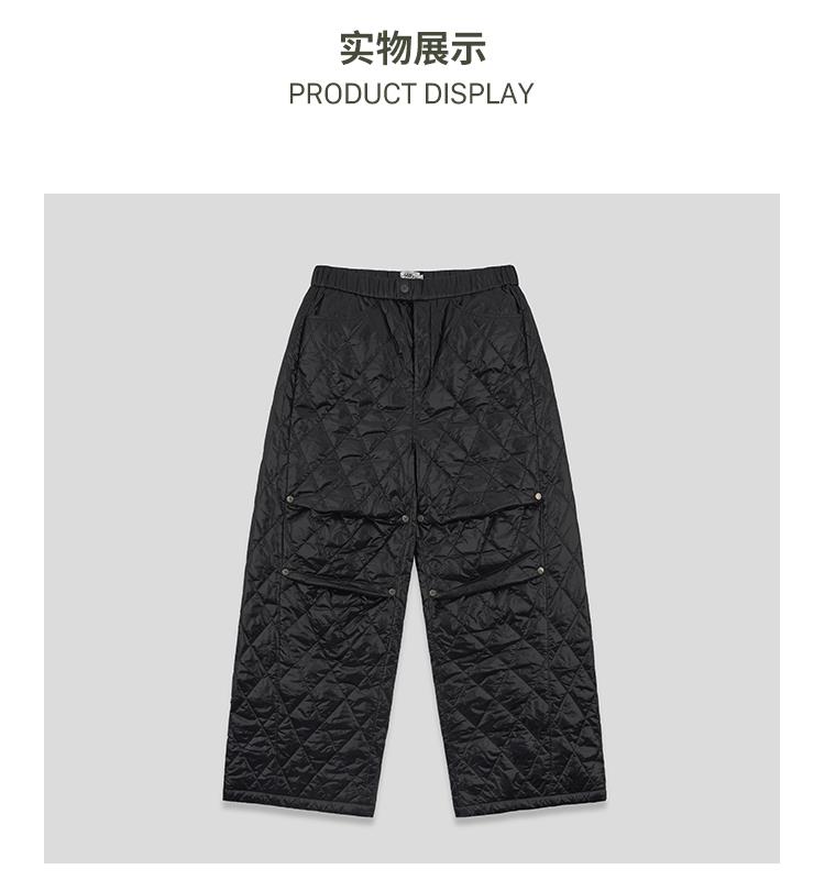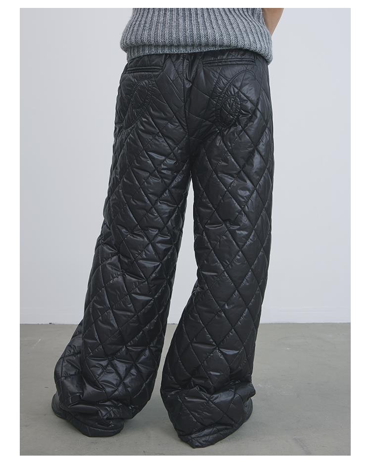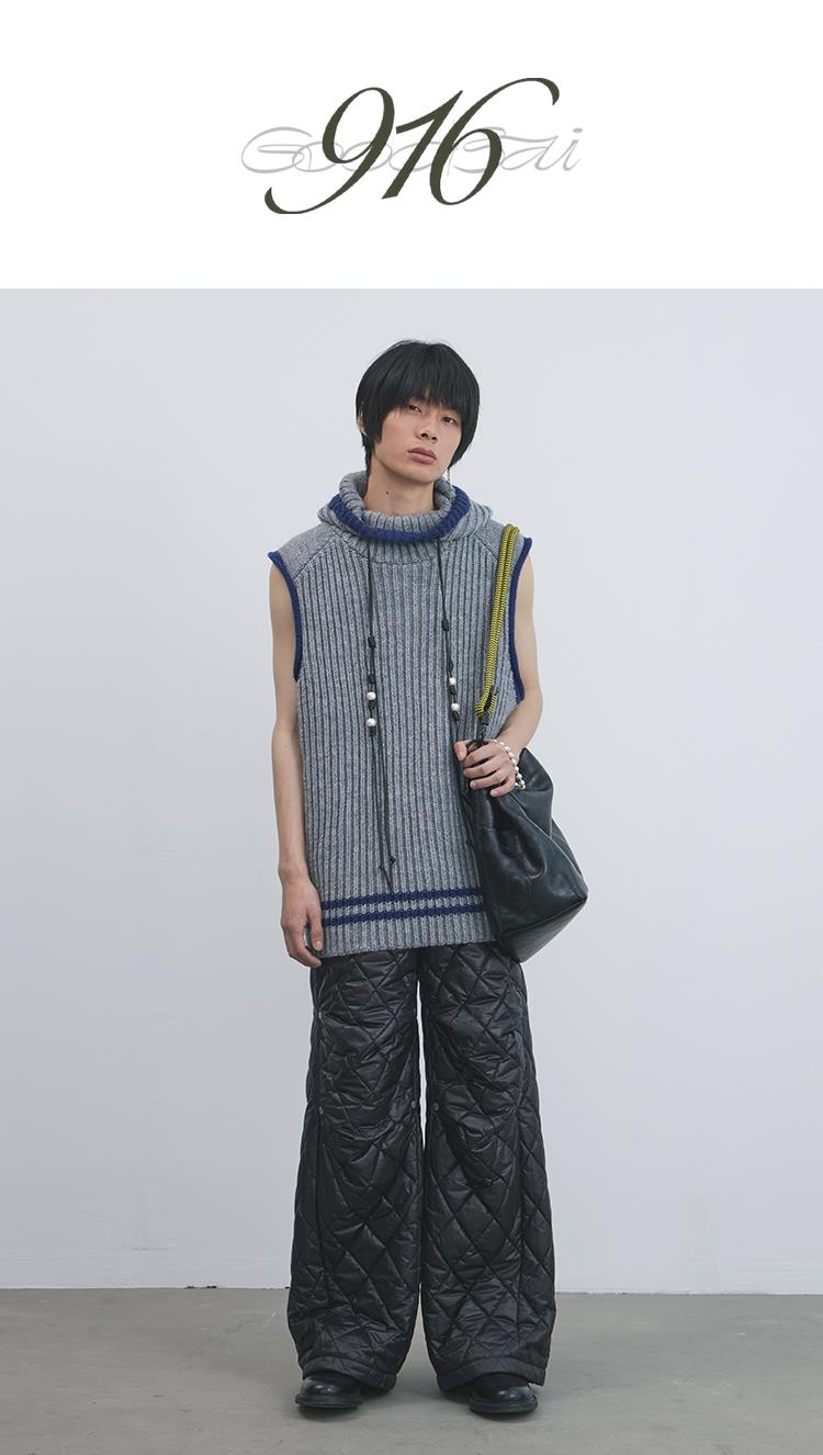 GOODBAI 916 膝盖打褶格纹填充阔腿收腰裤