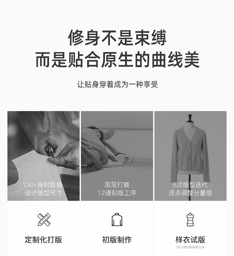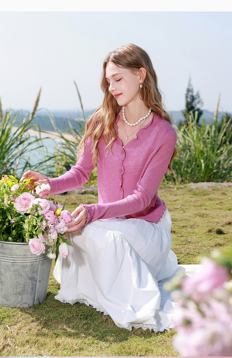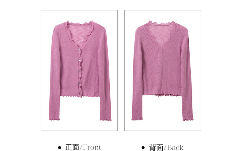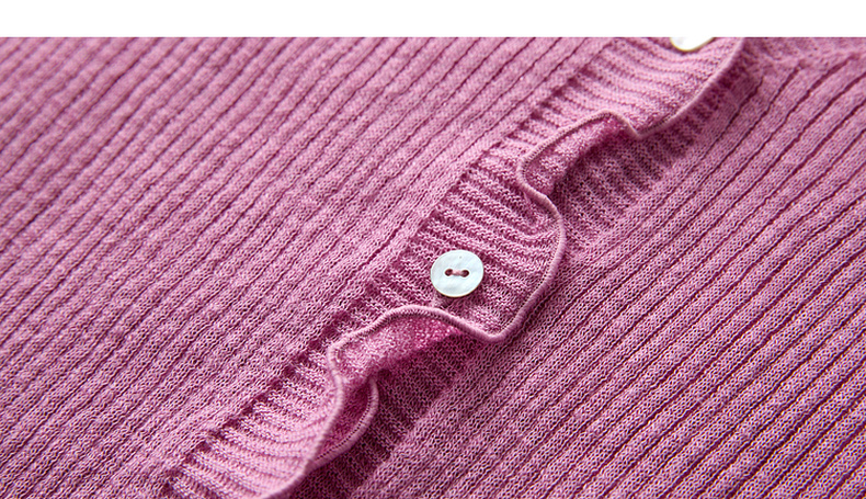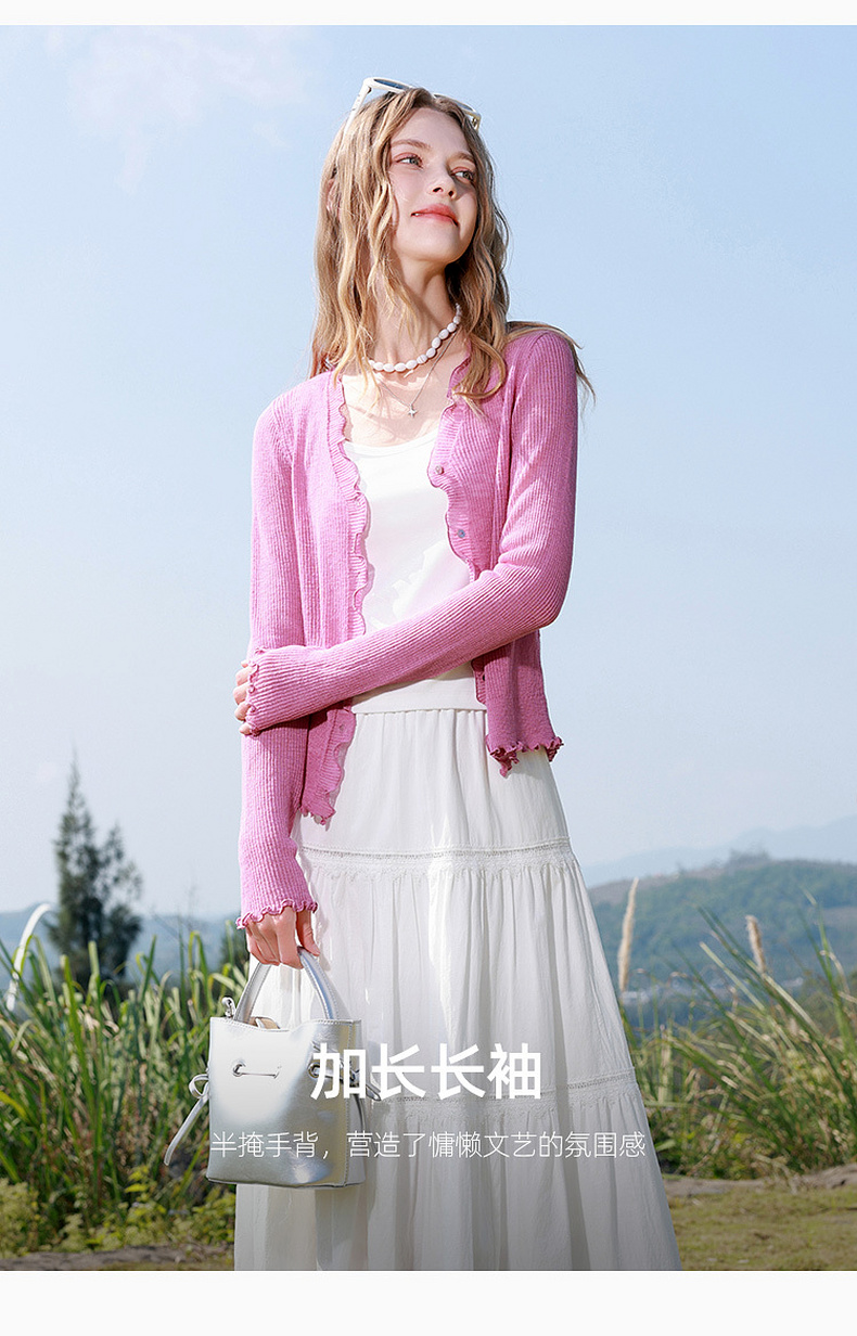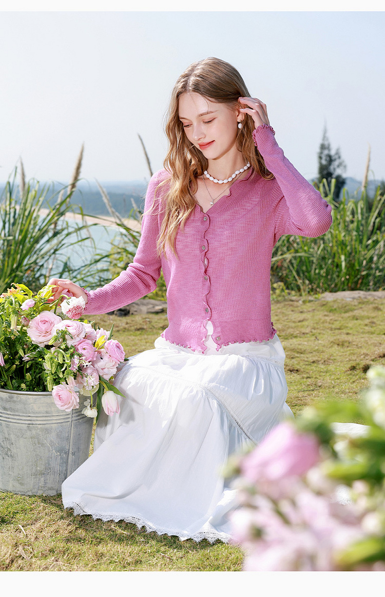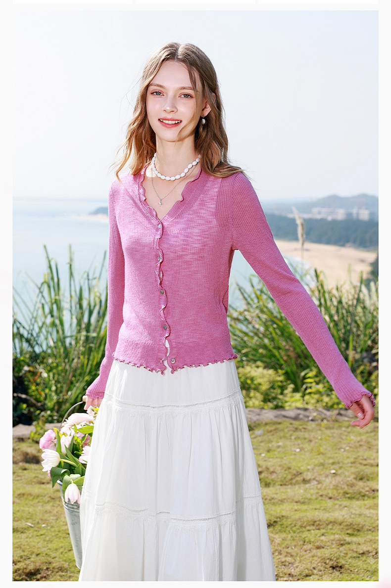 三彩2026春季新款木耳边针织衫V领毛衫短款开衫修身M