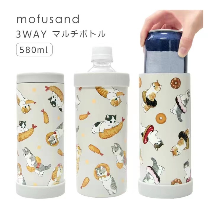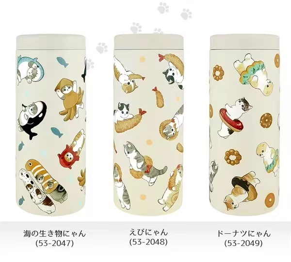 日本进口东亚金属53-2049mofusand彩色不锈钢杯 580ml甜甜圈猫