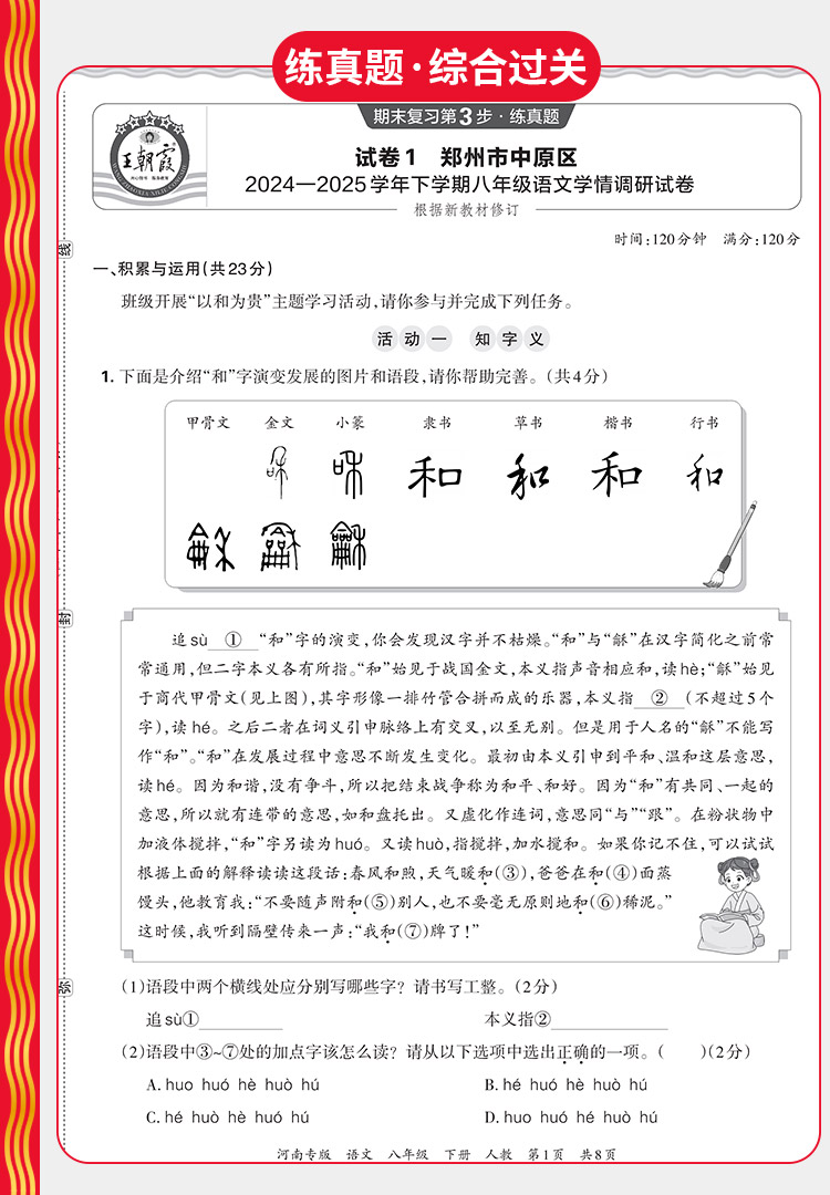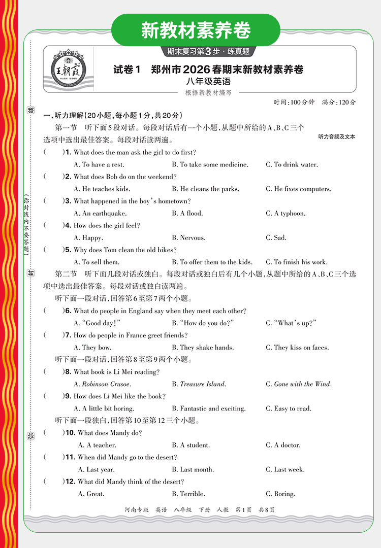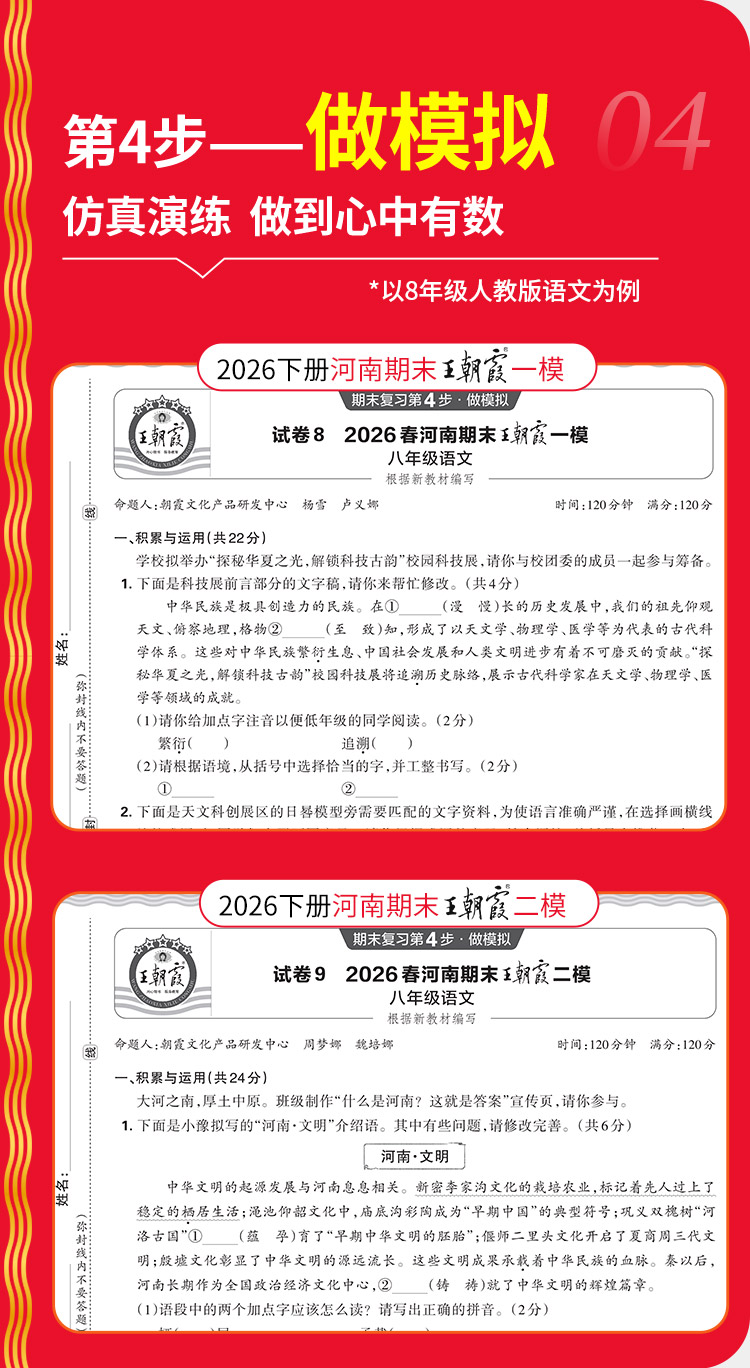 【河南专版】2026春下王朝霞中学各地期末精选河南专版7-8年级语数英物政史地