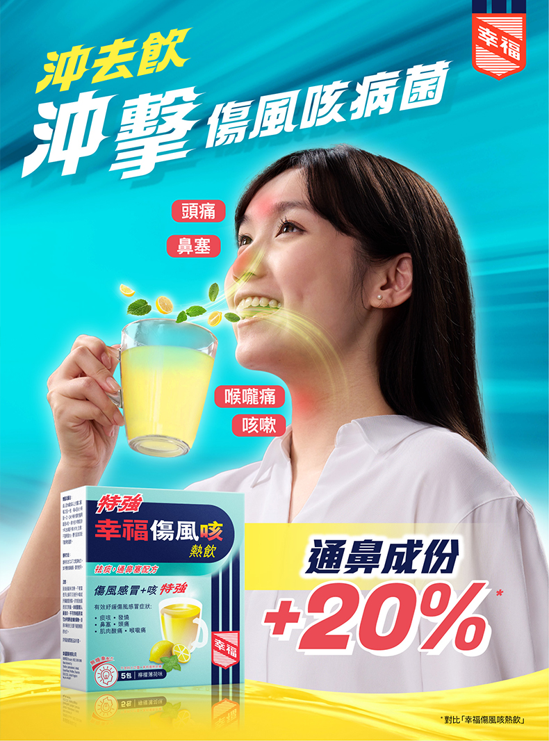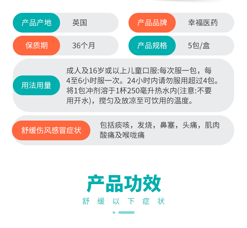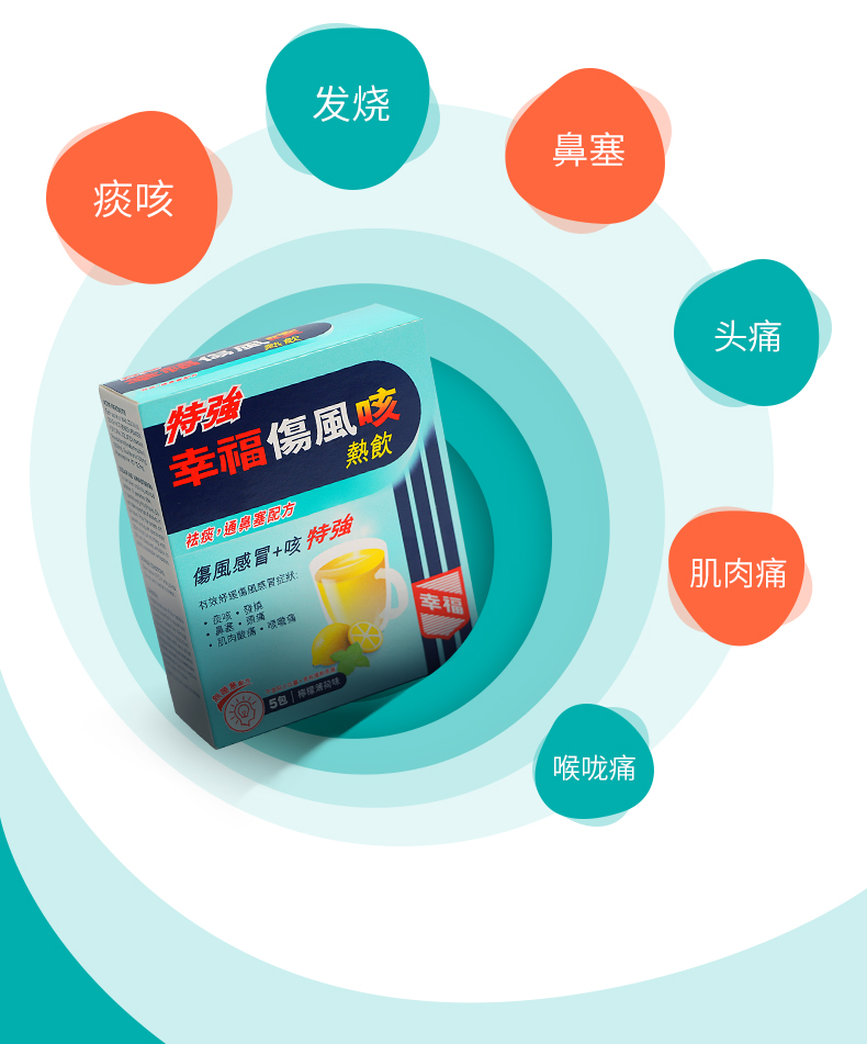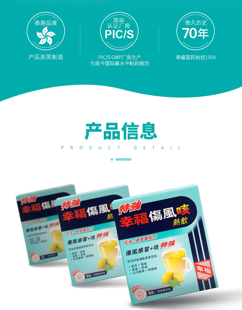 【香港直邮】痰多发烧鼻塞喉咙痛 正品幸福特强伤风咳热饮(5包装)