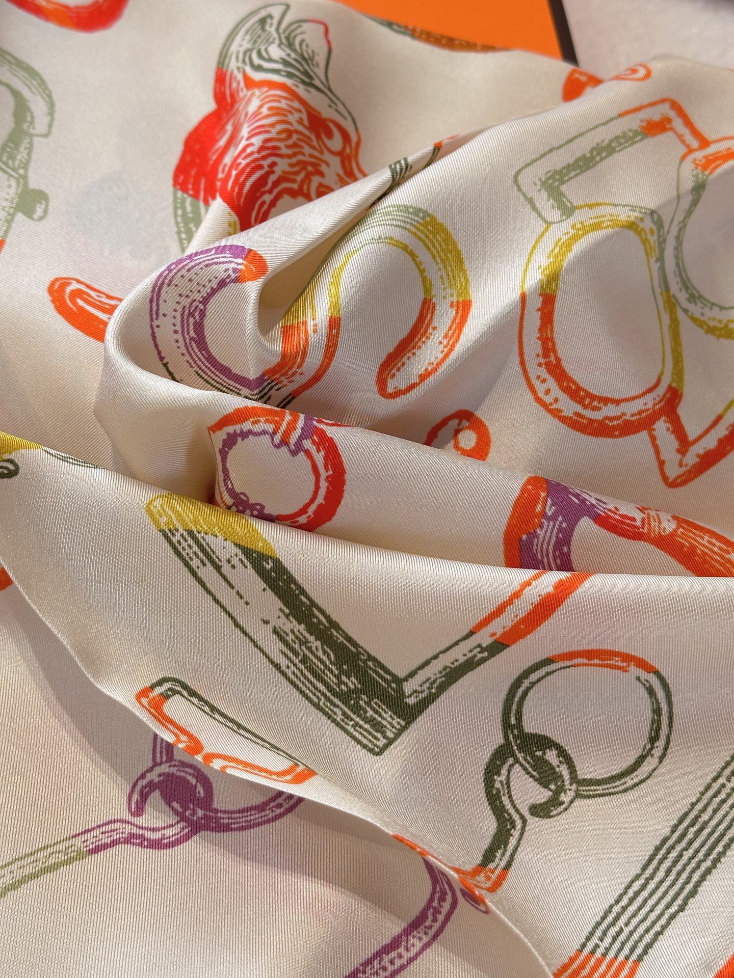 尺寸:88.5 x 88.5厘米 | 由于这款方巾采用手工卷边,标示的尺寸或会略有不同。 手工卷边斜纹真丝方巾(100%桑蚕丝)。