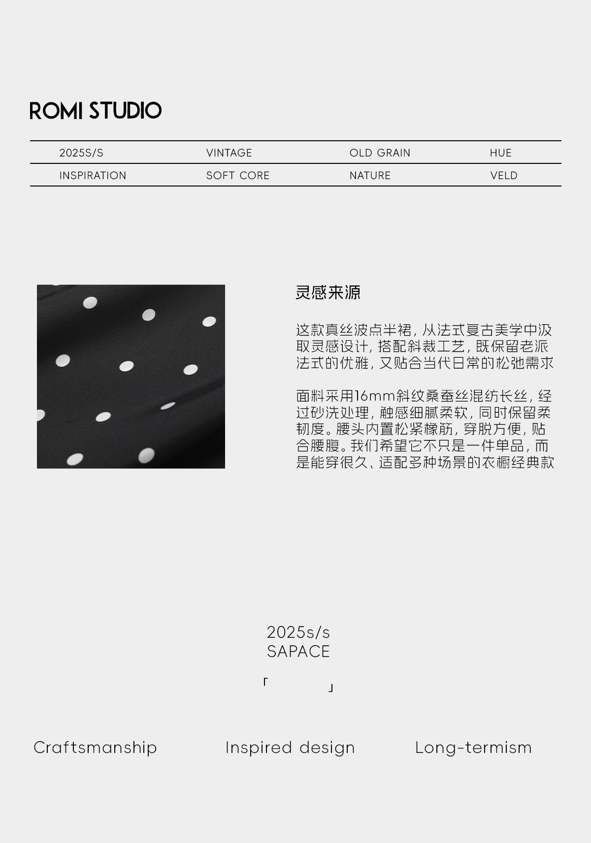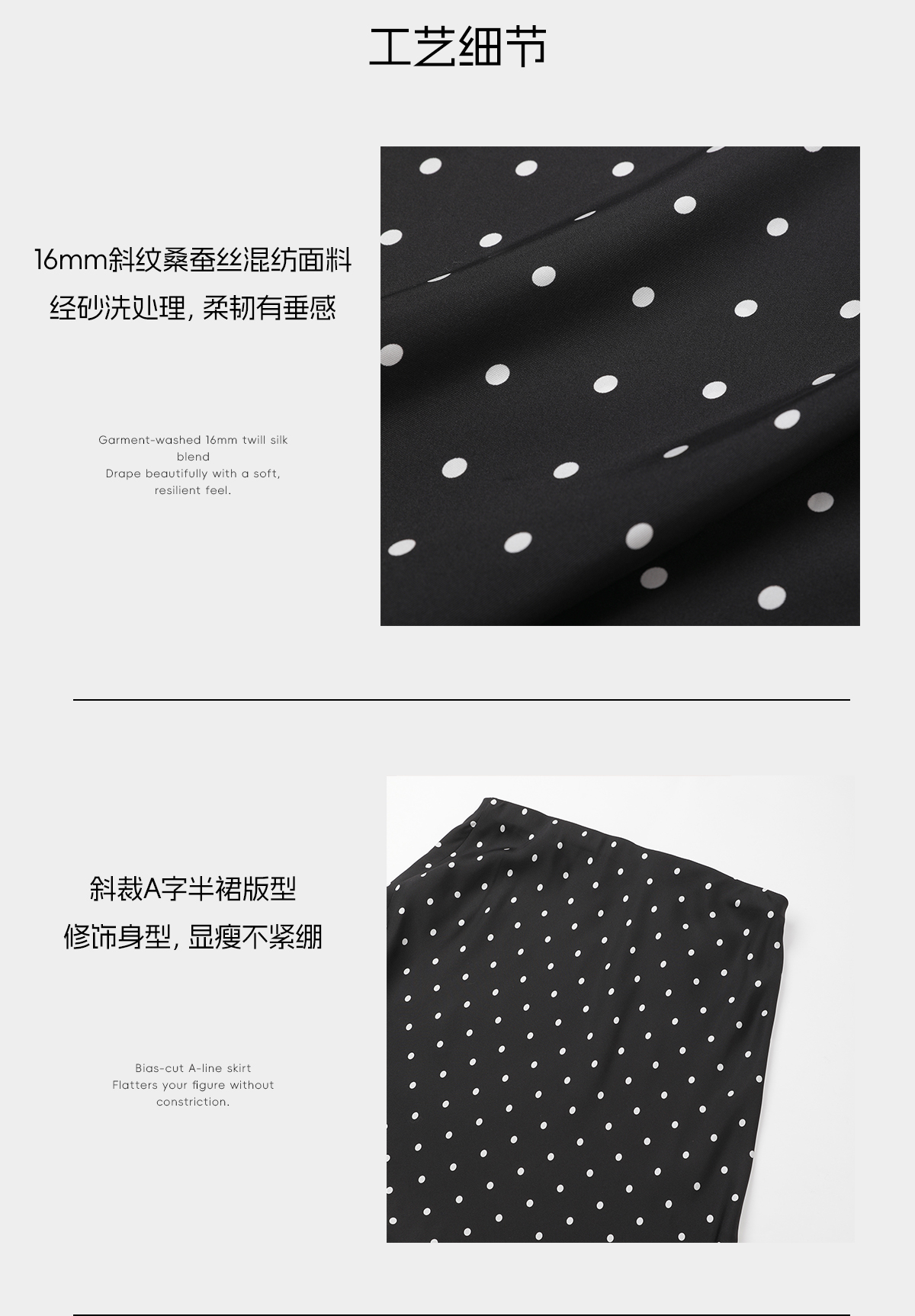 ROMI STUDIO“波点半裙”16mm桑蚕丝光泽垂感法式半身裙RWDSXY1487
