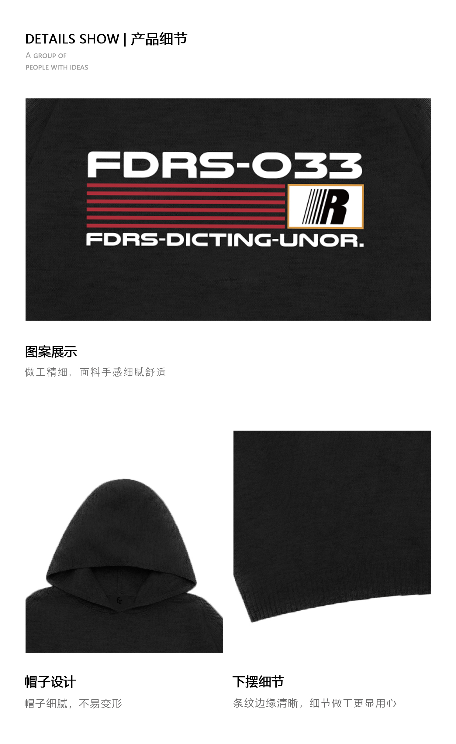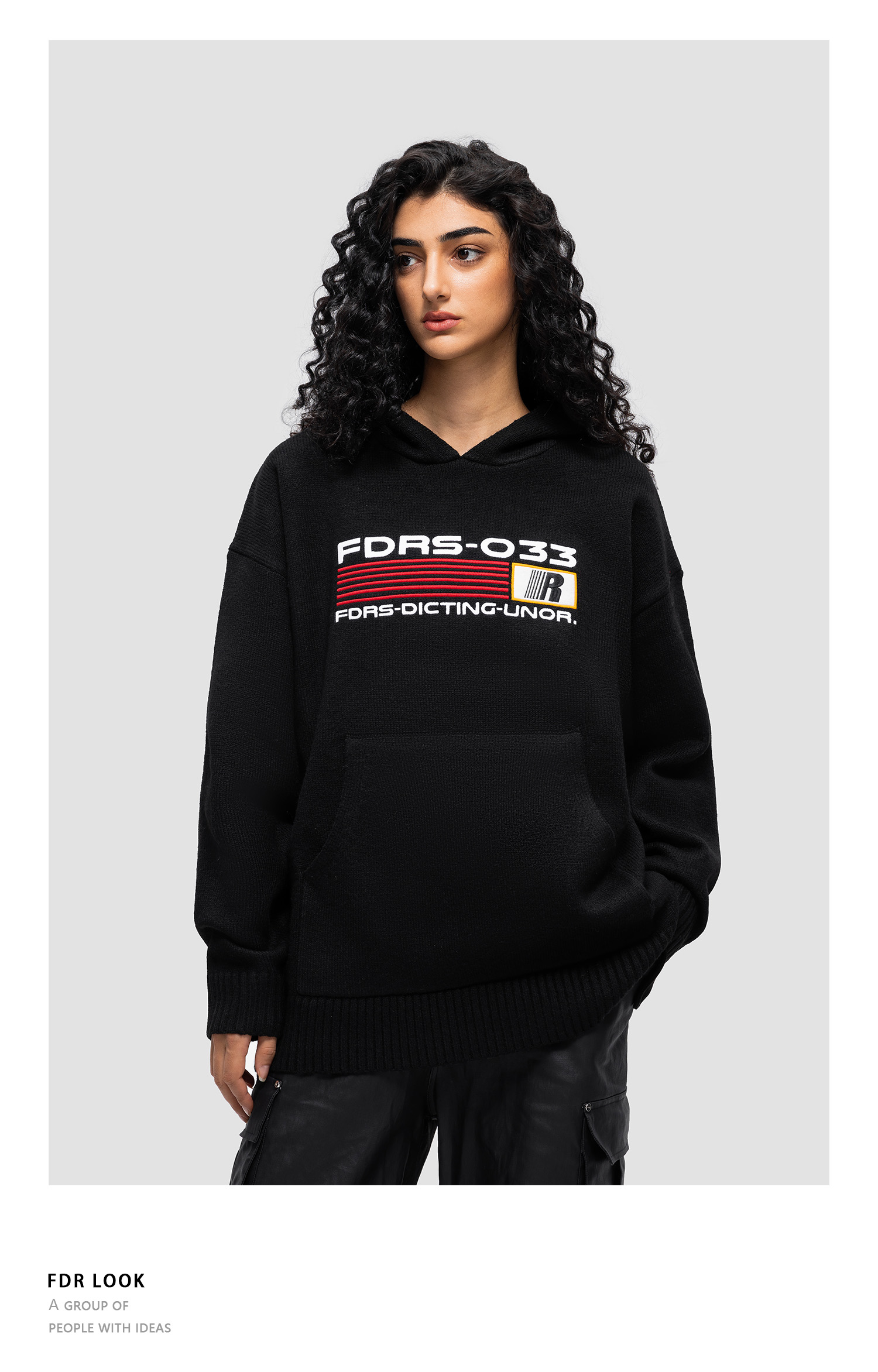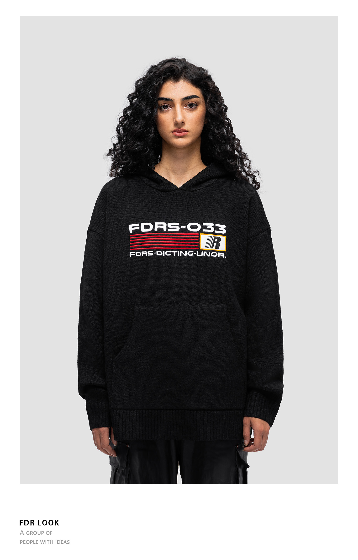 FDR 国潮美式发泡印花连帽毛衣男女秋冬季潮牌情侣针织衫毛衣上衣