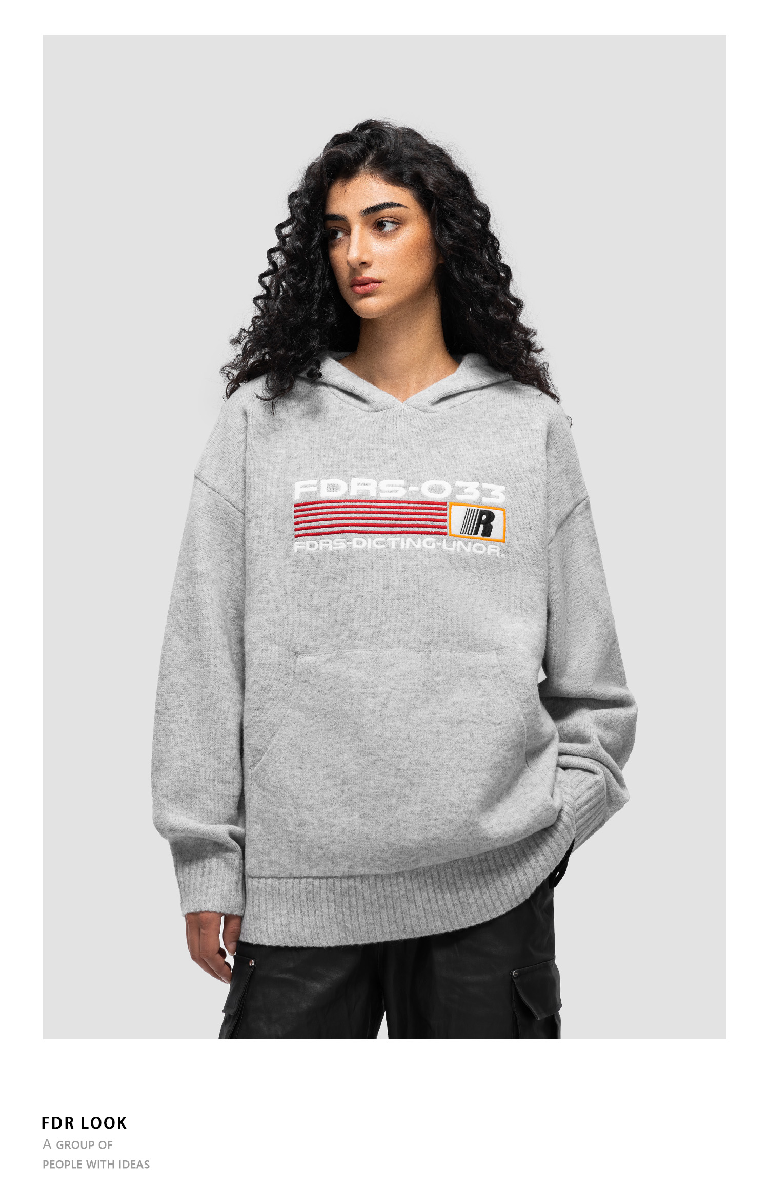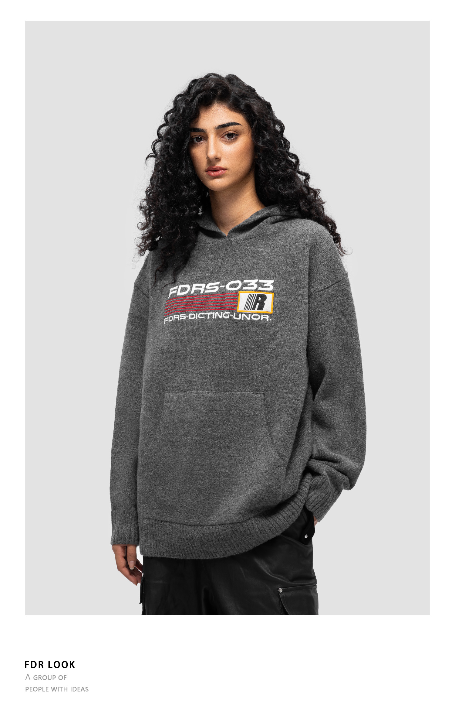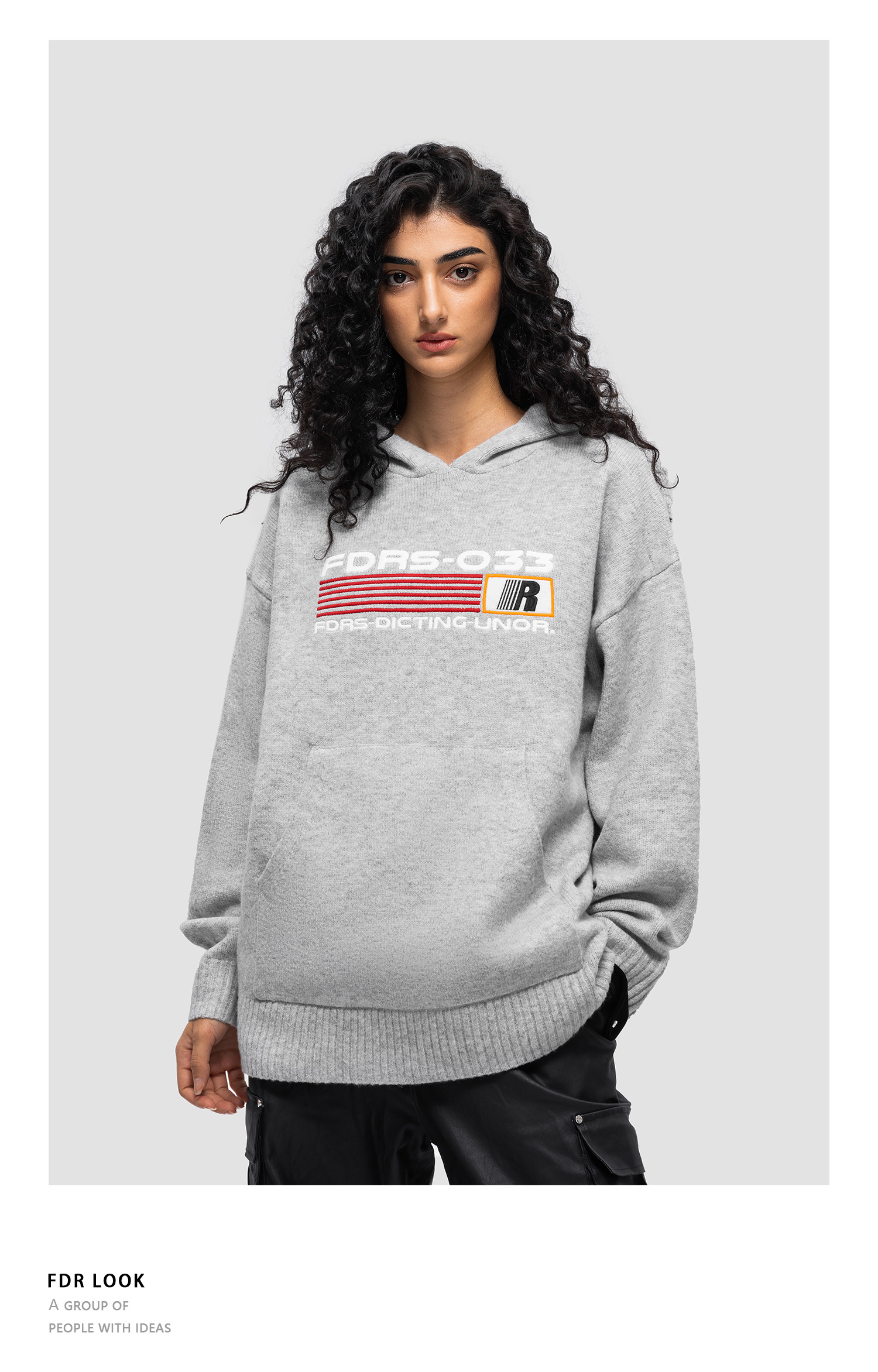 FDR 国潮美式发泡印花连帽毛衣男女秋冬季潮牌情侣针织衫毛衣上衣