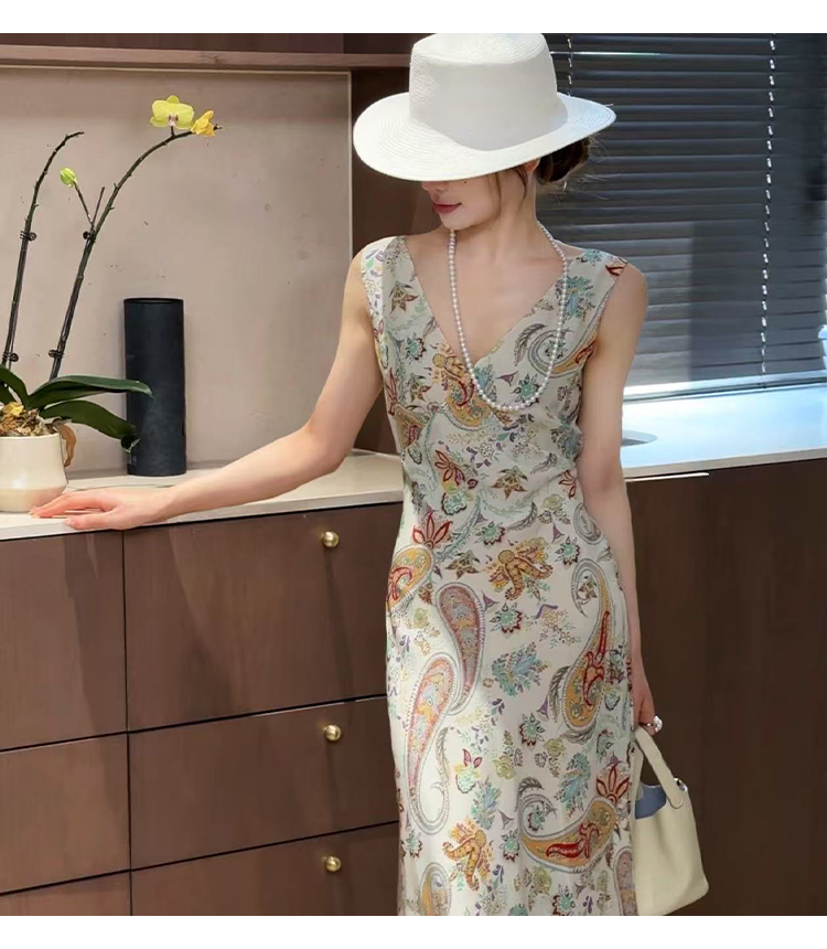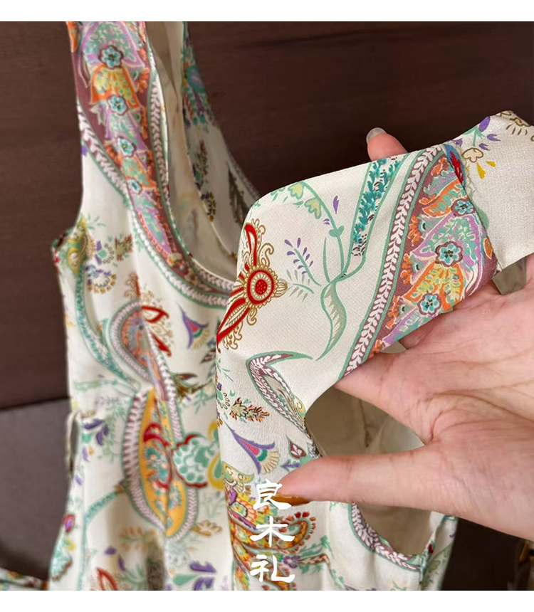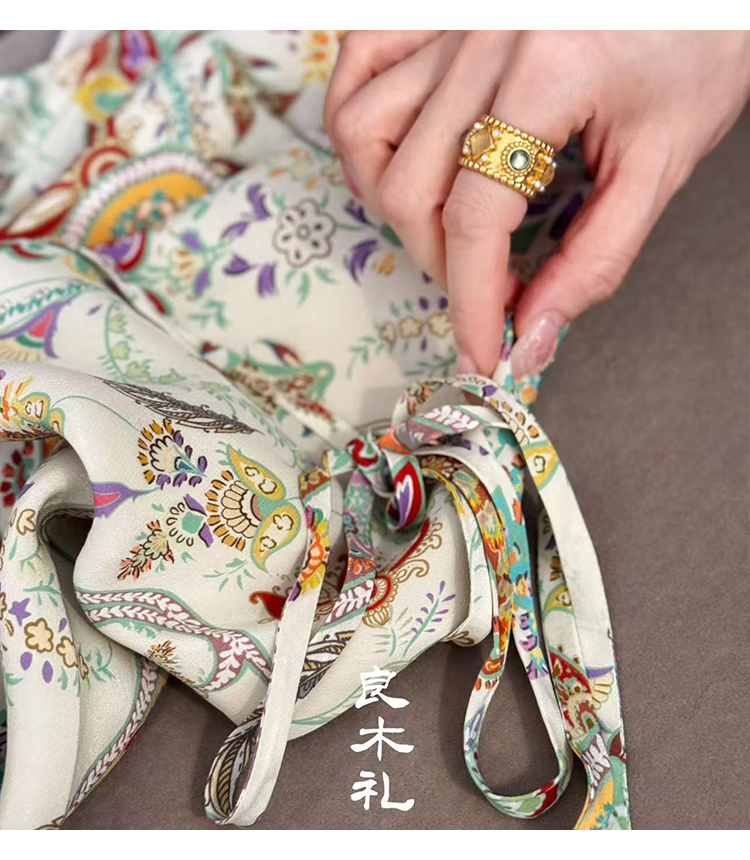 【现货】良木礼米底腰果花真丝连衣裙(2131)