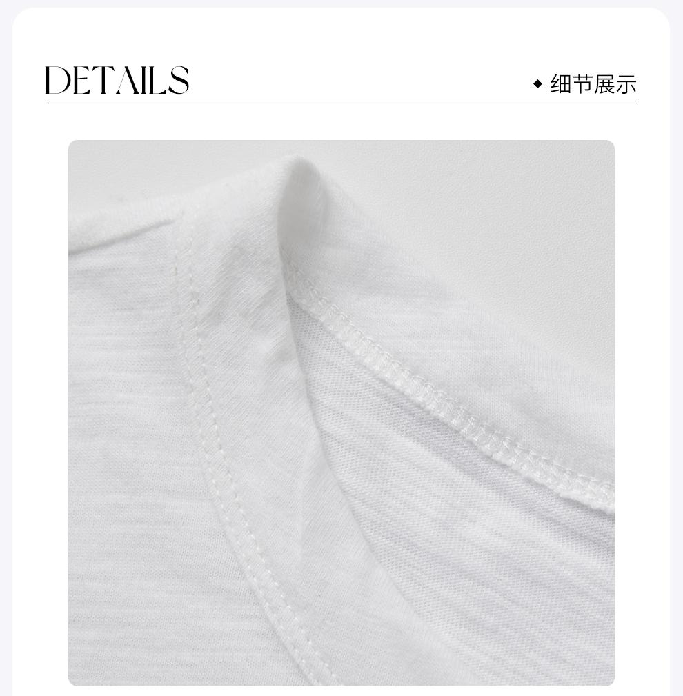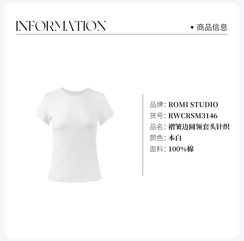 ROMI STUDIO竹节肌理自然褶皱 白色全棉圆领短袖T恤 RWCRSM3146