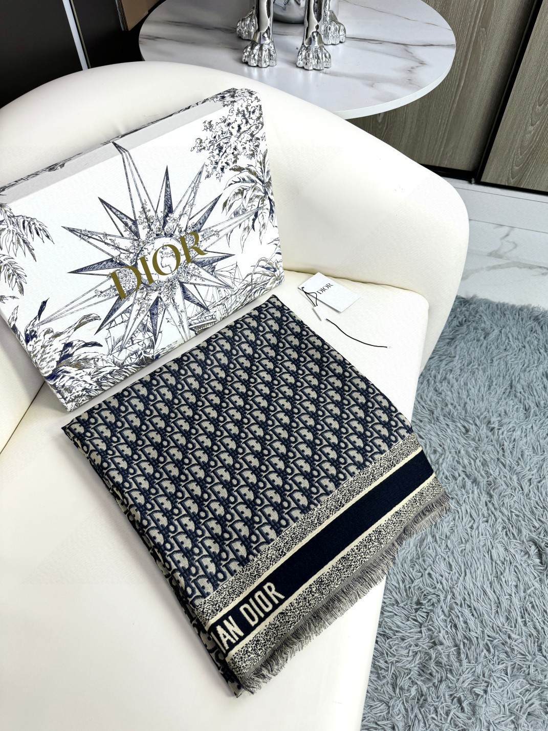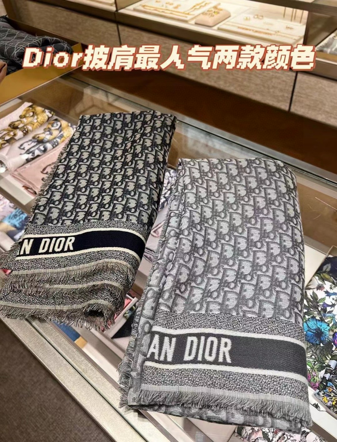 𝐃𝐈**大披肩 围脖两用 标志性老花元素➕短流苏边 含42%的羊毛成分以及42%的桑蚕丝手感柔软顺滑 140×140cm 大尺寸
