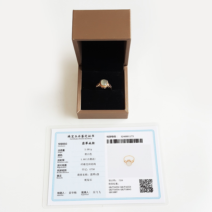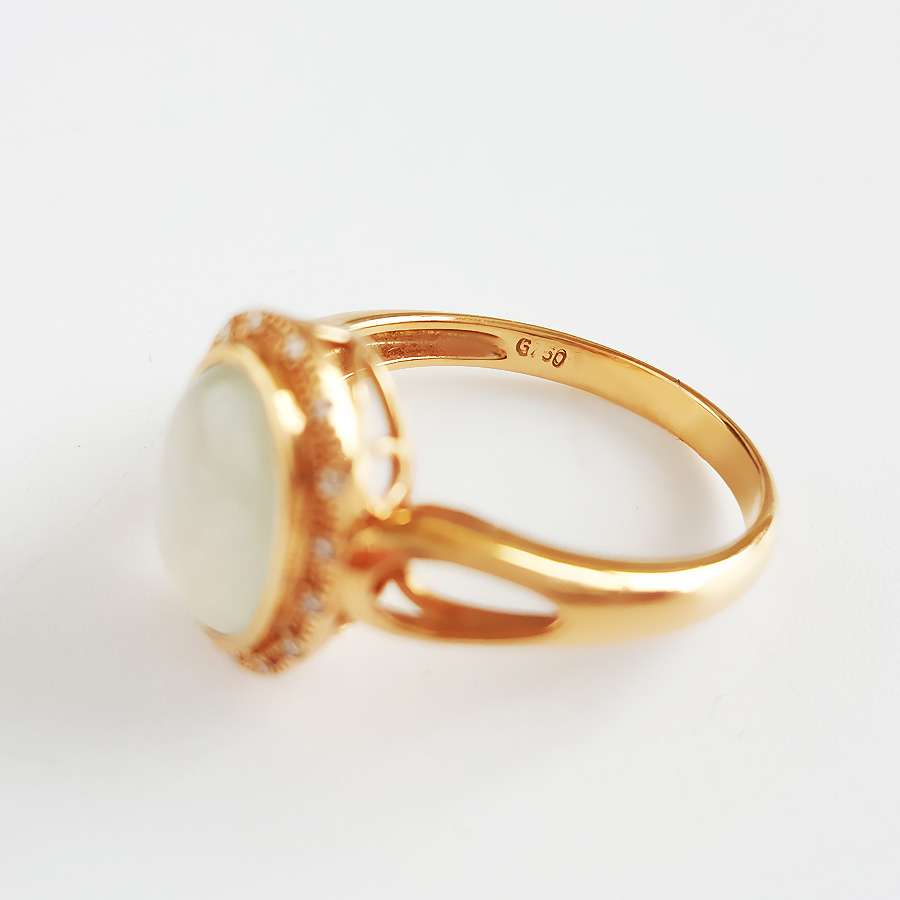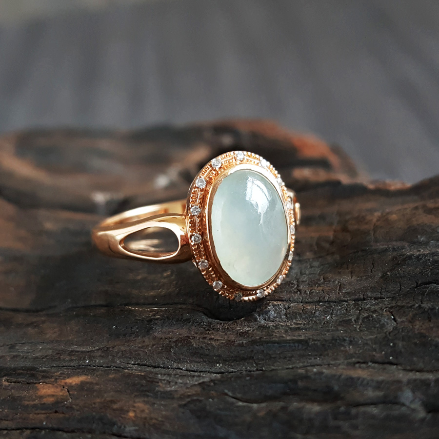 名称 | AU750黄金镶钻镶天然冰种蛋面翡翠(圆满、吉祥)戒指 |