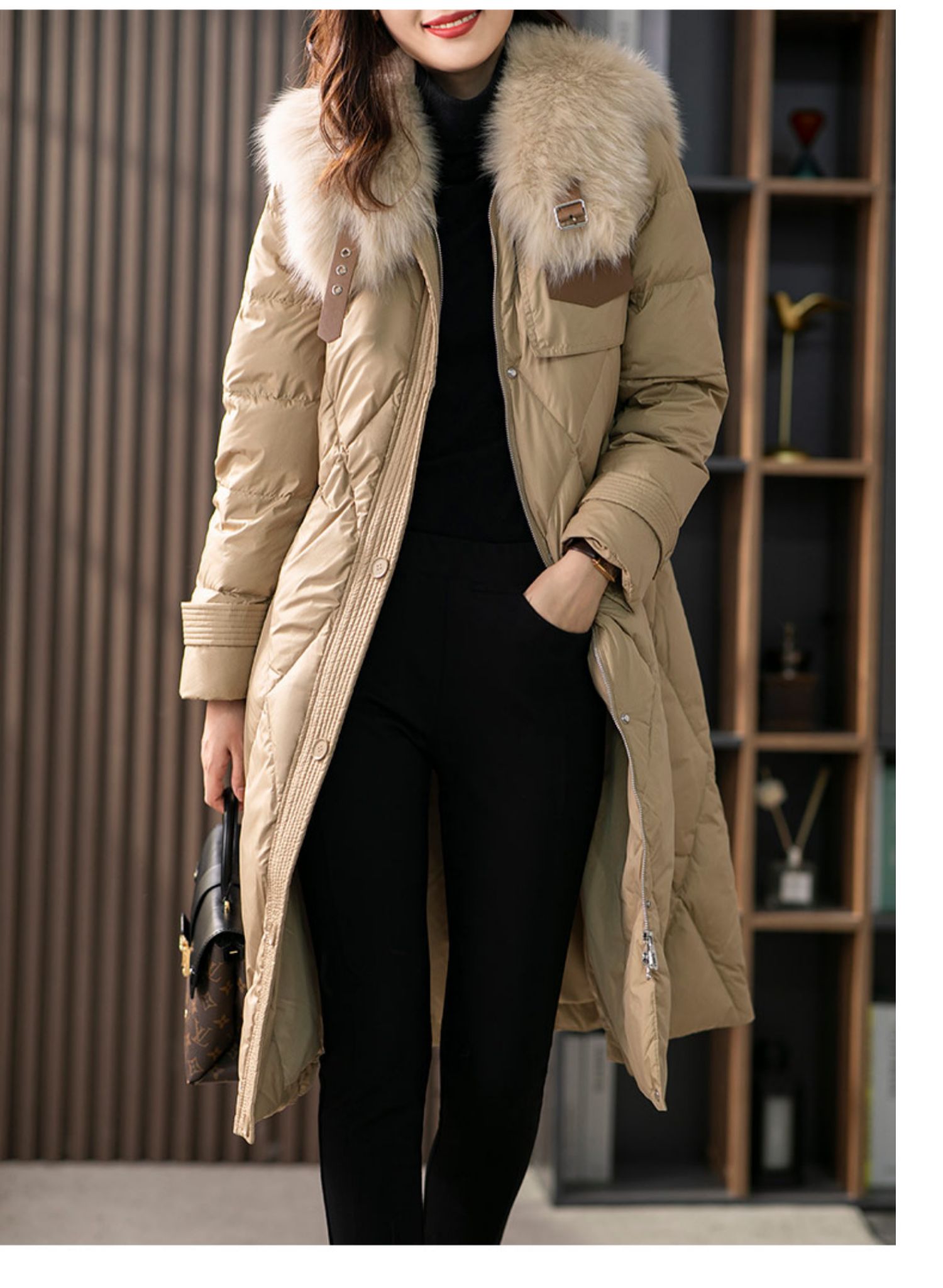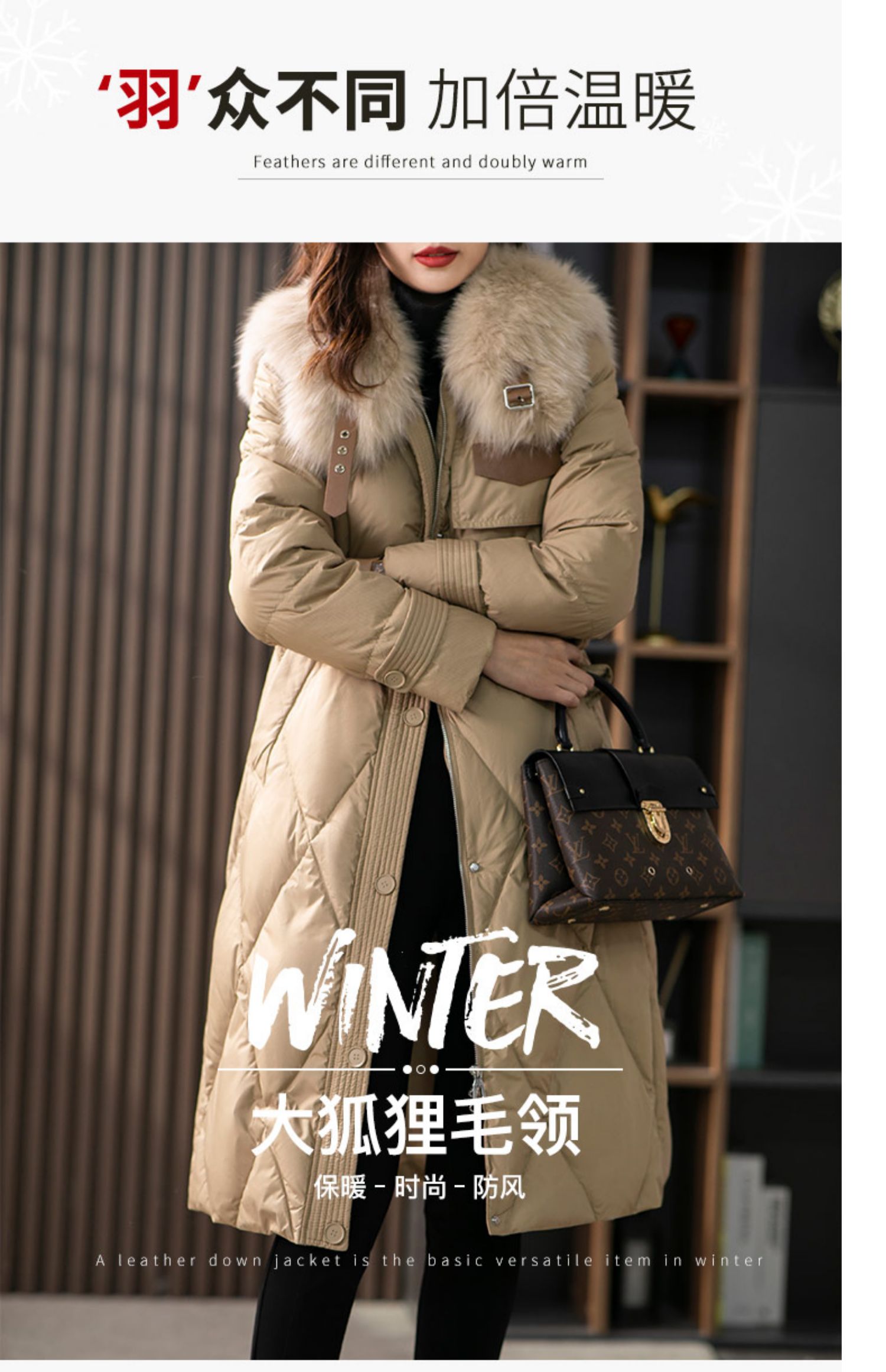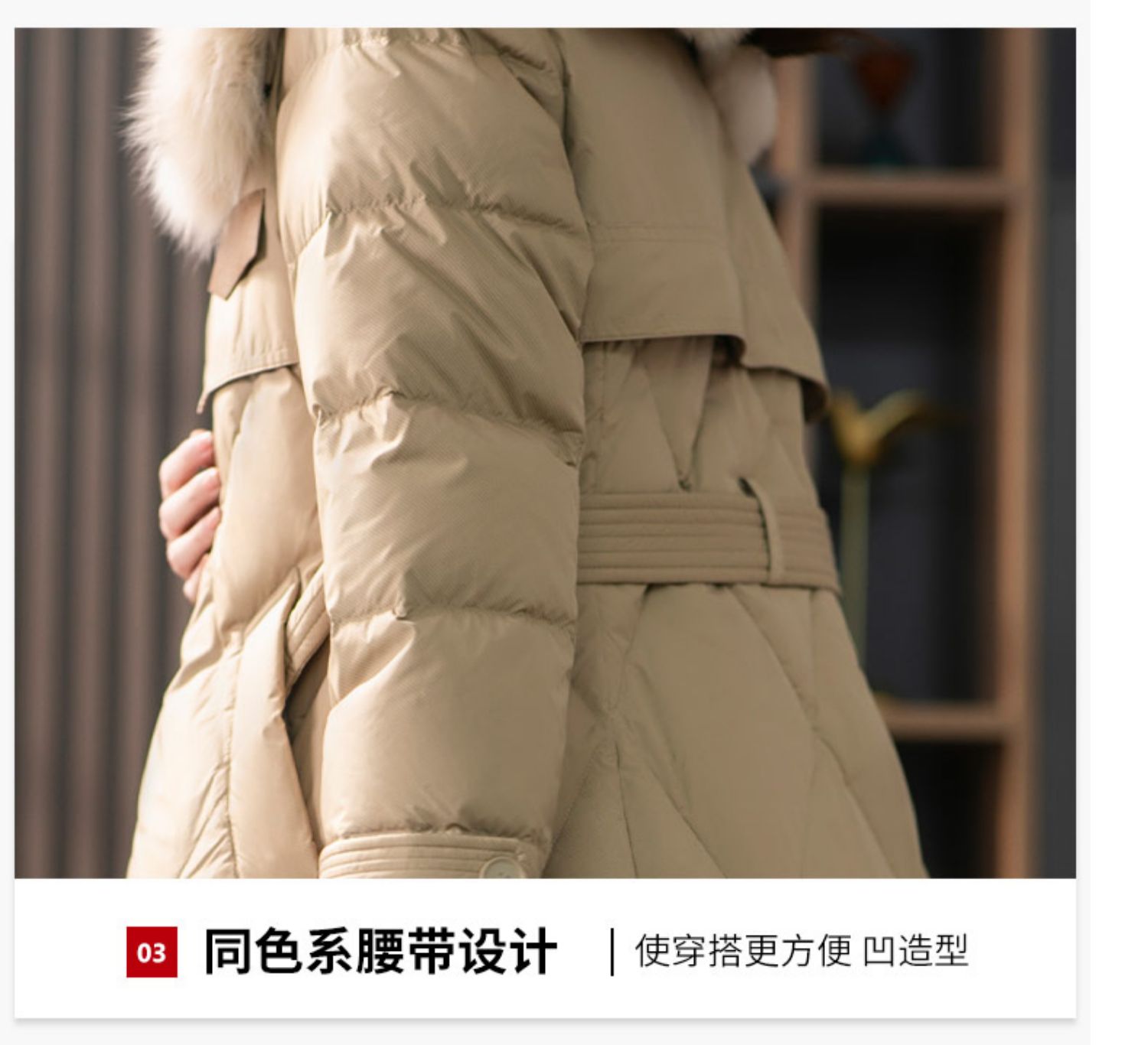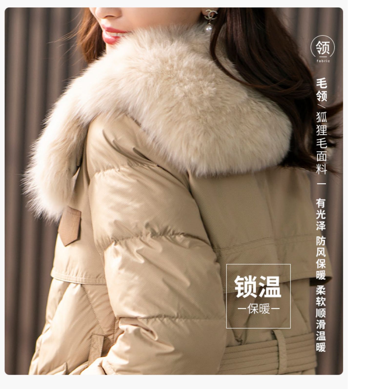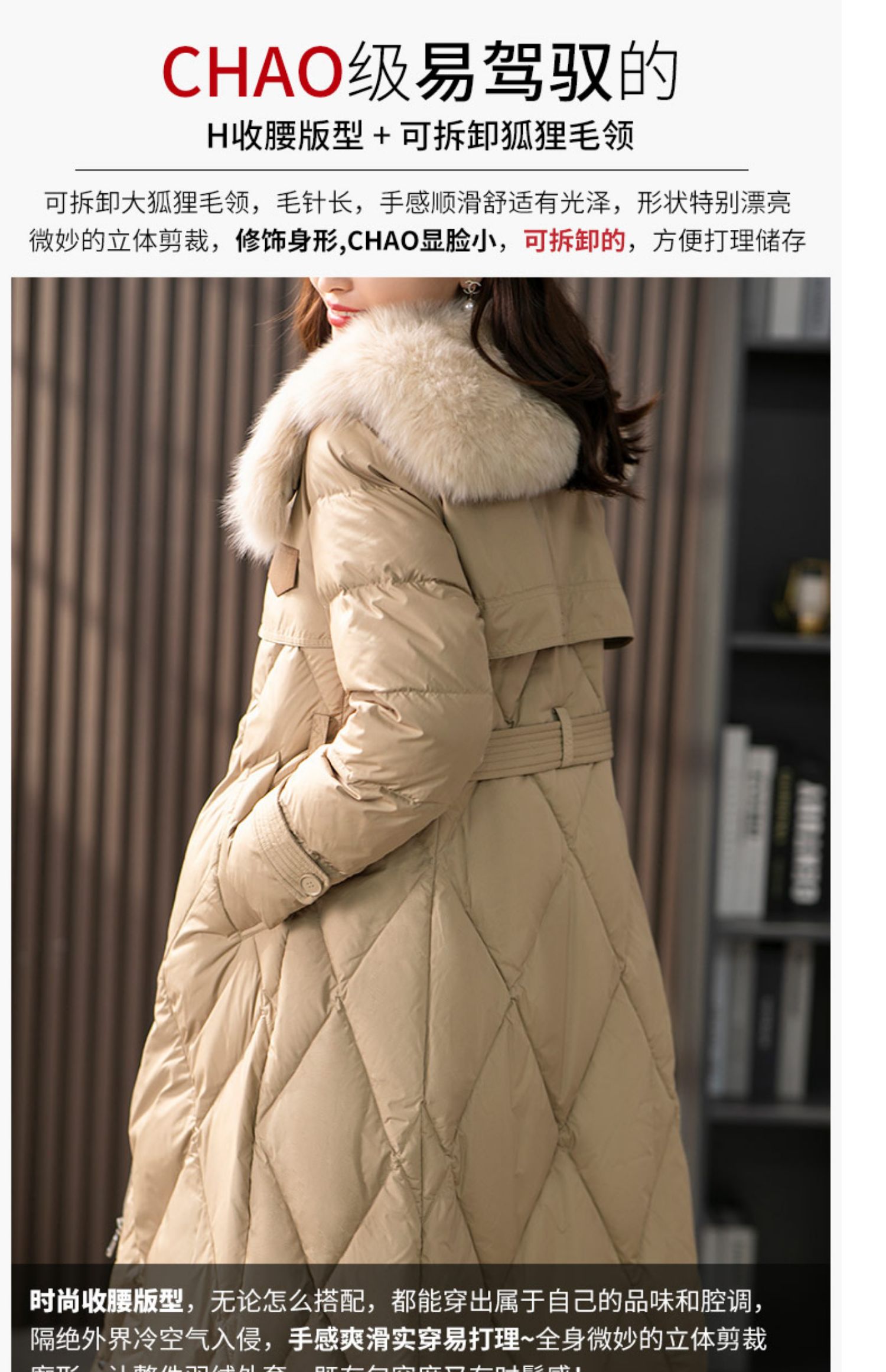 原形狐狸大毛领鹅绒羽绒服女过膝收腰2023新款韩版中长款冬季外套