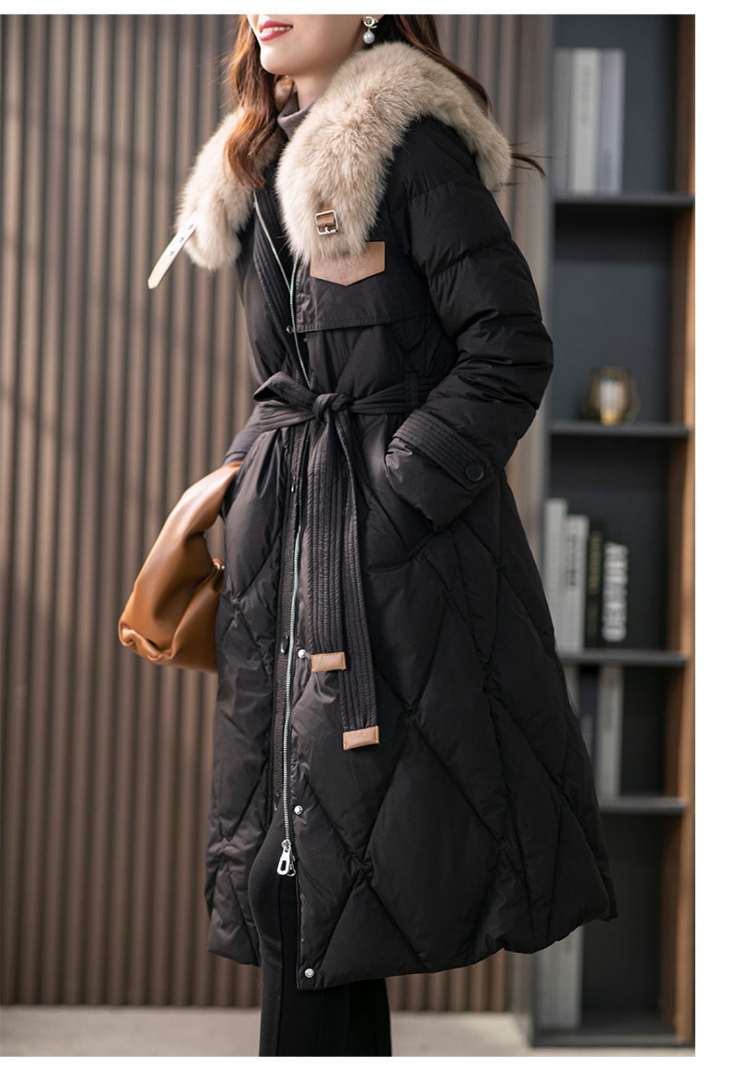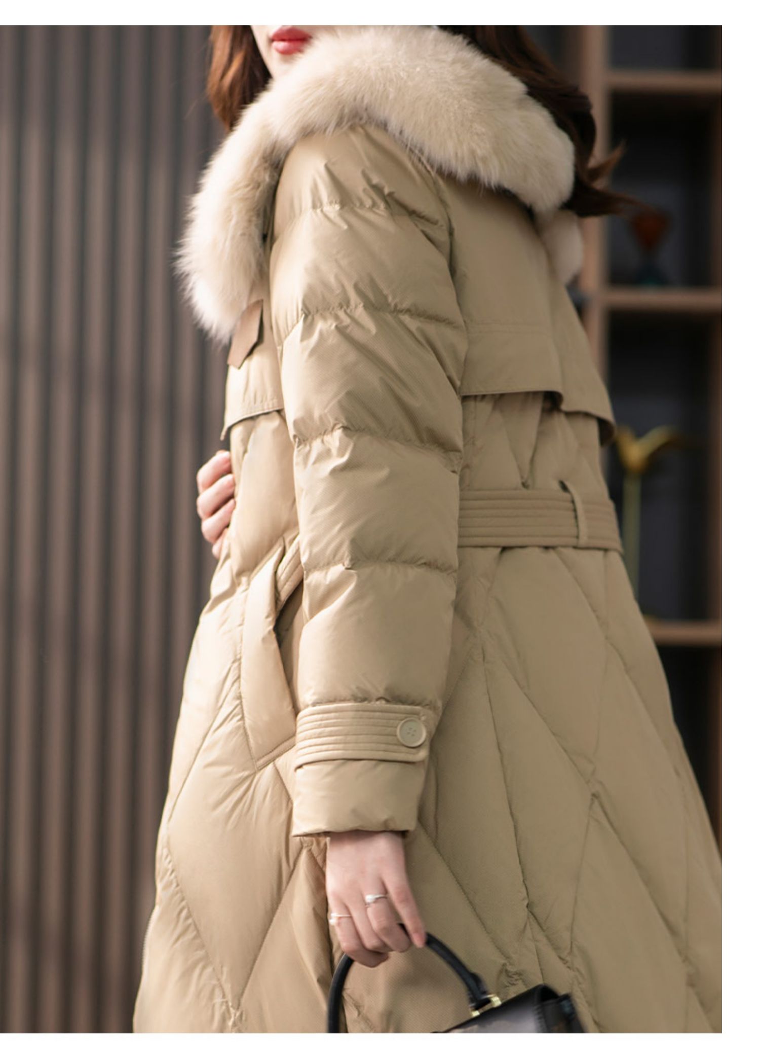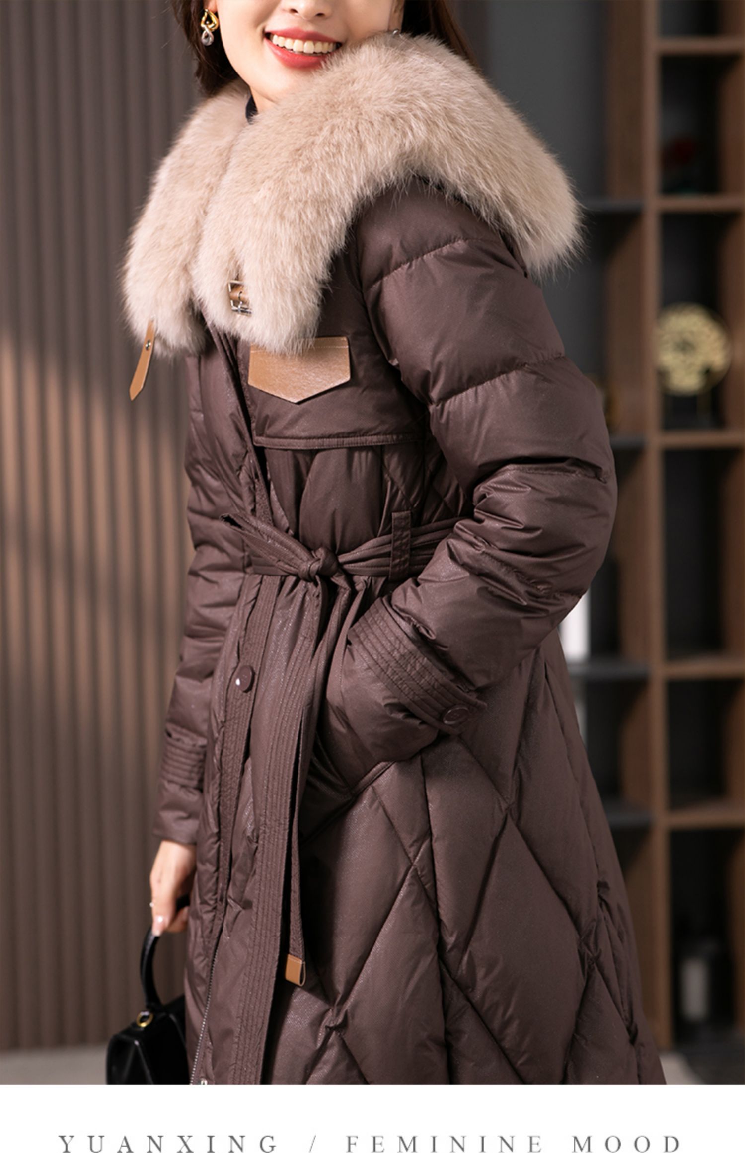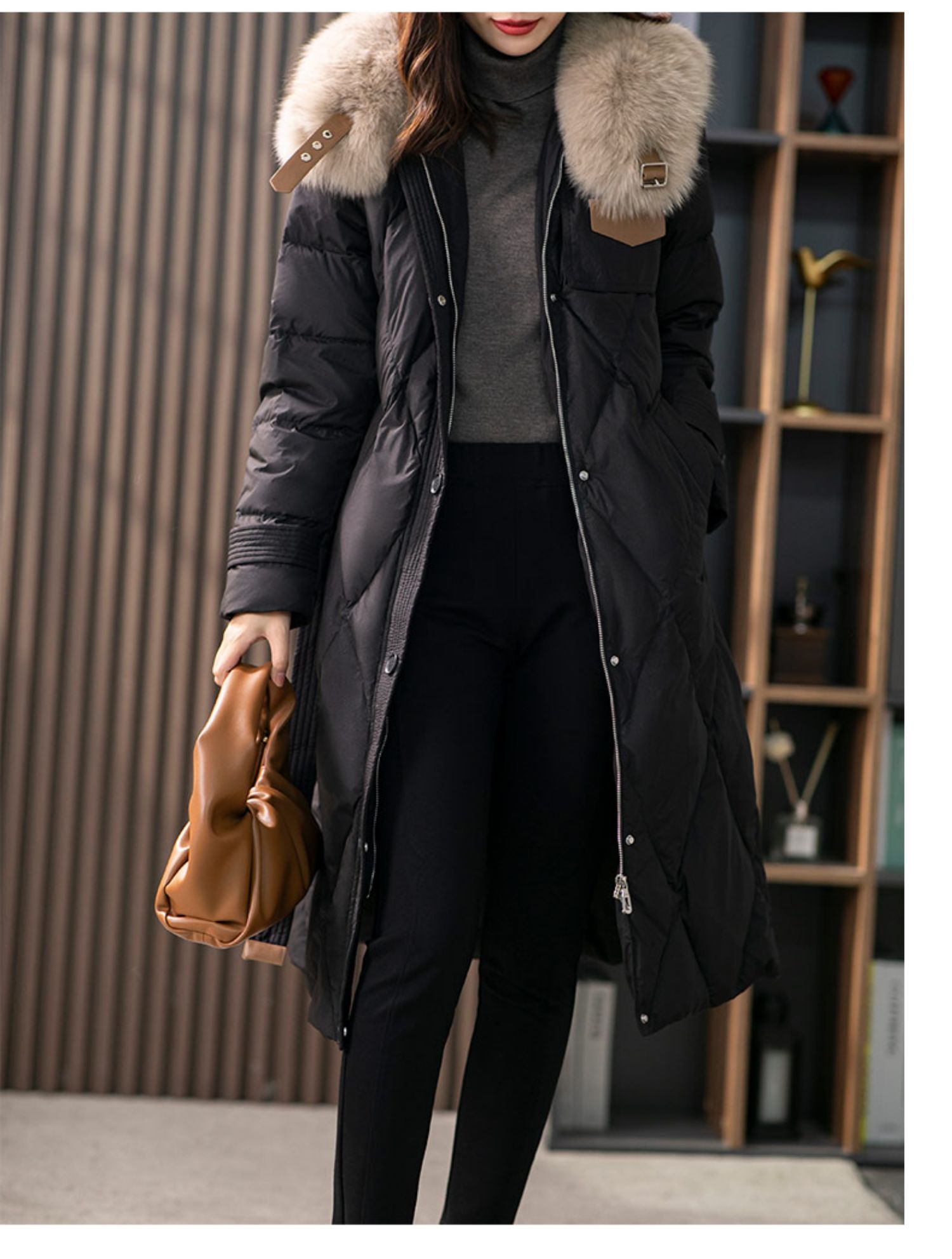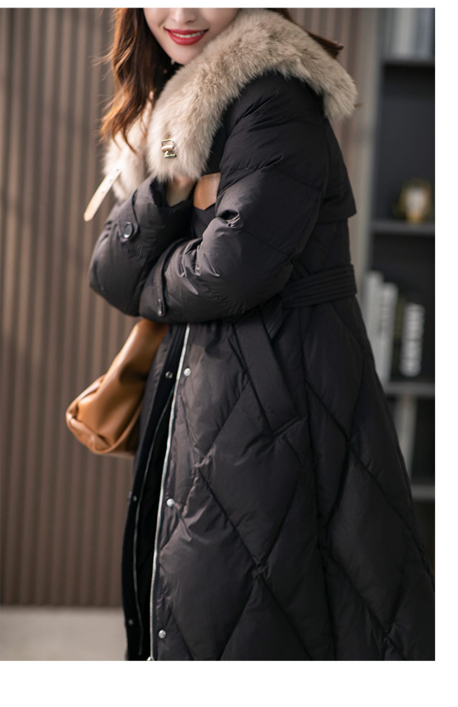 原形狐狸大毛领鹅绒羽绒服女过膝收腰2023新款韩版中长款冬季外套