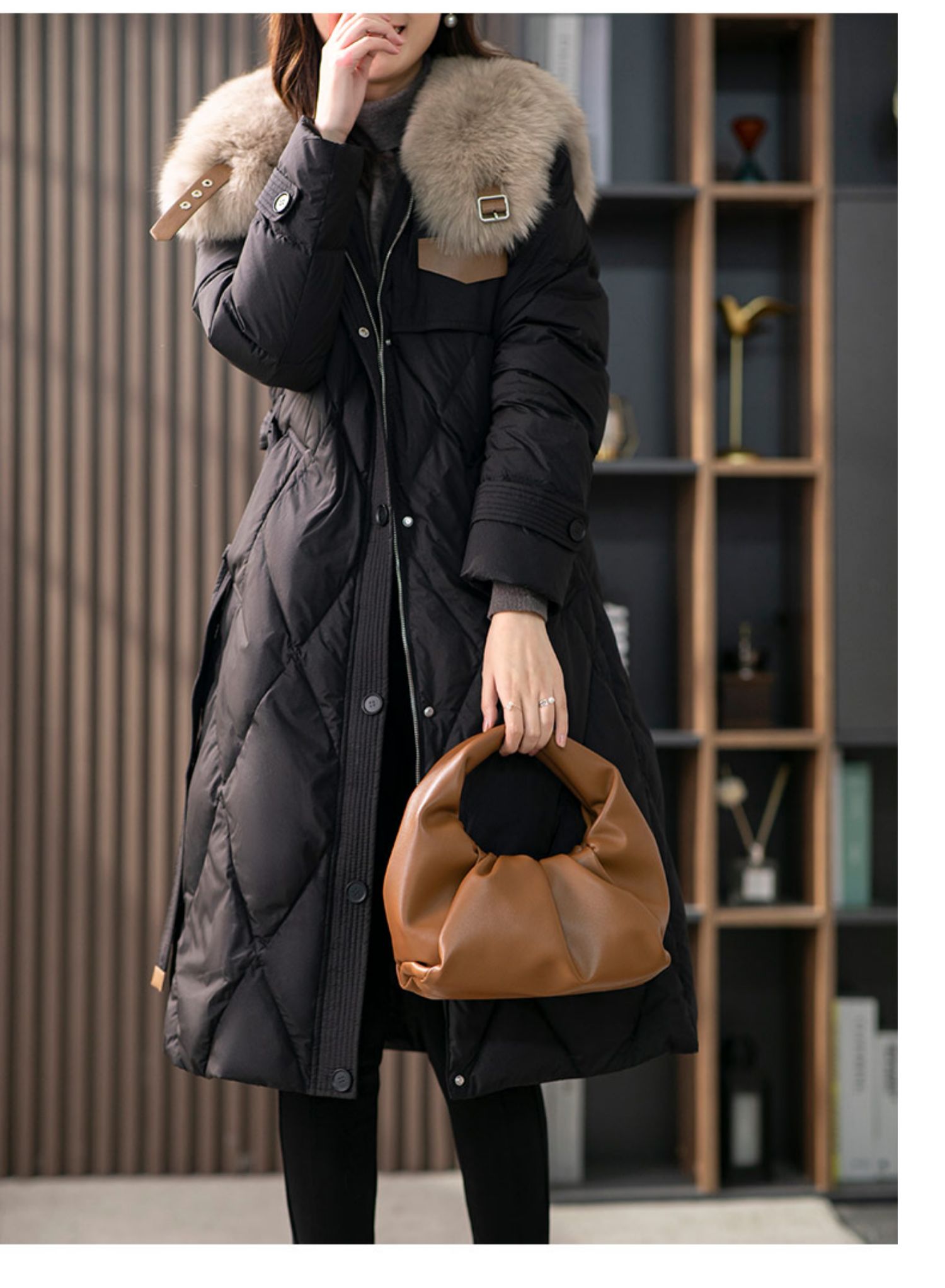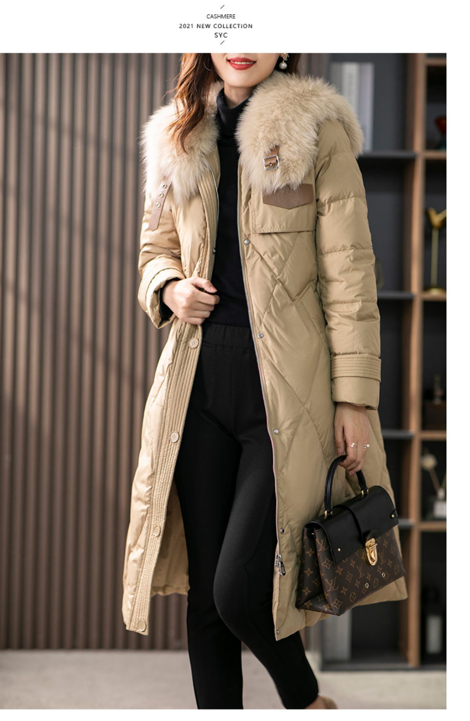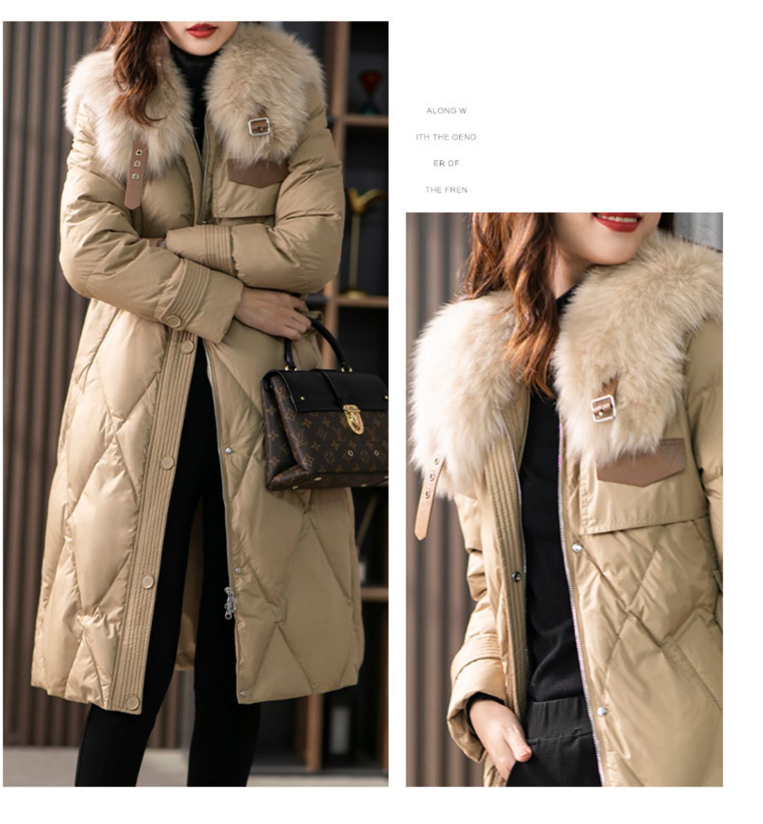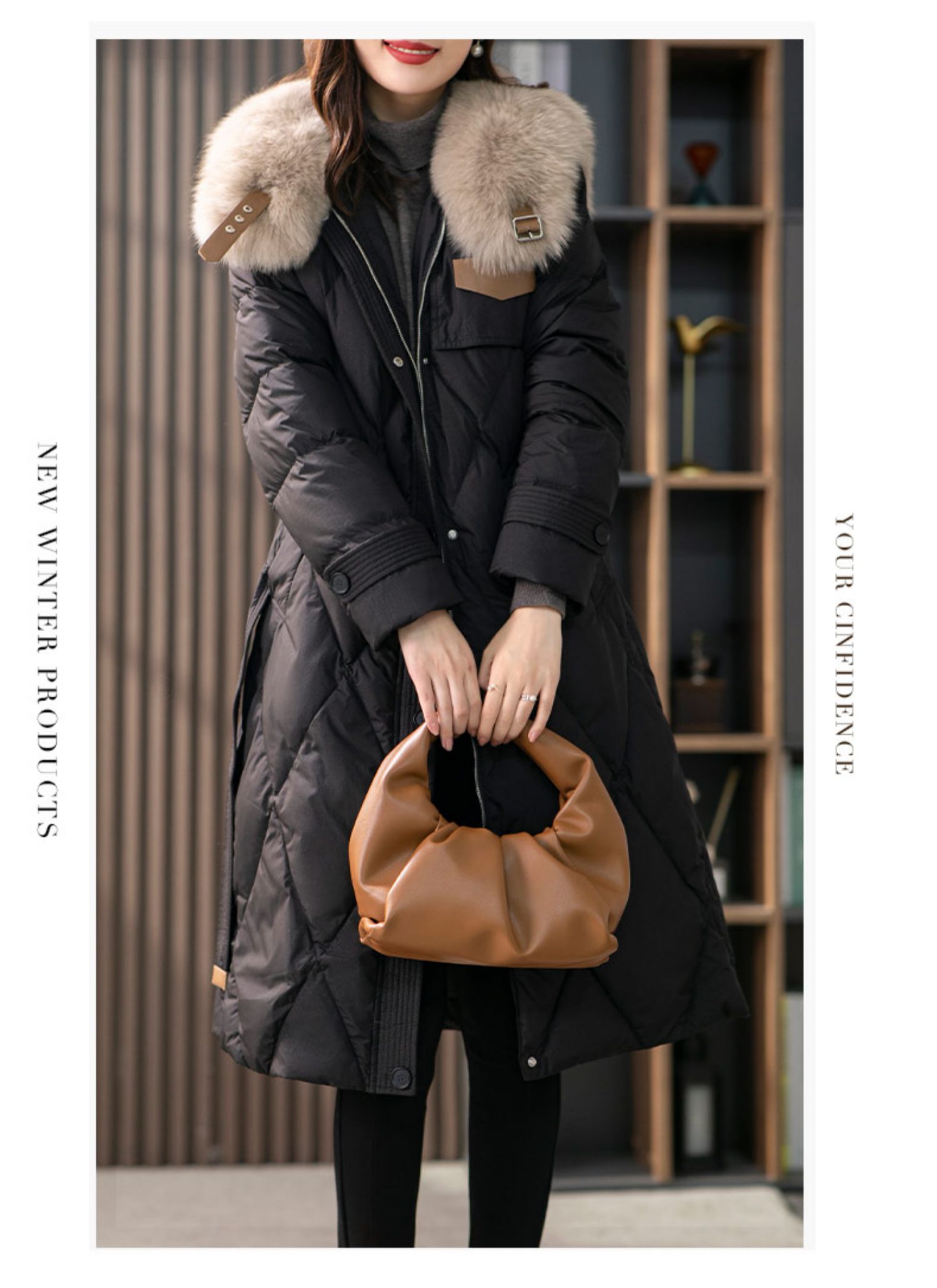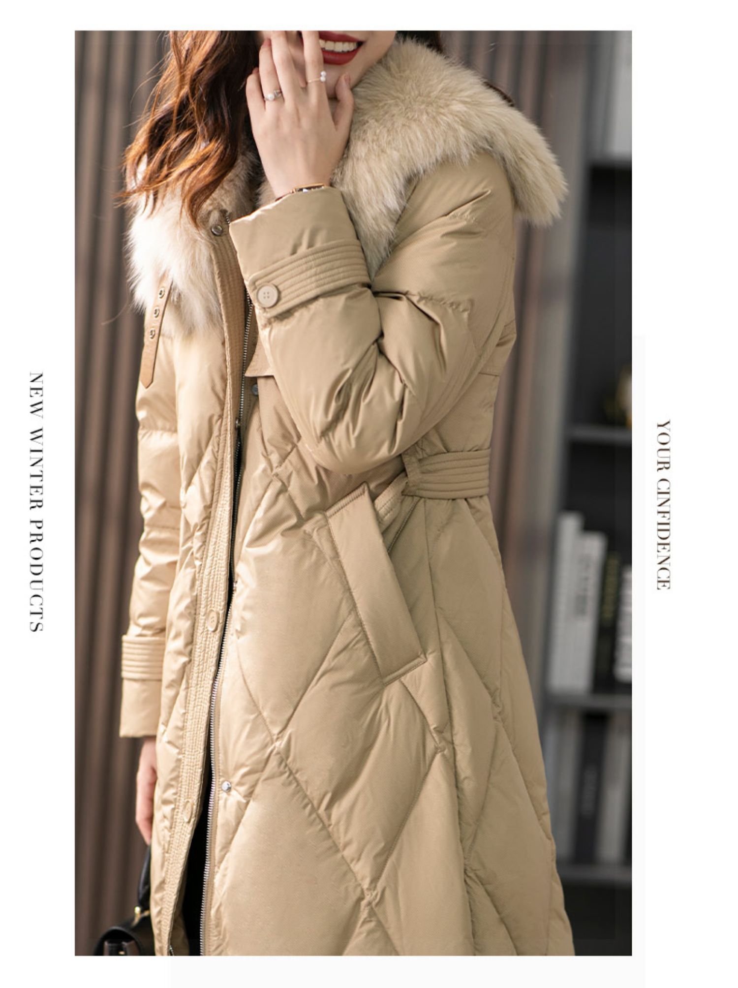 原形狐狸大毛领鹅绒羽绒服女过膝收腰2023新款韩版中长款冬季外套