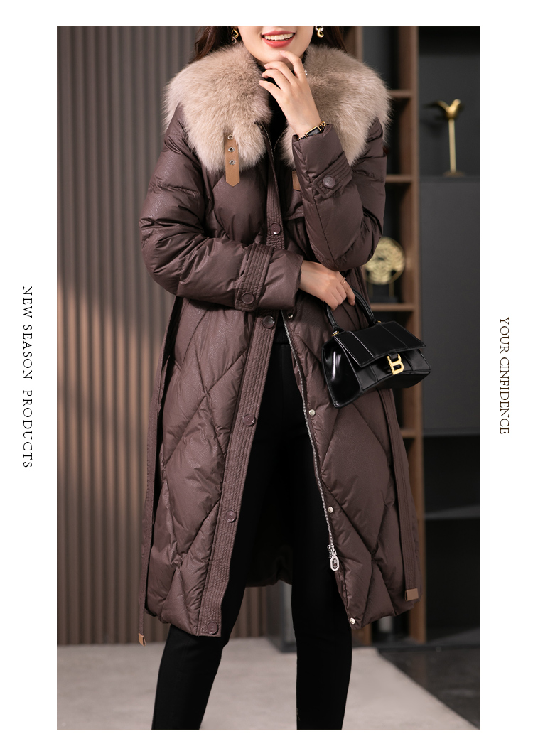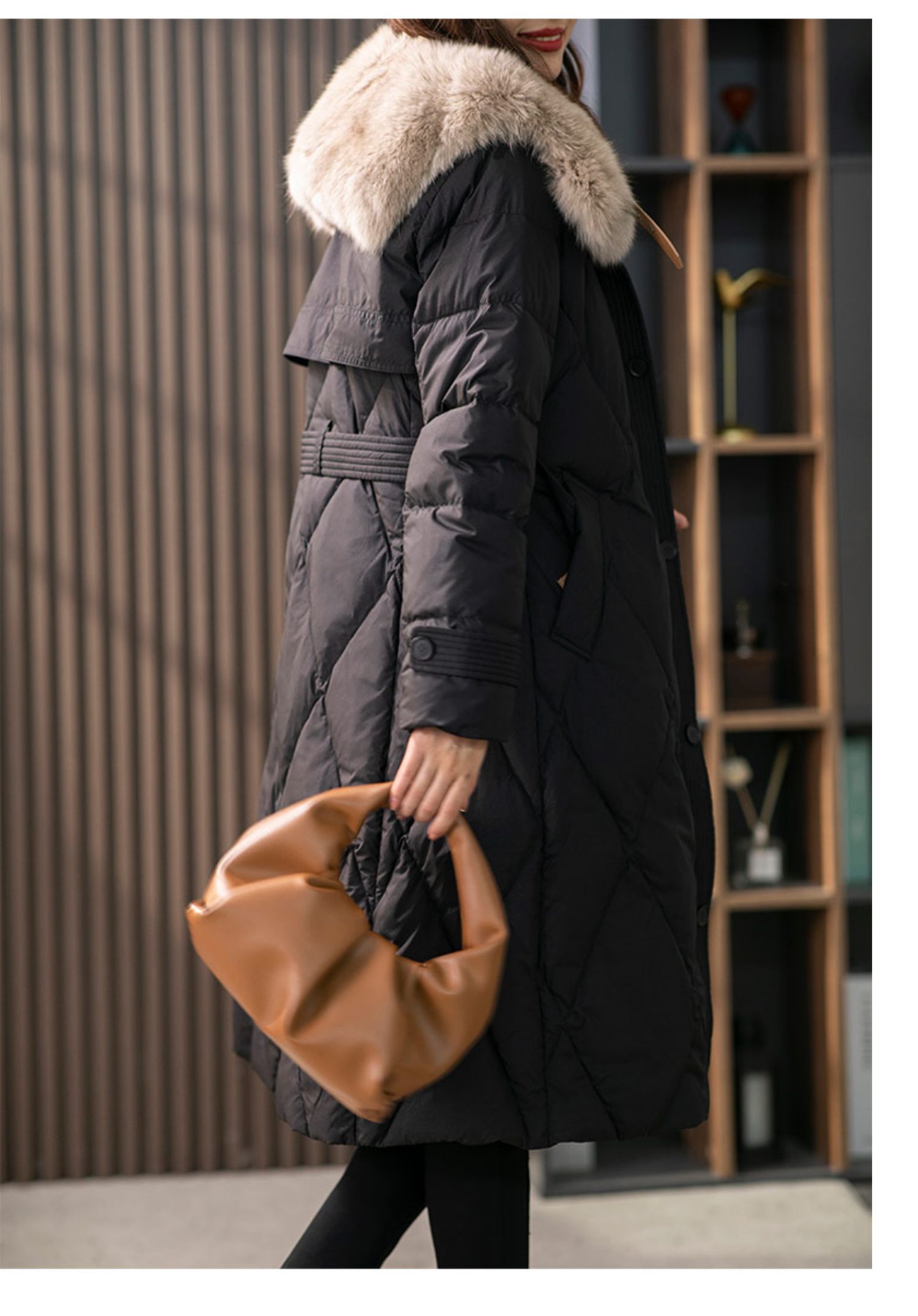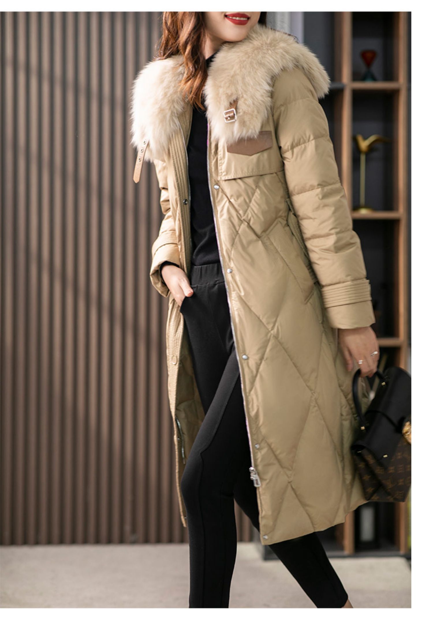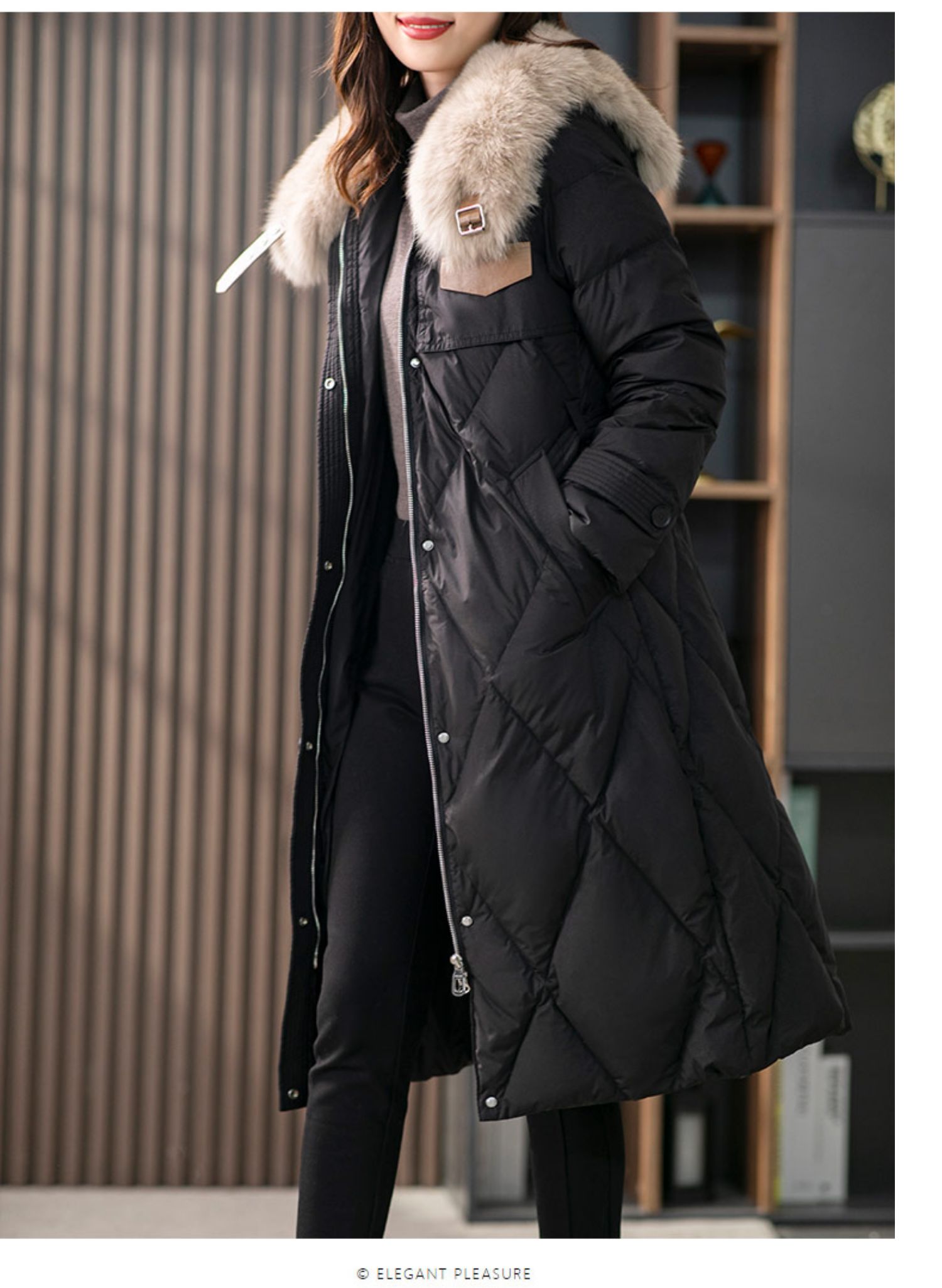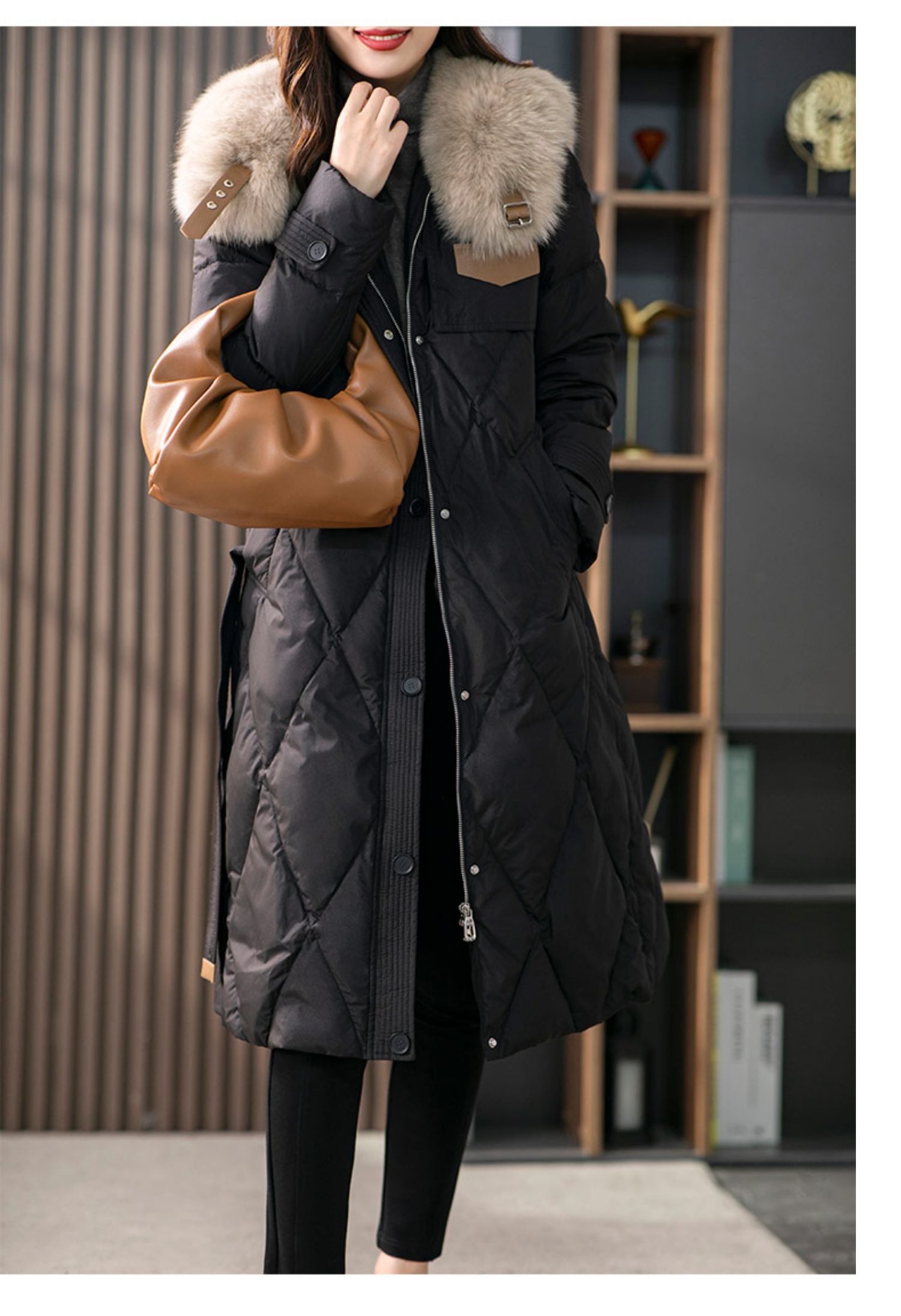 原形狐狸大毛领鹅绒羽绒服女过膝收腰2023新款韩版中长款冬季外套