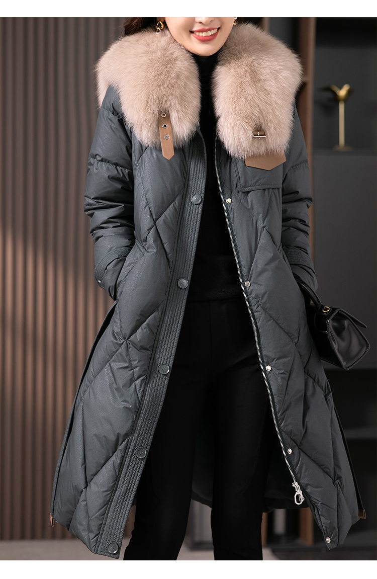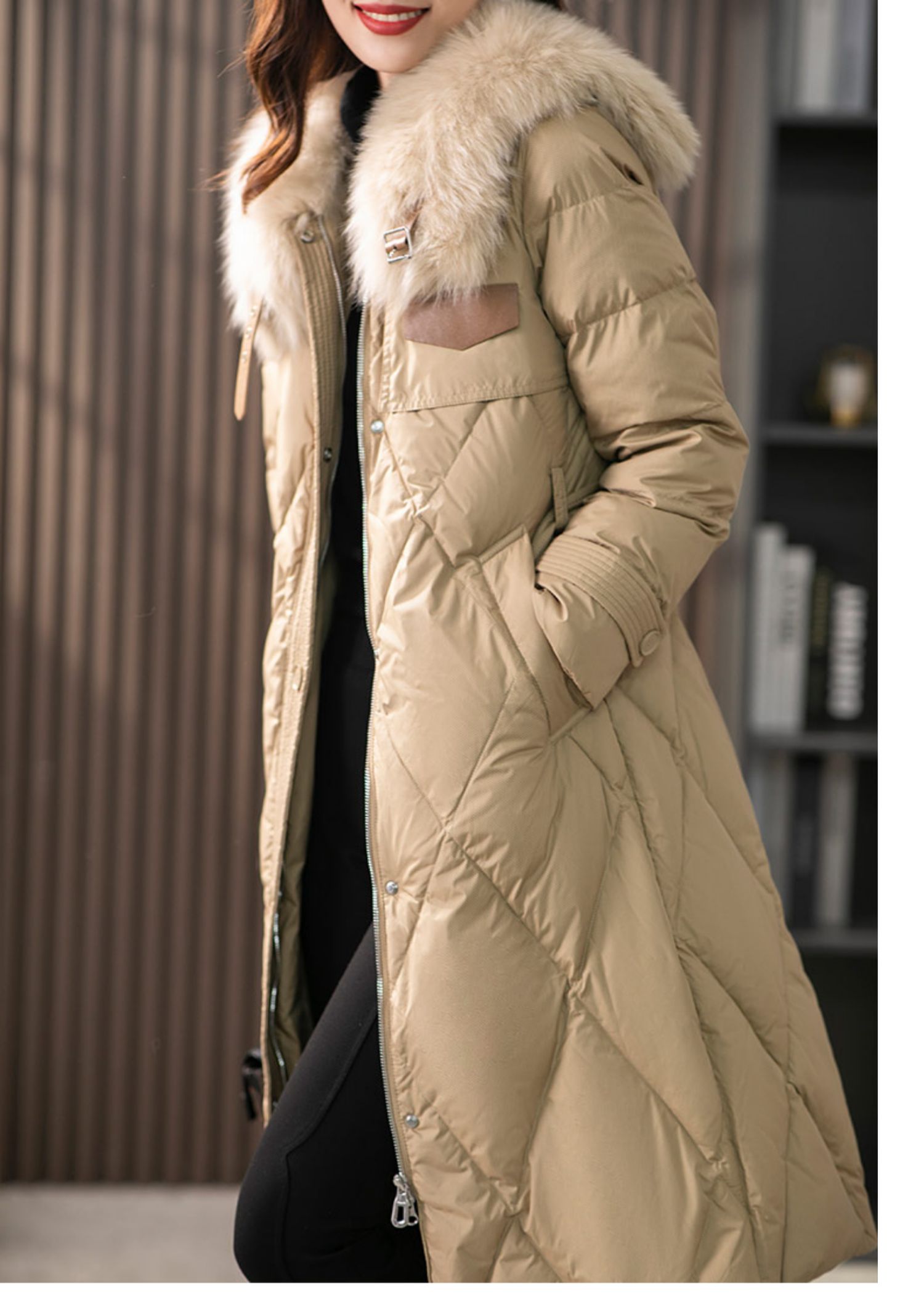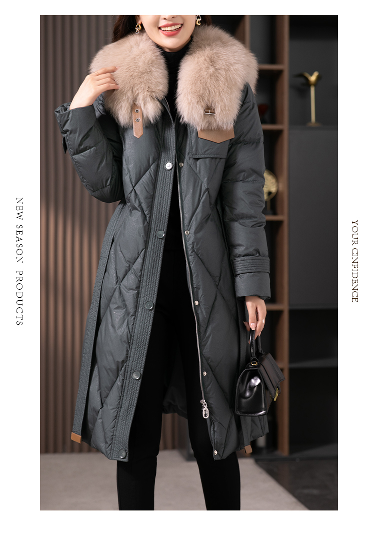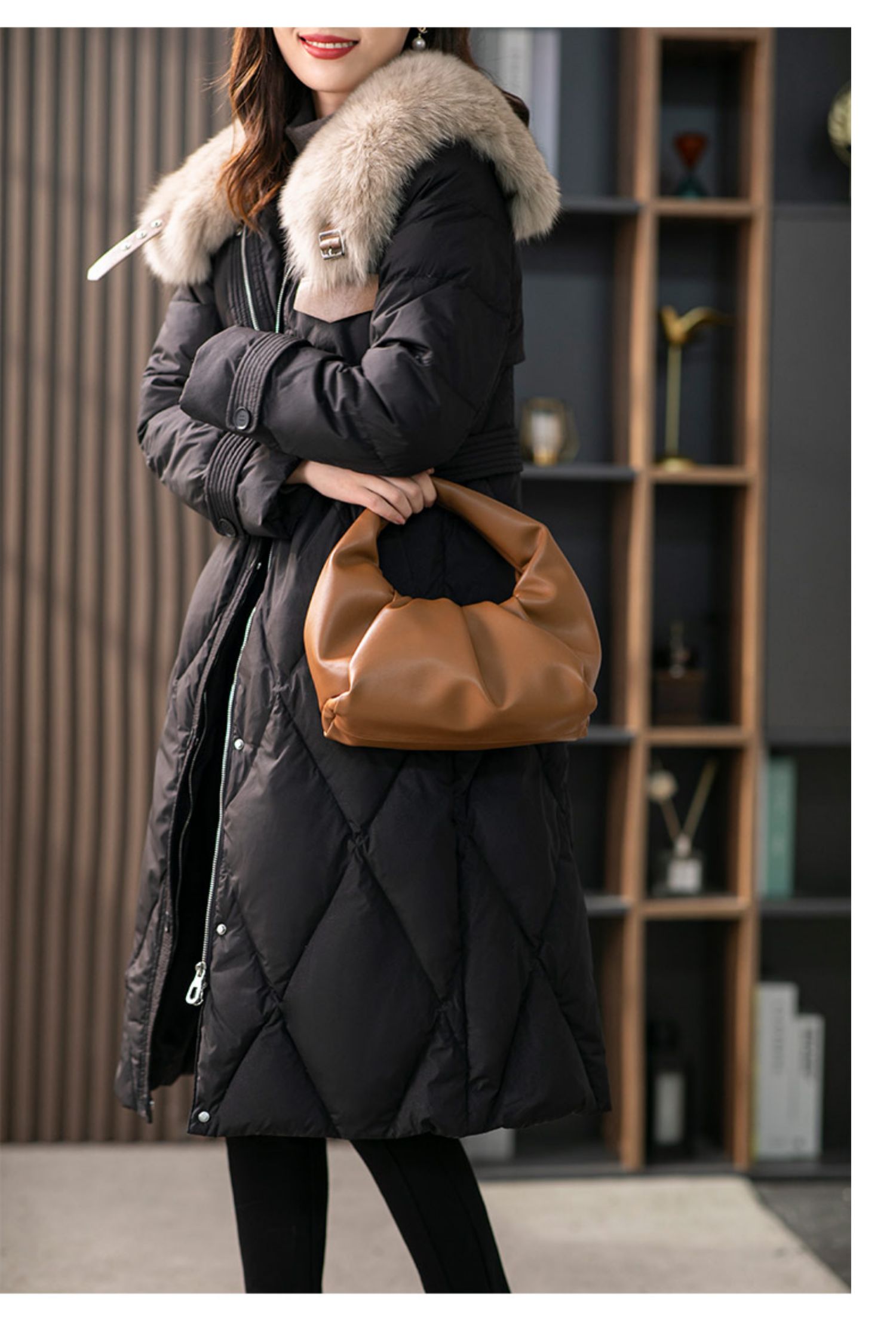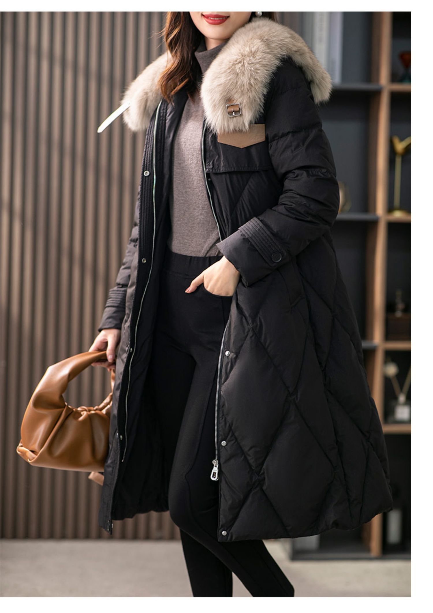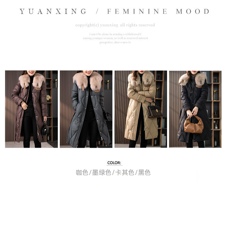 原形狐狸大毛领鹅绒羽绒服女过膝收腰2023新款韩版中长款冬季外套