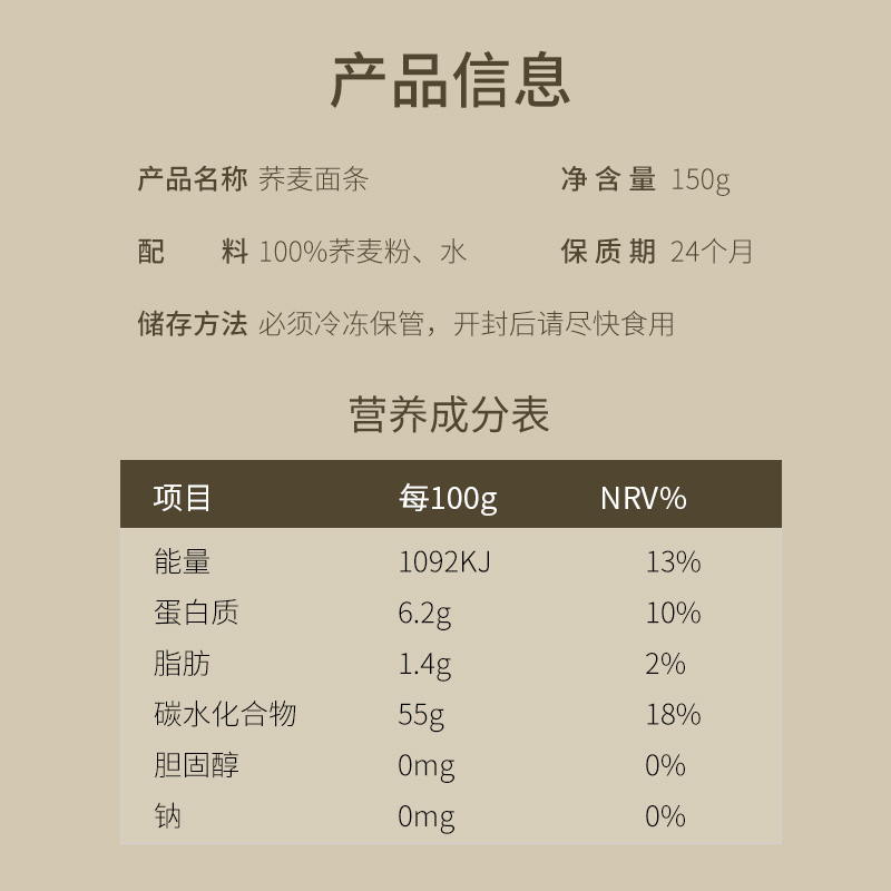 荞本荞真100%真荞麦冷冻鲜面 减肥控糖必备荞麦面营养口感顺滑面条