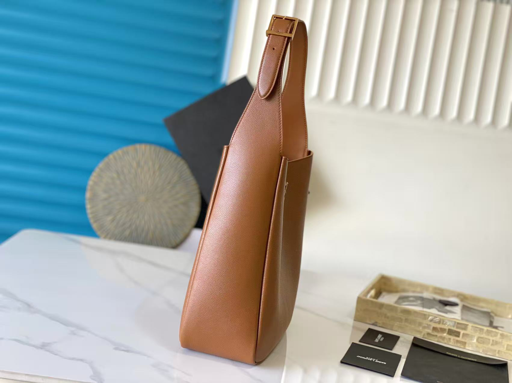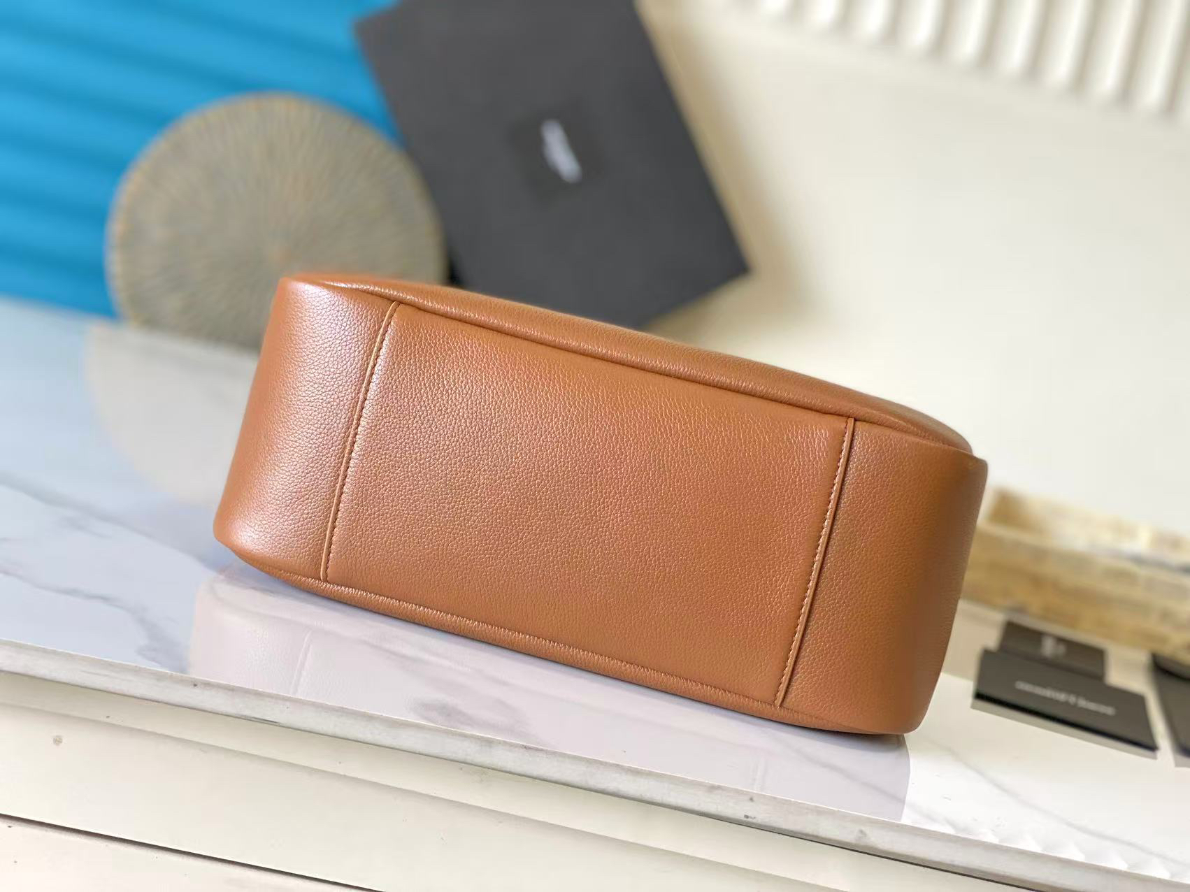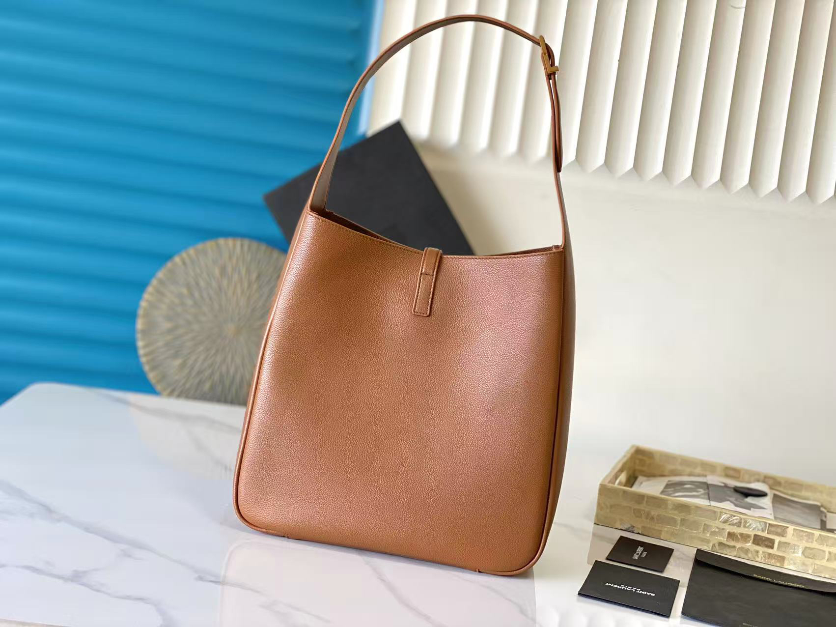 大光滑皮革柔软手袋大号,韩国明星同款Hobo!!今年火到爆炸的腋下包Y家虽迟但到!!包包身轮廓简洁、立体,看上去硬挺却不会太凌厉。搭配上品牌标志性的插入式包扣,整体给人一种既经典优雅,又很时髦现代的独特气质。尺寸:30x31x13cm