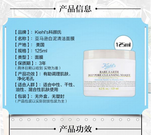 Kiehl's科颜氏亚马逊白泥清洁面膜125ml