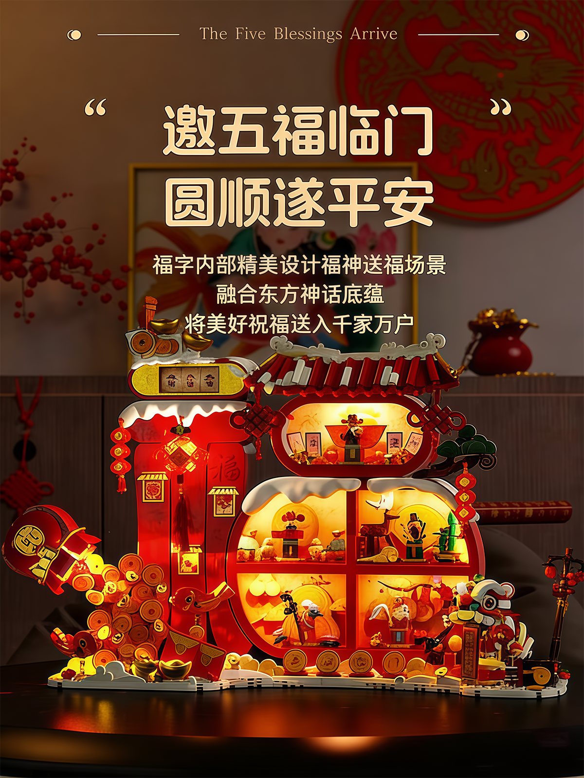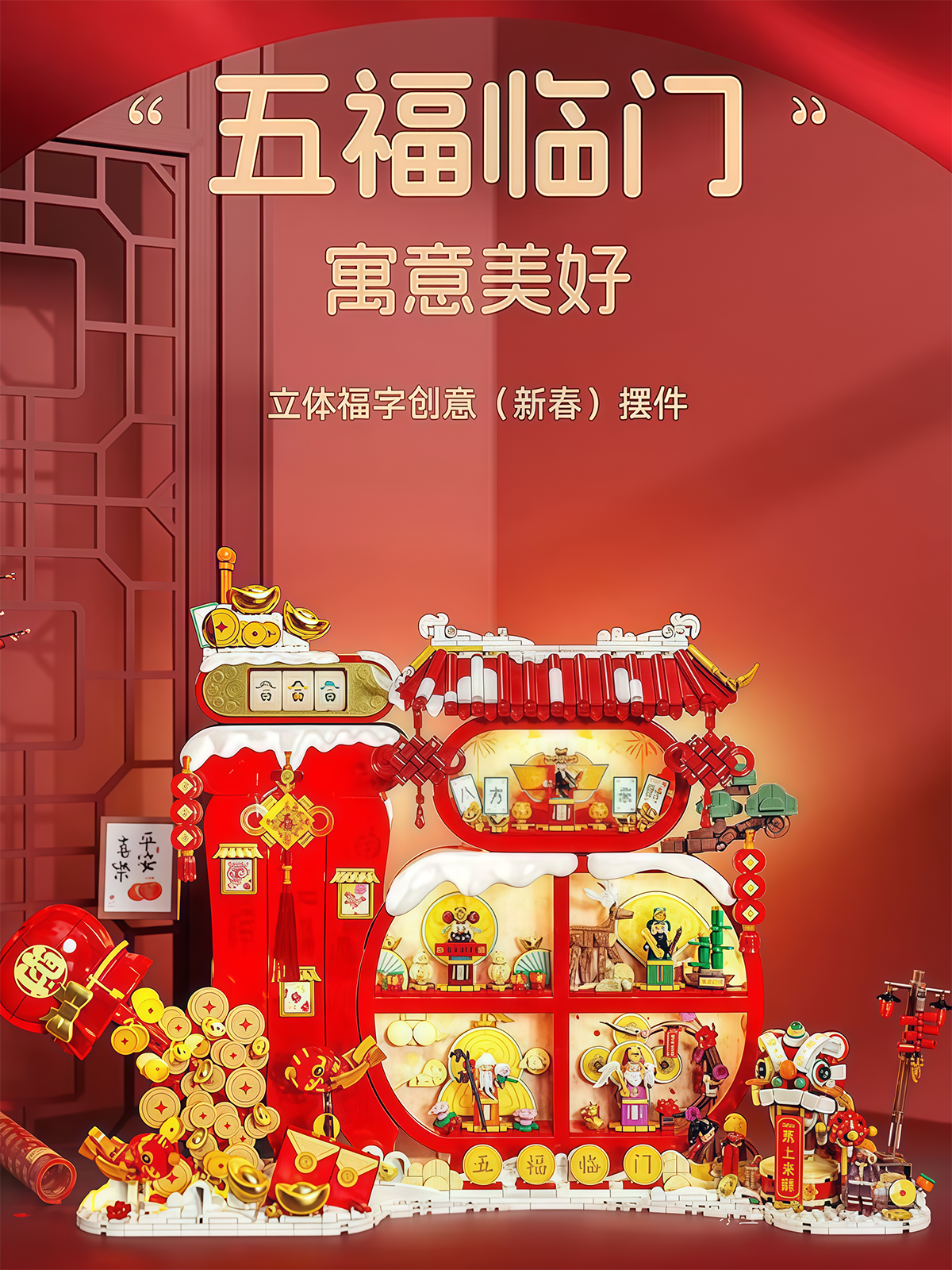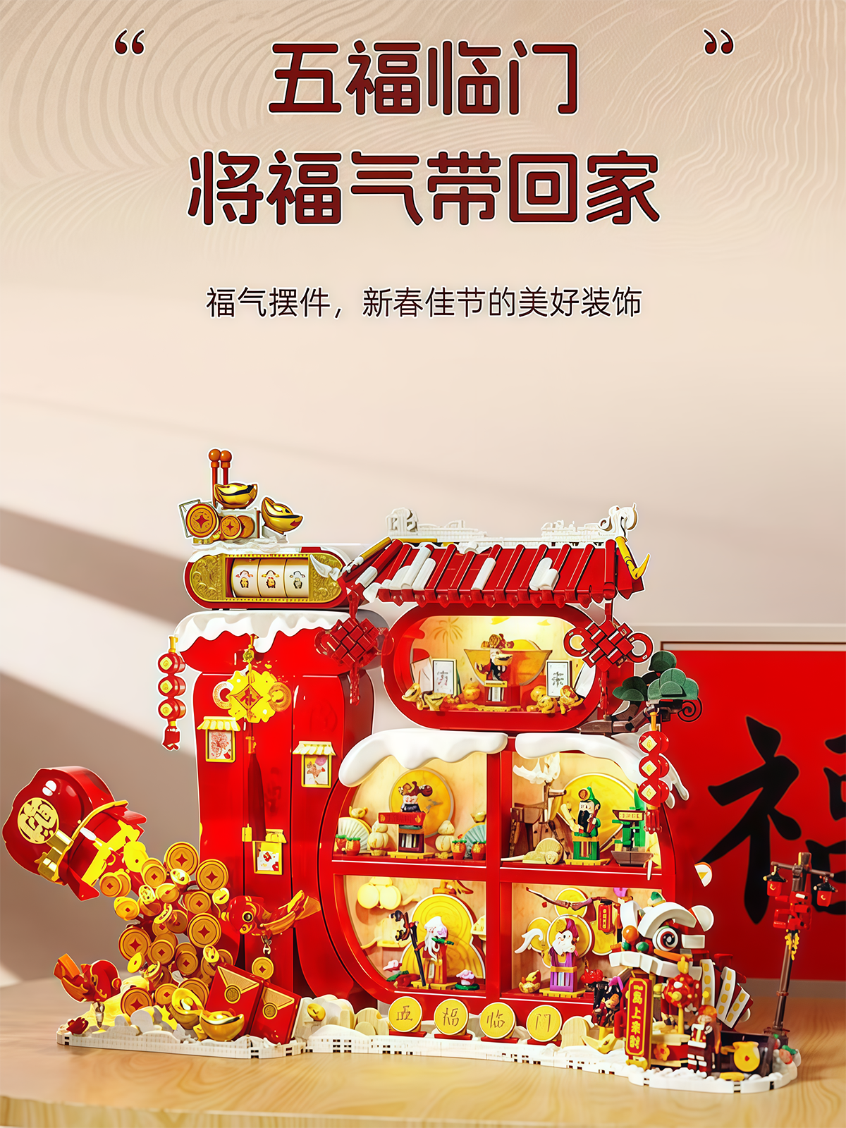 山姆同款 未及五福临门积木立体创意灯光摆件新年拼搭玩具春节礼物