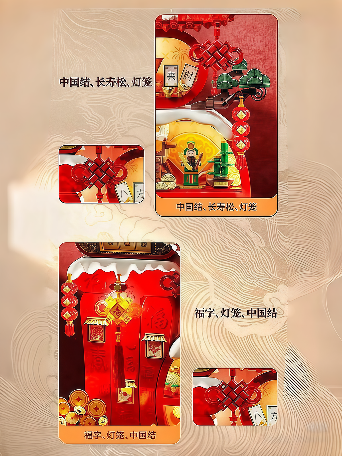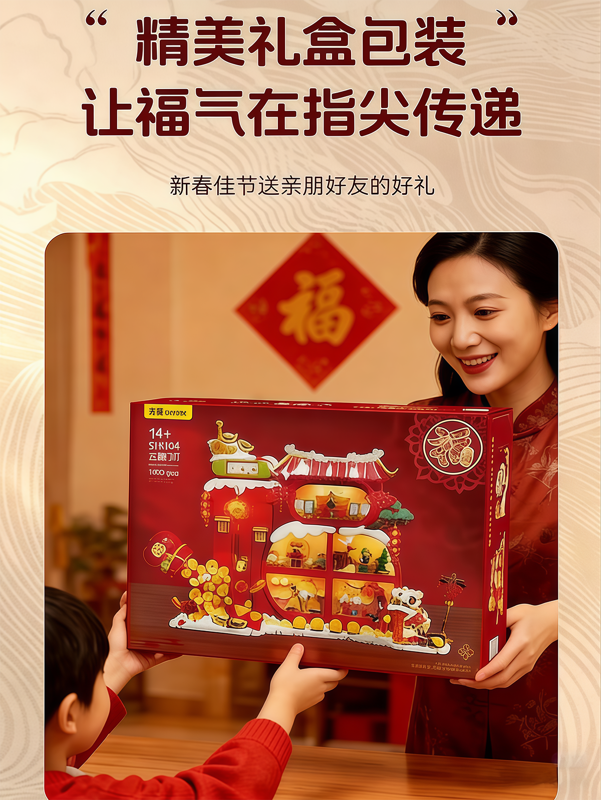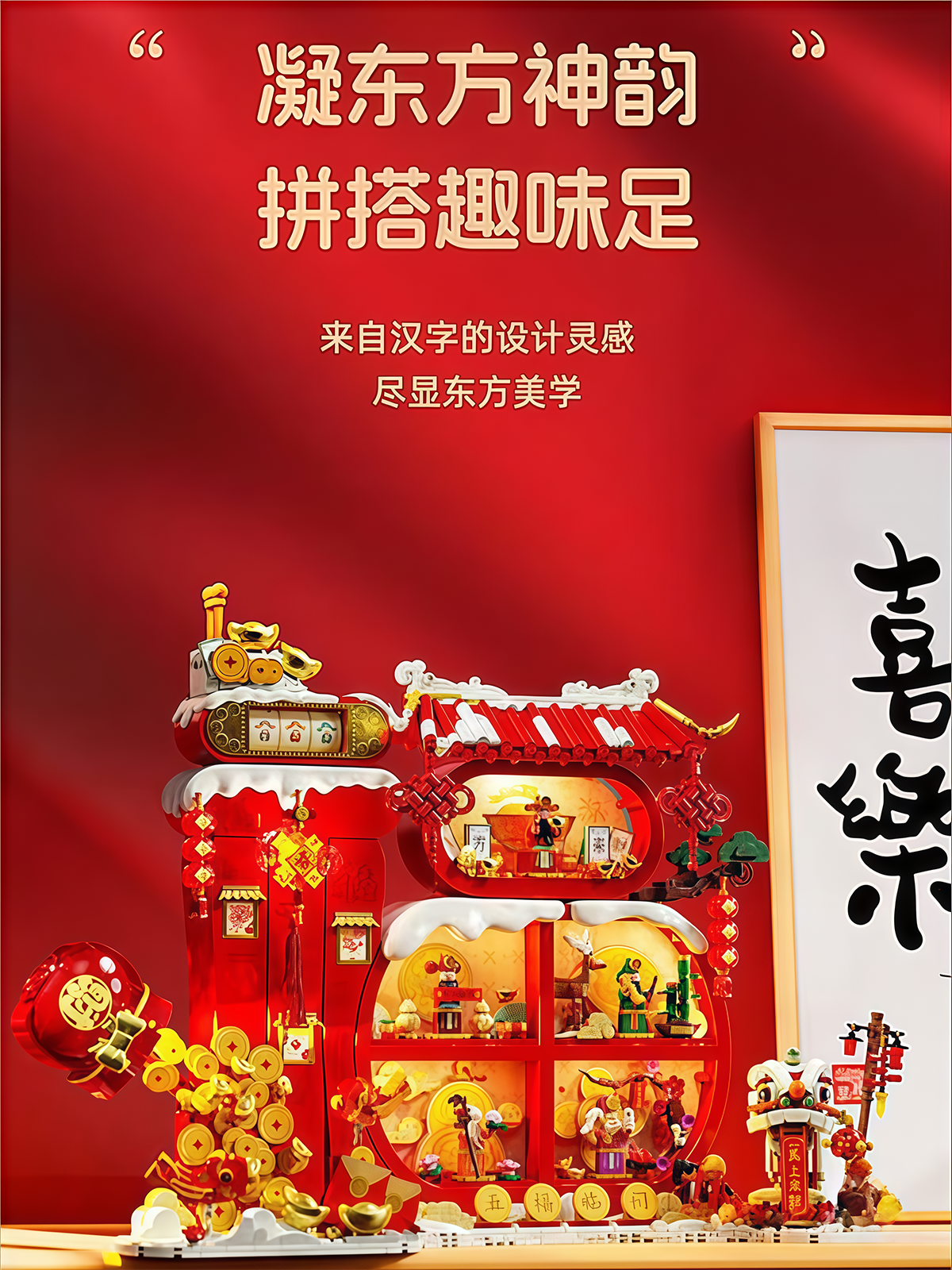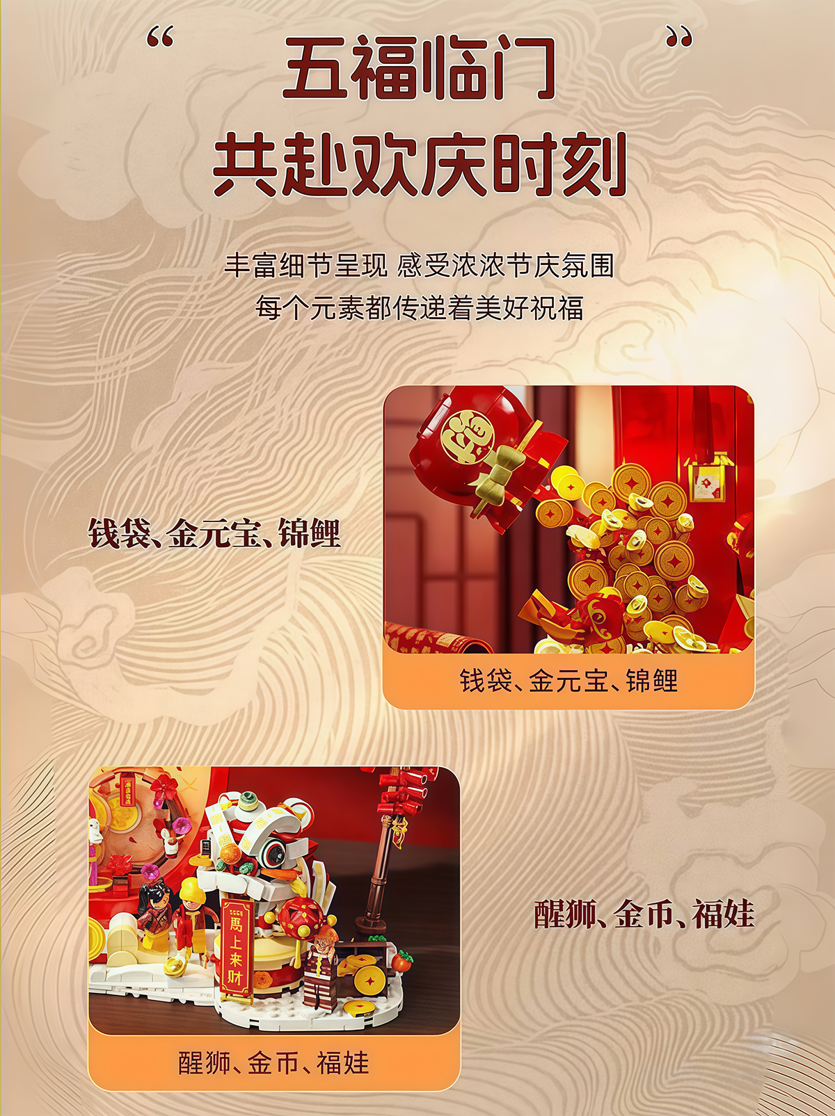 山姆同款 未及五福临门积木立体创意灯光摆件新年拼搭玩具春节礼物