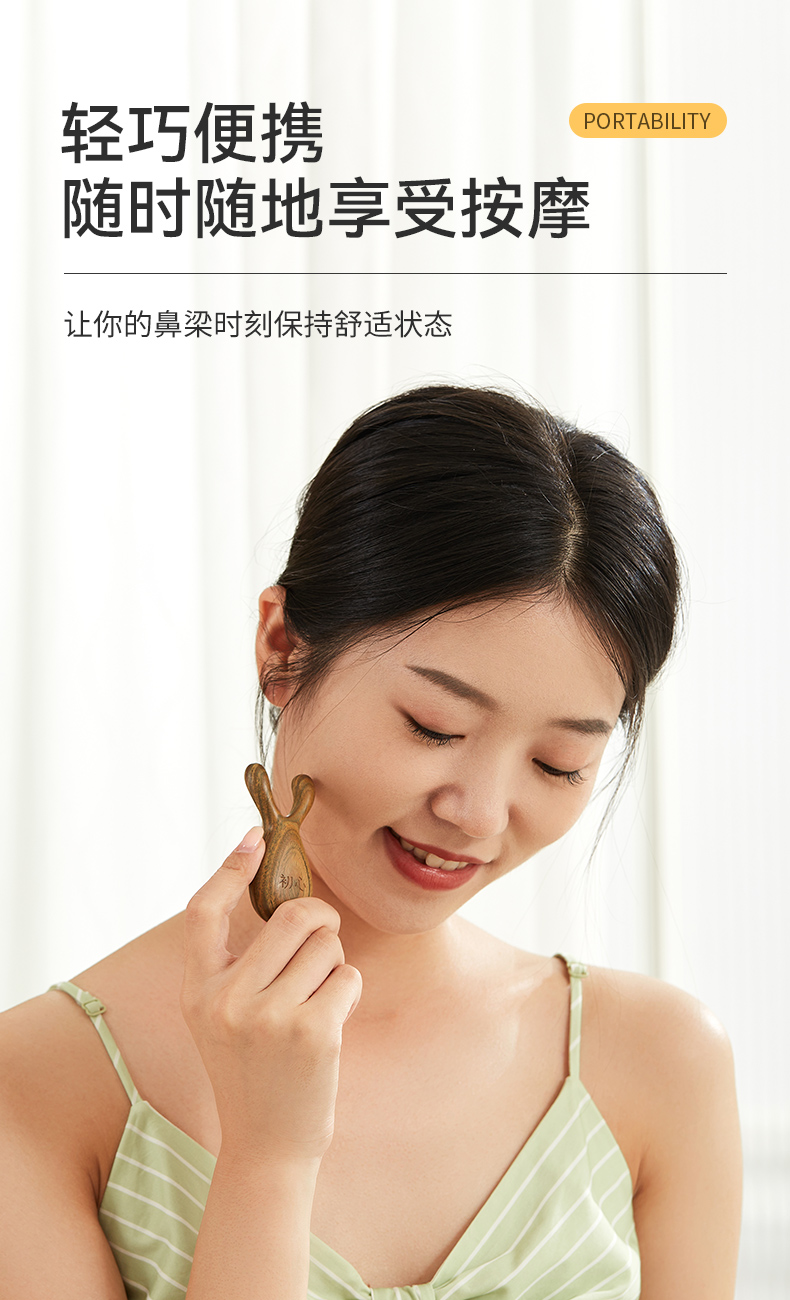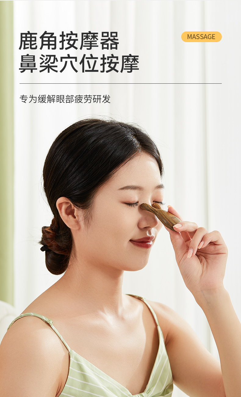 初心 鼻梁眼部穴位按摩器 便携鹿角梳鼻面部提拉刮器