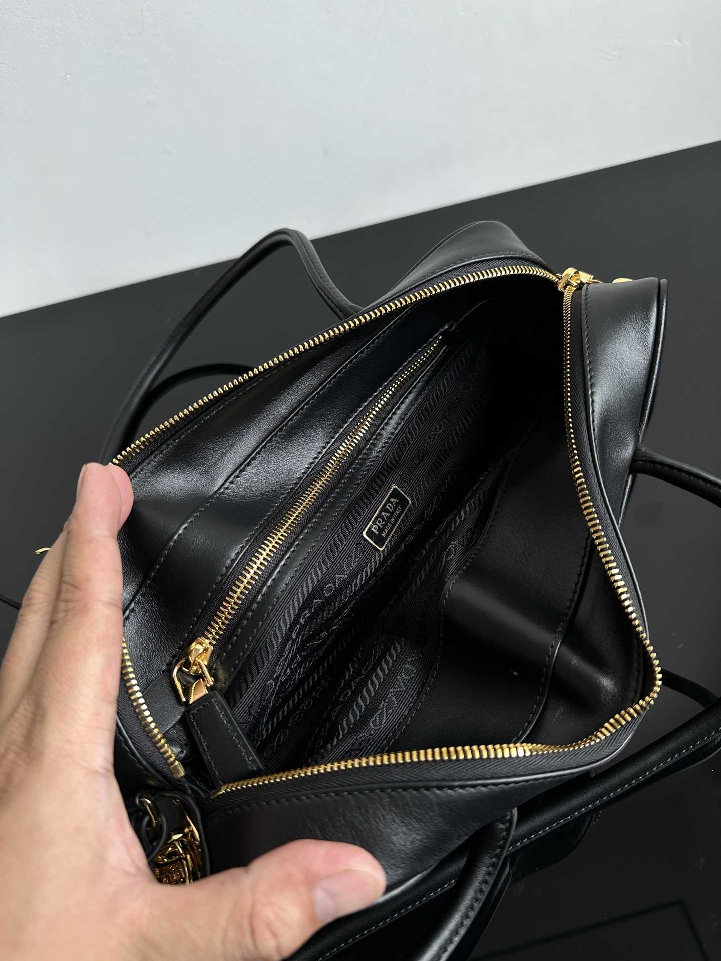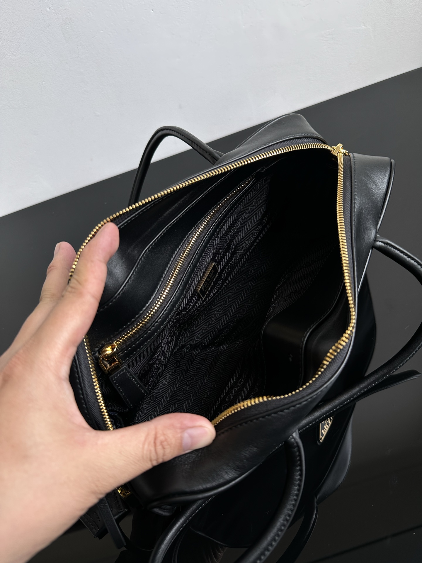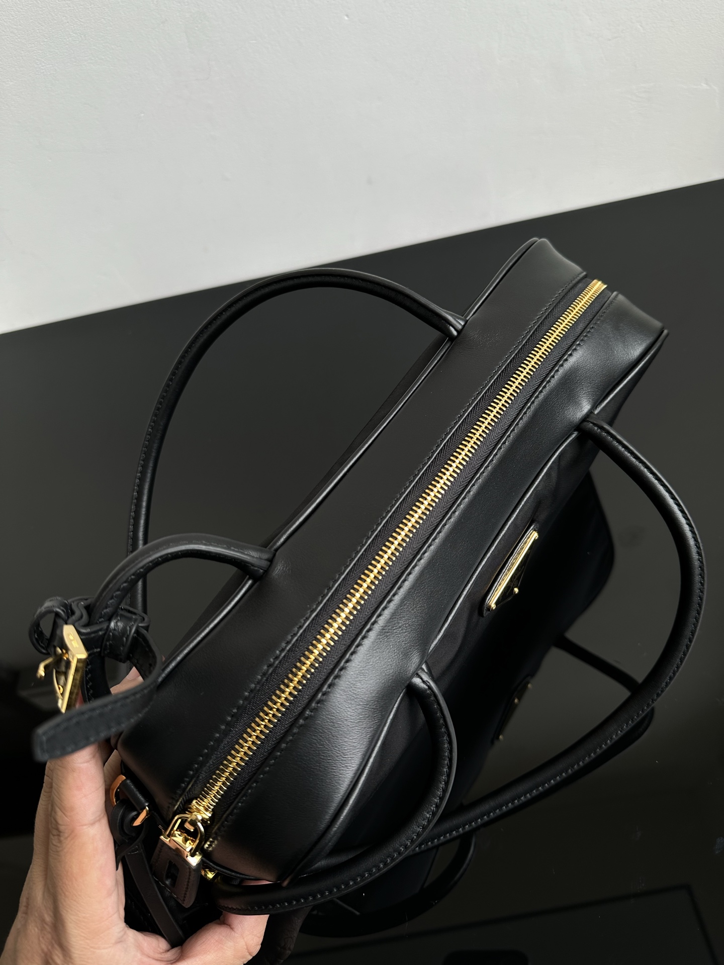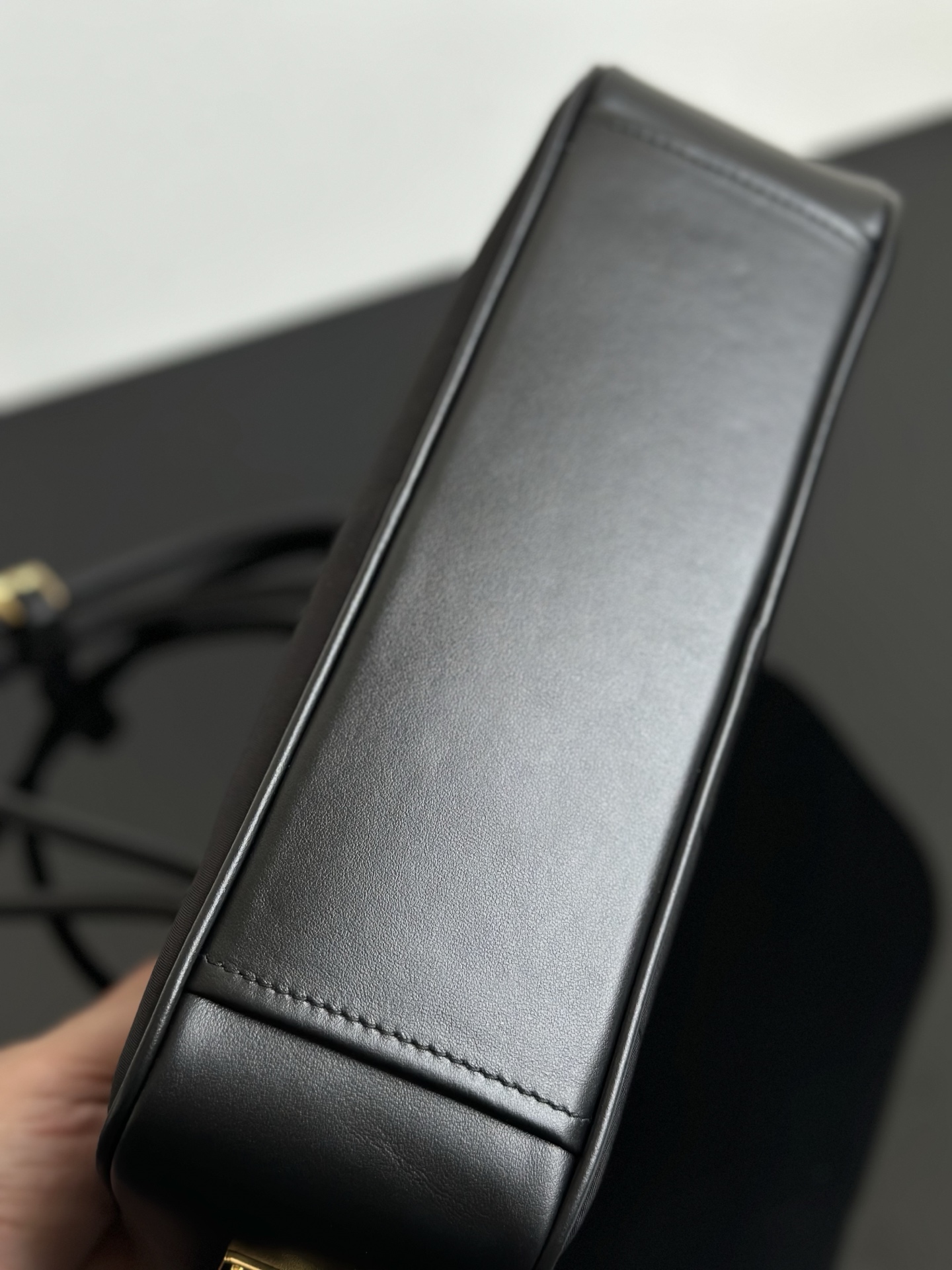 侧面底部和上面都是配小牛皮的 手柄也是小牛皮材质