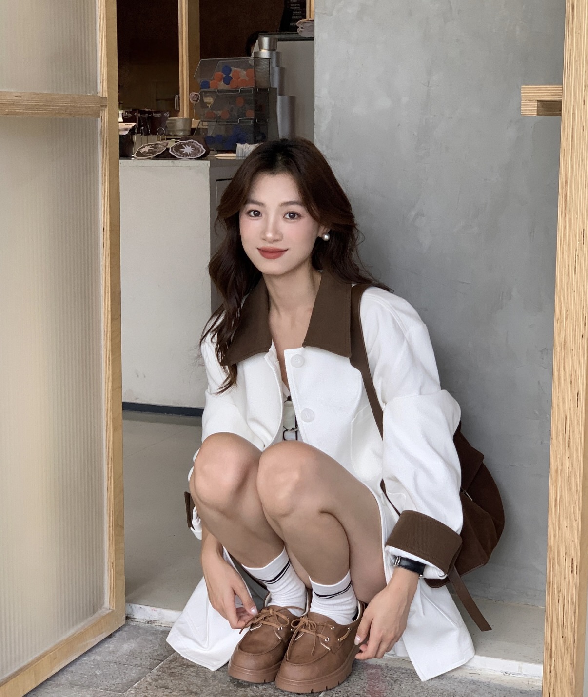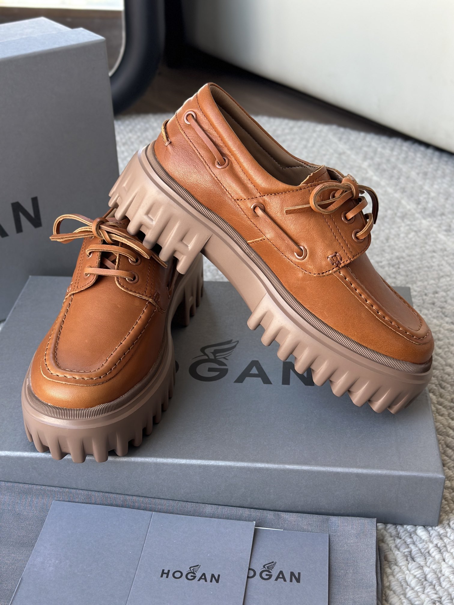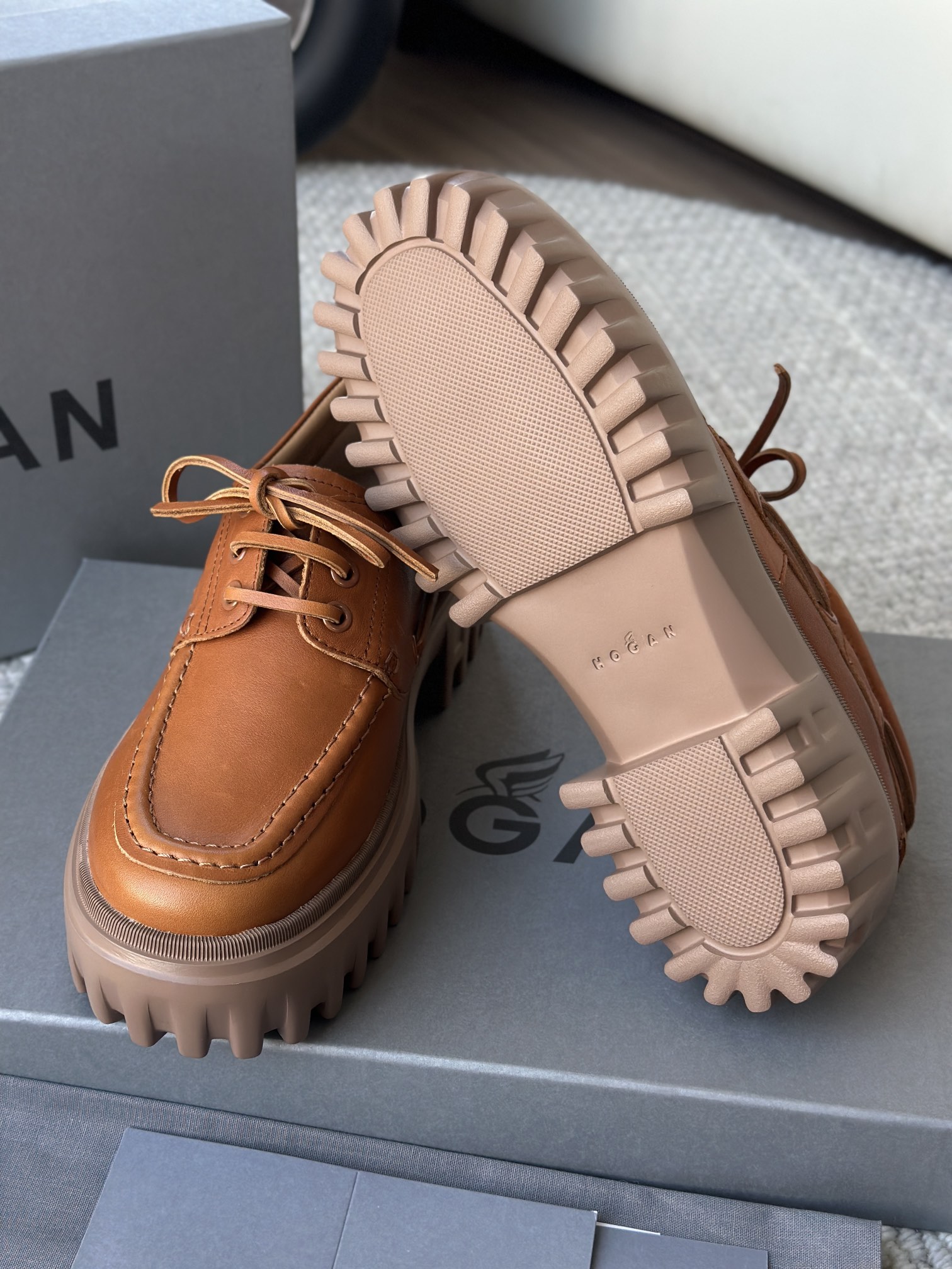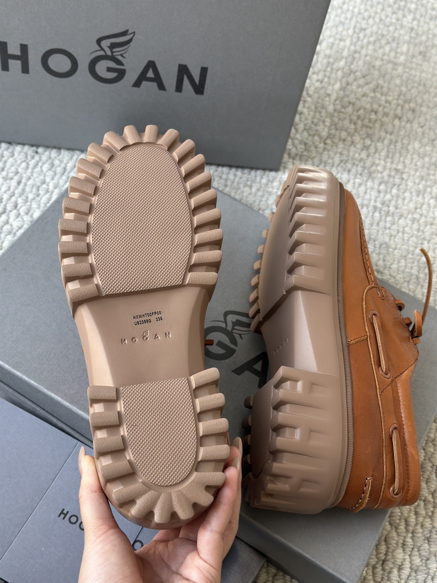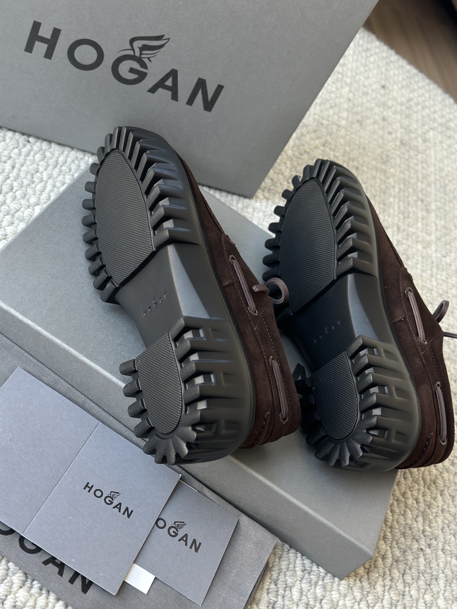 棕色和磨砂的麂皮不要太搭!! 摸起来简直像云朵一样柔软☁️ 鞋带绕鞋一周,设计超吸睛!! 自带时尚感!上脚古灵精怪的 有设计感又不会太浮夸,质感hen在线~