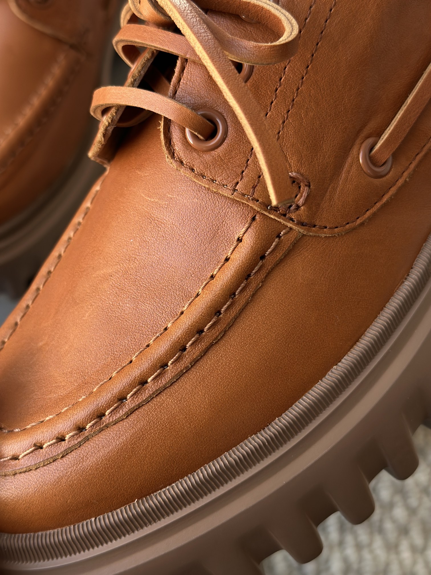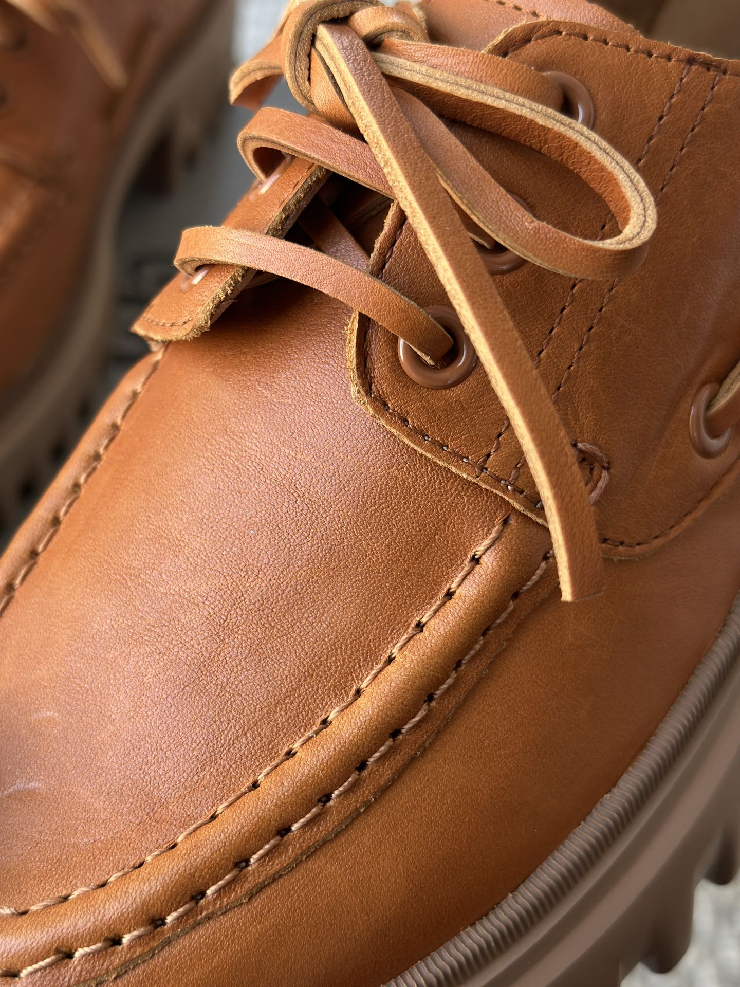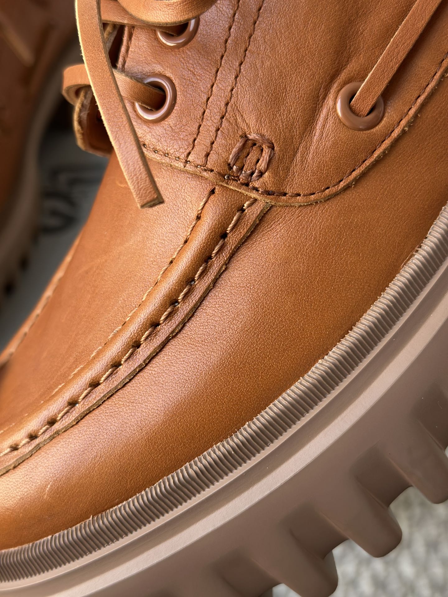 纯手工马克缝线剪裁的小方形鞋头 保证穿着舒适 不挤脚 有很好的脚感体验