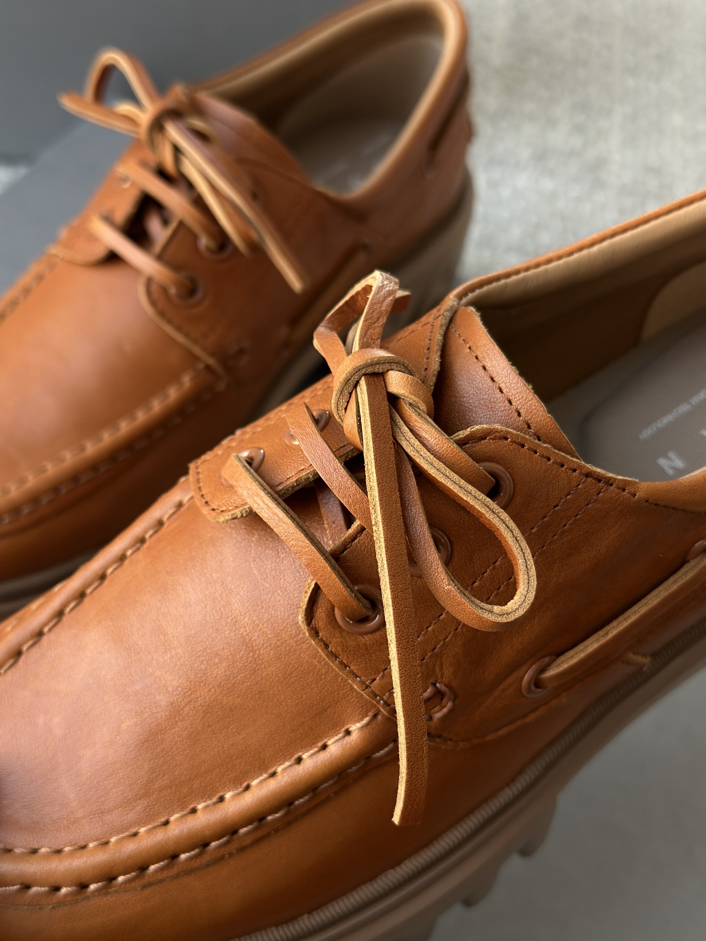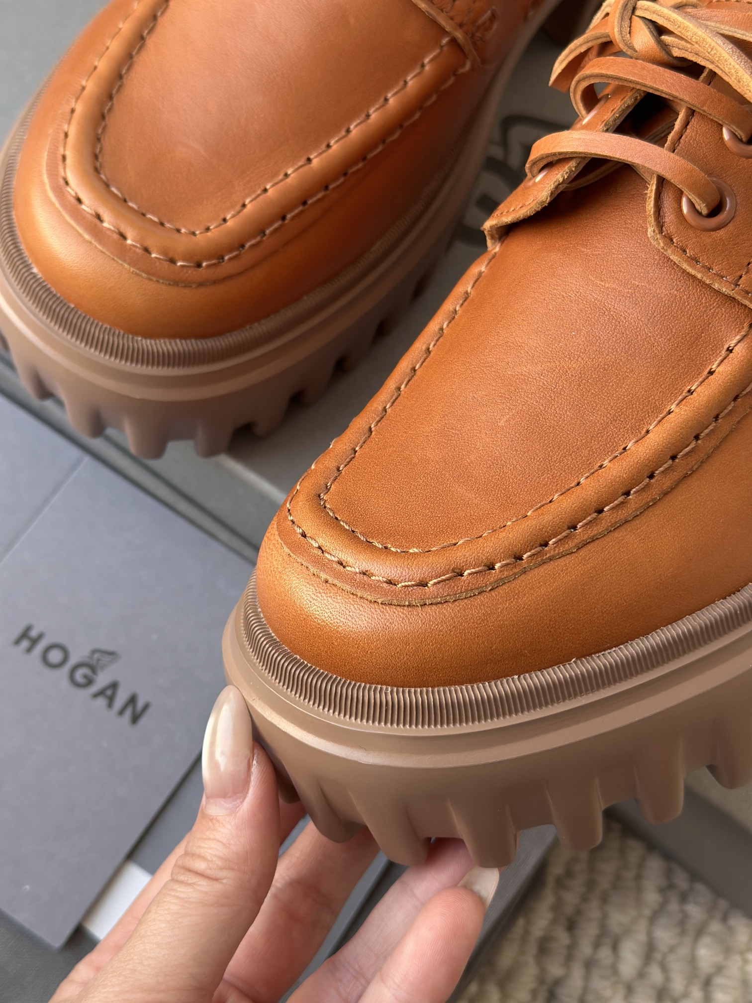 鞋身是进口牛皮鞋面 是不是真牛皮一眼便知!!皮料纹理清晰可见 富有光泽 偏软 ~ 轻松满足多种的穿搭场合!!!