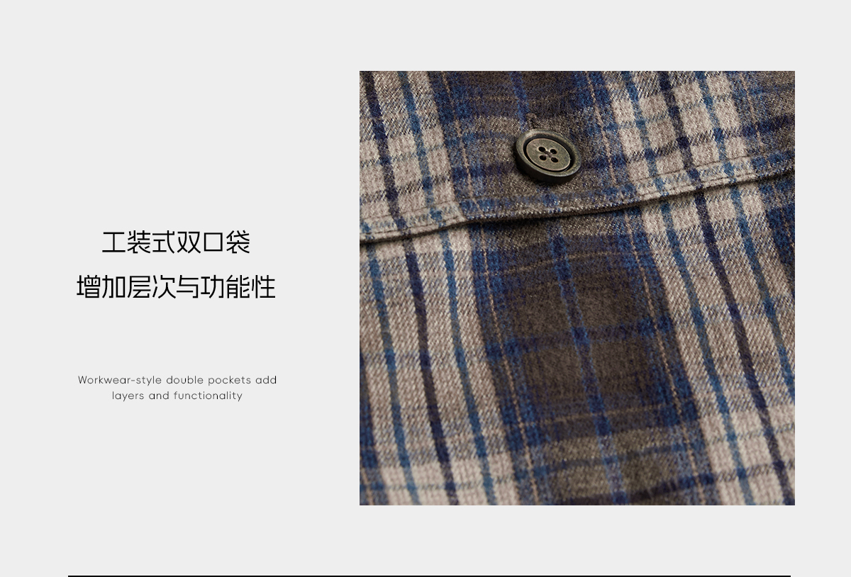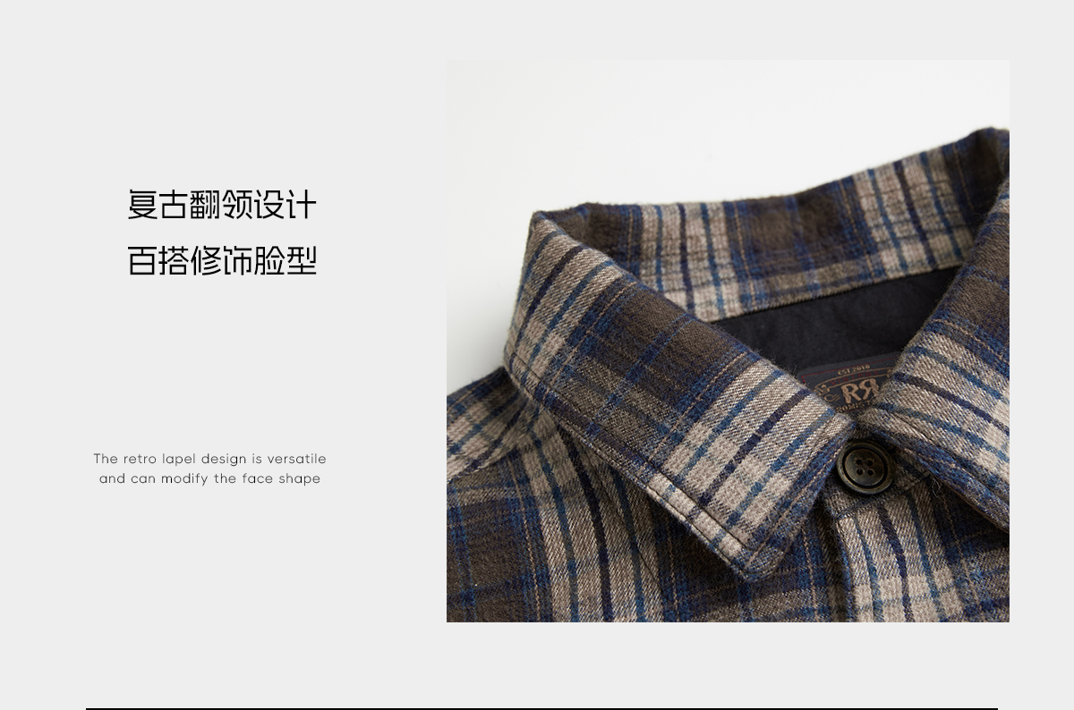 ROMI STUDIO“调性色彩”复古磨毛色织/蓝棕格子夹克外套RWCAWU5425 【发货时间25-30天】