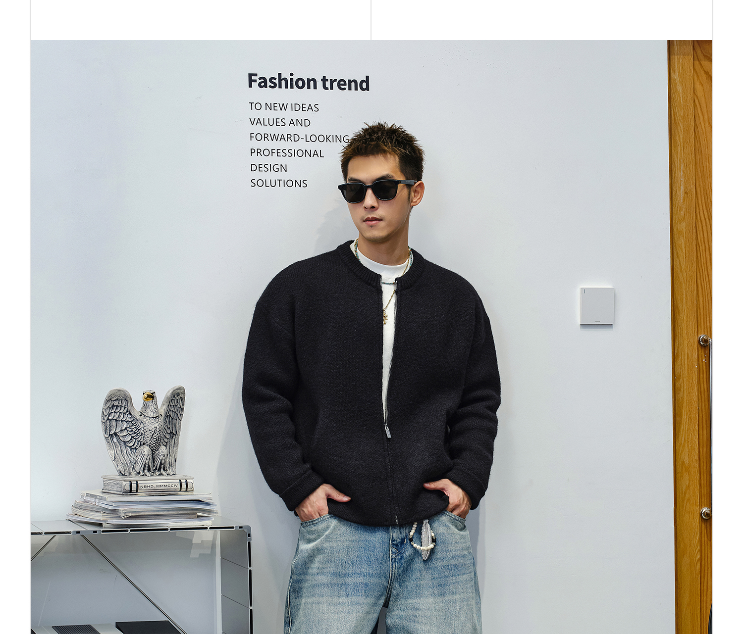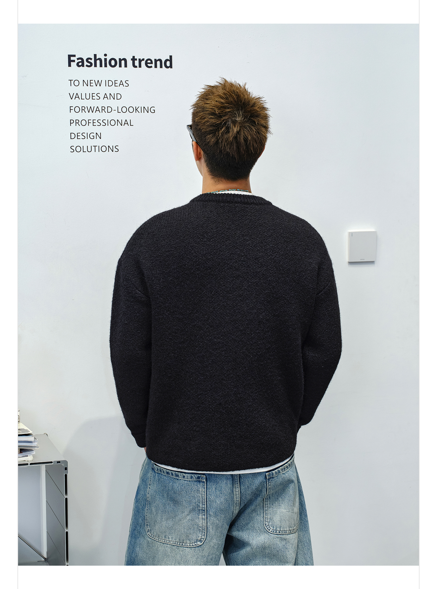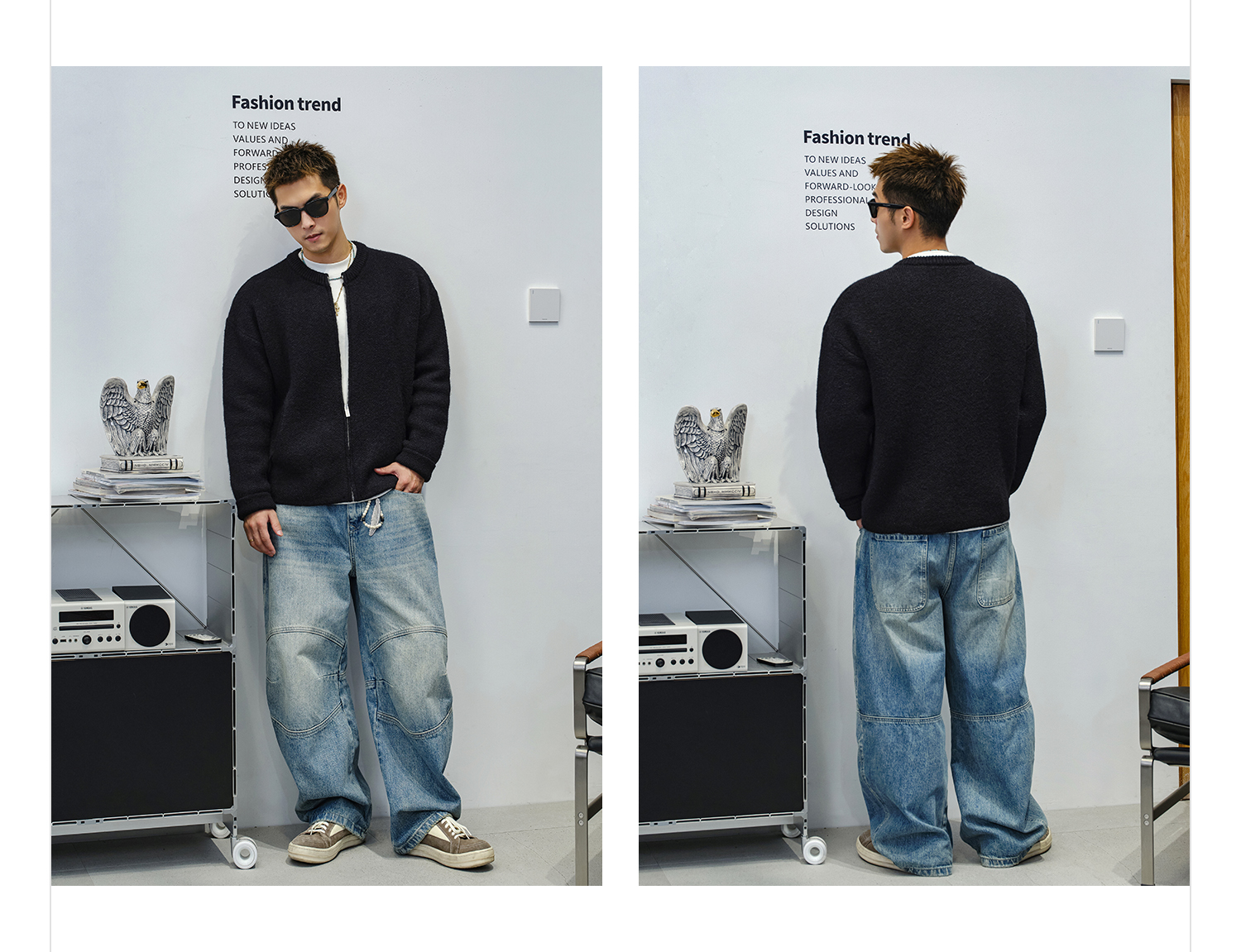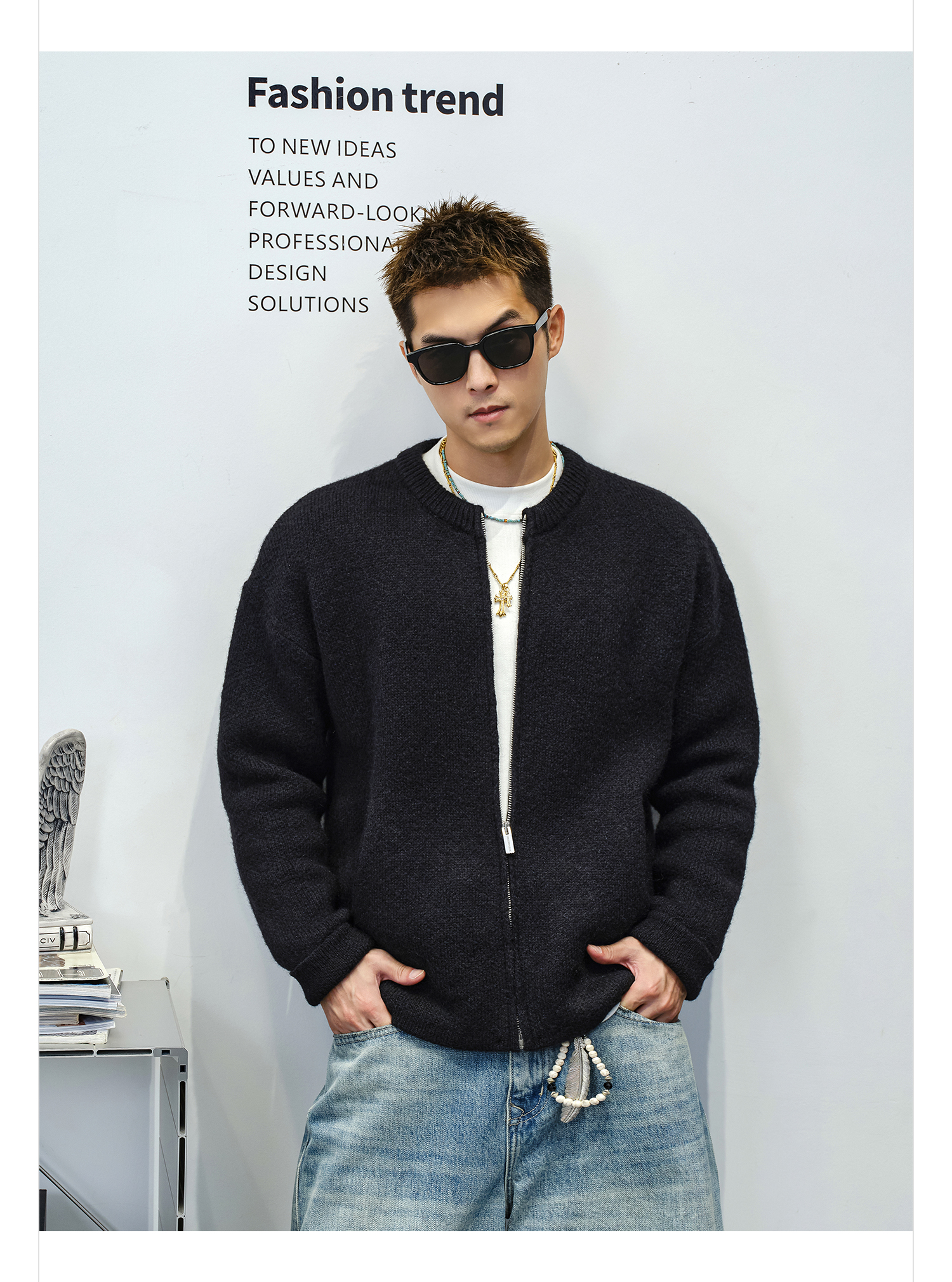 徐太浪【cleanfit 基础百搭】黑色圆领开衫毛衣男秋冬男装针织衫