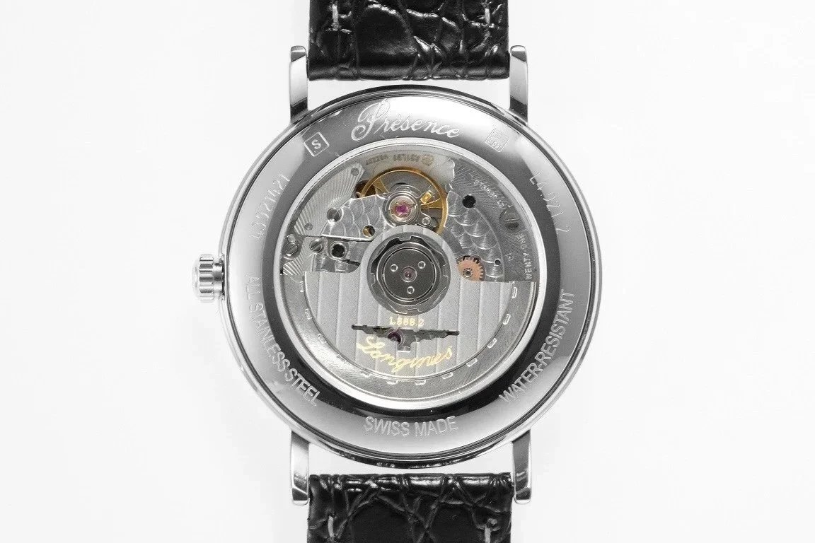 2021年新款首发: 【重大突破!浪琴进入L888机芯时代】 全新超薄时尚款瑰丽系列,独家定制,表径38.5mm,拥有官方最新同步的“L888”型号自动上链机芯,淘汰市面甲板一眼假外观,外观更区别于旧款停产的2892机芯。 机芯升级对比区别: 1.自动轴承外观与尺寸明显不同、 2.摆轮摆板无微调装置、 3.机芯主板发条盒处位置上的两个传动轮外露可见、 4.标志性镂空设计的自动陀片,真正对应此款L888.系列机芯型号、 5.精致的日内瓦纹与鱼鳞纹打磨同时具备。 得益于一体芯的优势,手表外观,厚度设计都与正品一致。腕表整体大方又百搭,受欢迎程度一直都堪称经典。 一表一码,三码合一,款式型号分别对应。 GL强势出品,真“芯”做好品质。