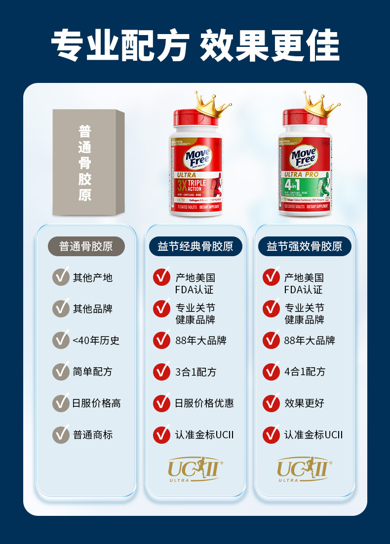 【白瓶75粒】益节Move Free 美国进口氨糖软骨素钙片 维骨力中老年人护关节营养品 【白瓶】骨胶原白瓶 75粒/瓶