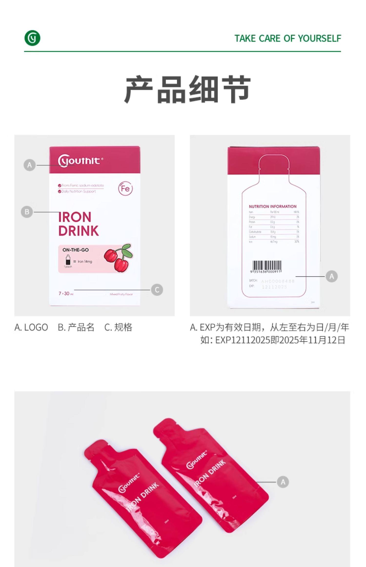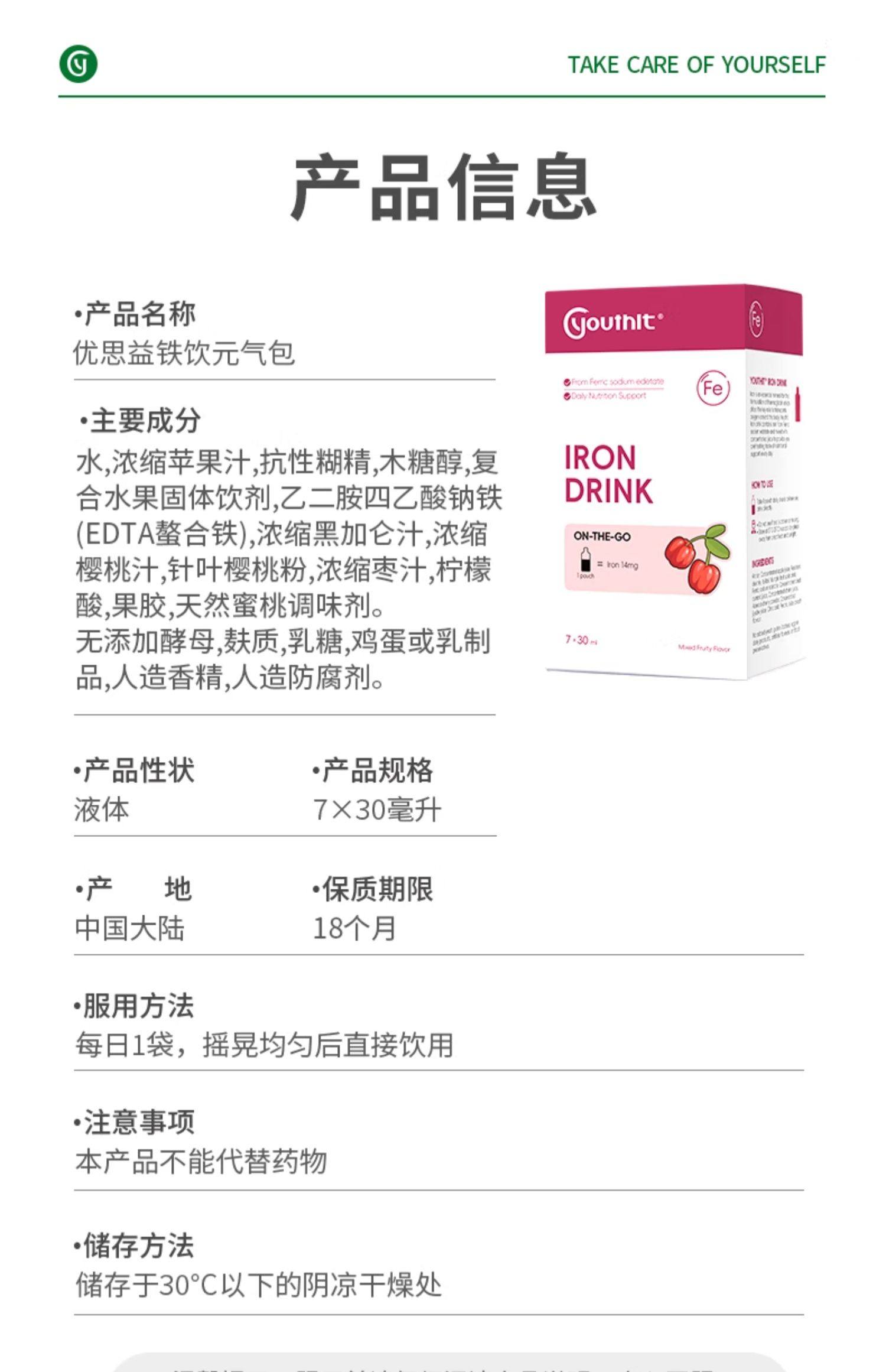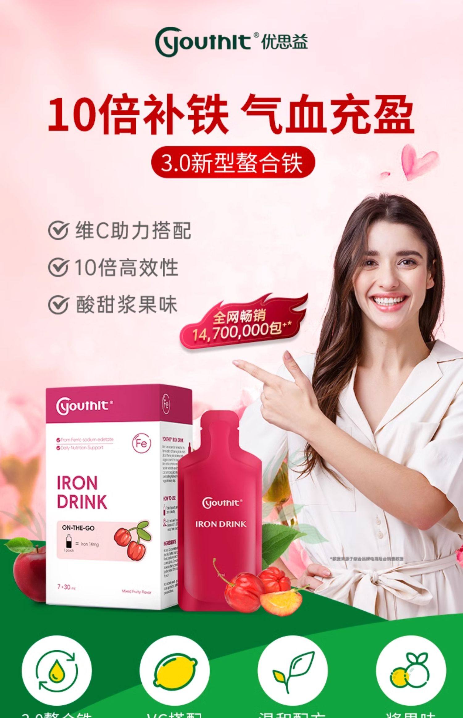 Youthit优思益铁饮元气包口服液保健品补铁剂气血无腥味好喝