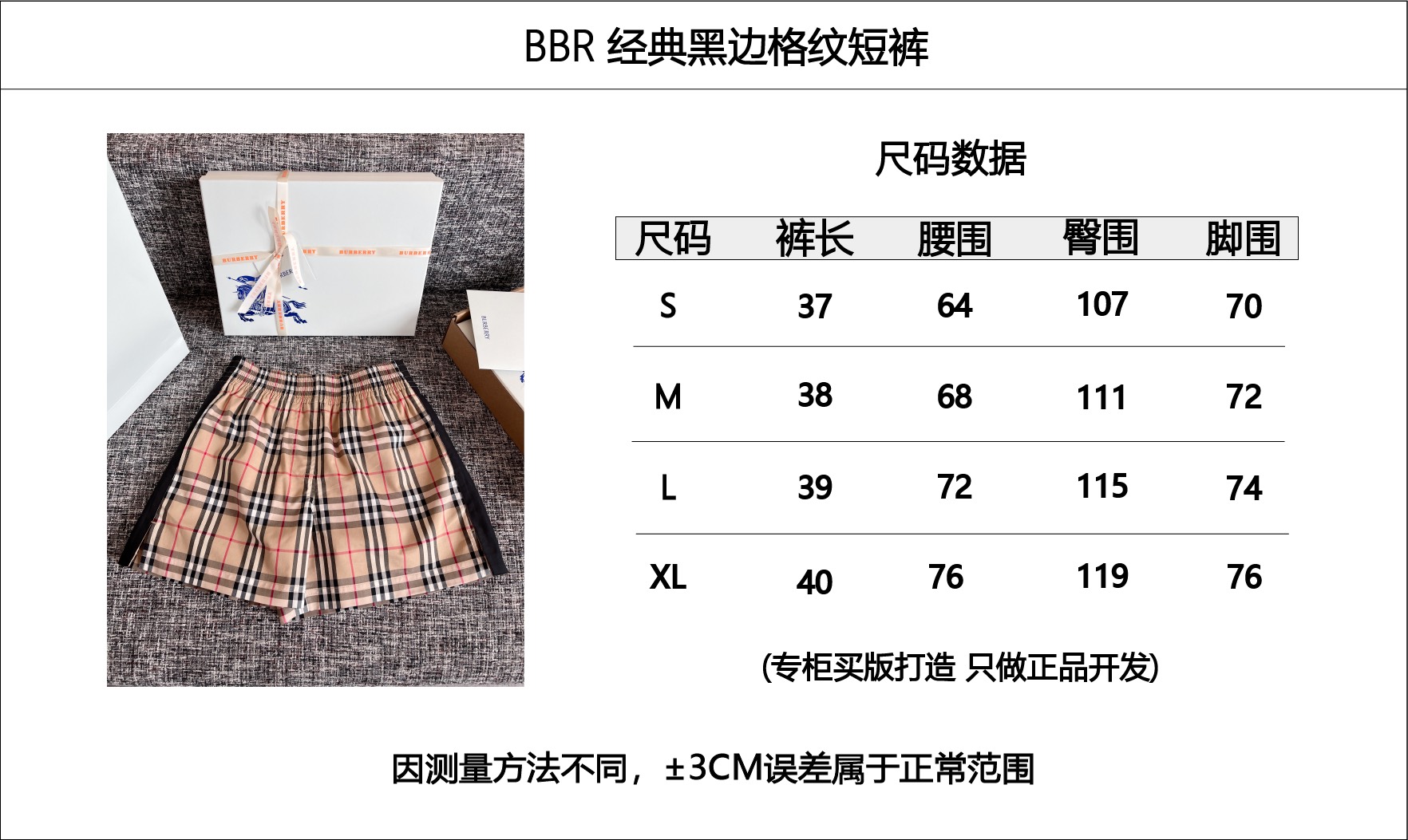 Burber* 25早春黑边格纹短裤 5100购买Zp拆解打