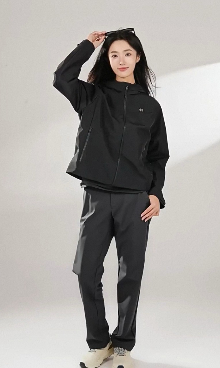 K隆女士防风防泼水连帽冲锋衣 短款箱型的落肩立体剪裁 上身很包容,后片也是采用微弧形下摆 前短后长避免拖沓感! 衣长及臀中下,上身舒适有型 对各种身材都很友好 完美适配从通勤到徒步的各种场景! 女士必收!这个版型很难得