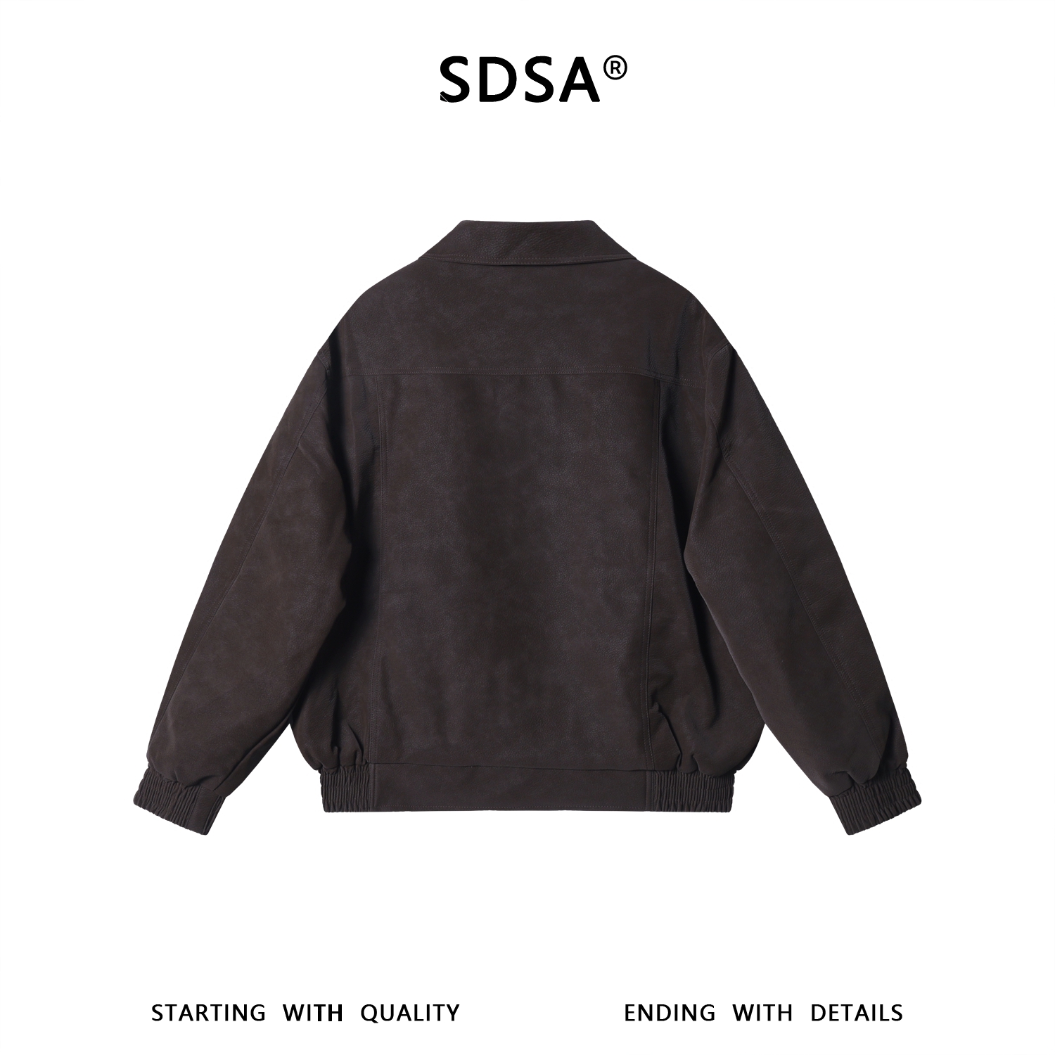 SDSA男士秋冬新款痞帅男装老钱风PU皮翻领夹克外套百搭时尚复古