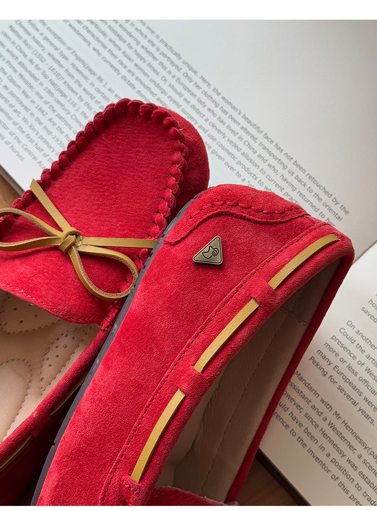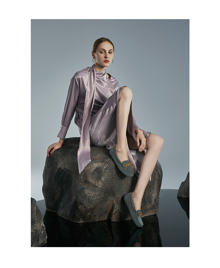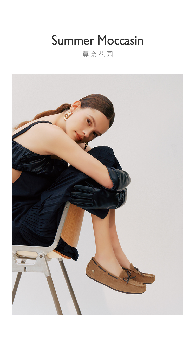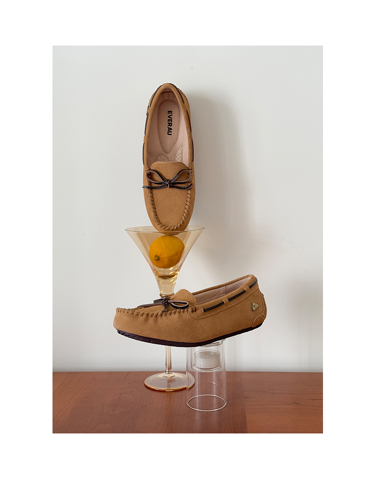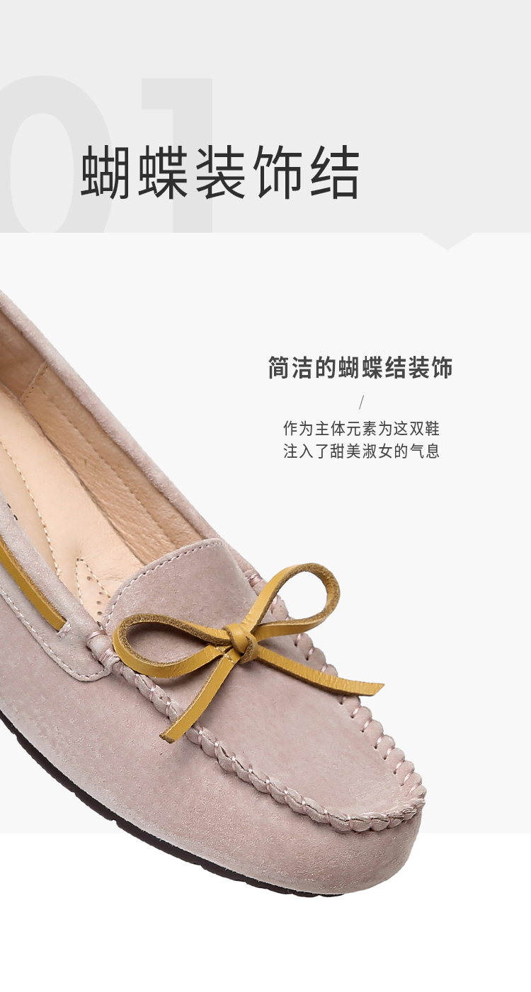 【澳洲品牌】EVERAU豆豆鞋女夏新款平底单鞋蝴蝶结百搭真皮一脚蹬乐福鞋EA1011