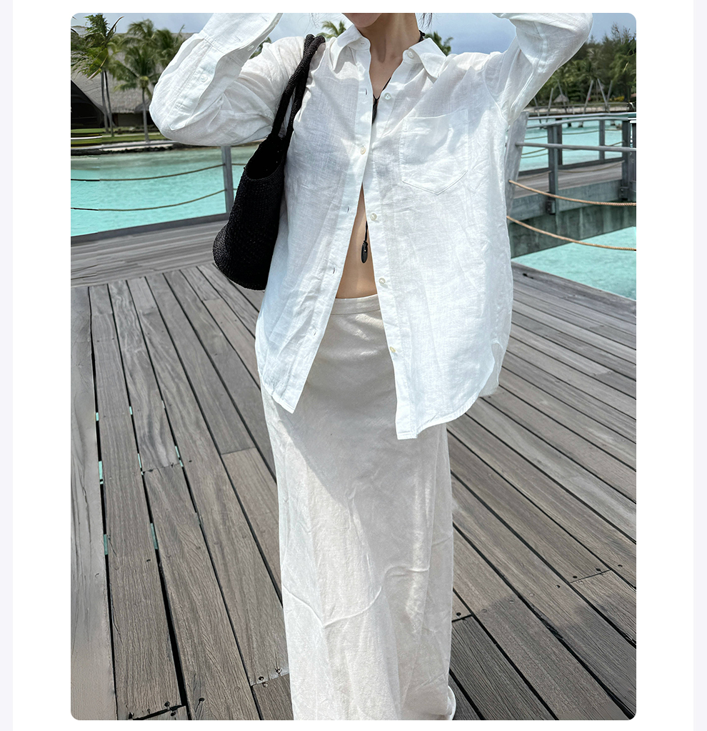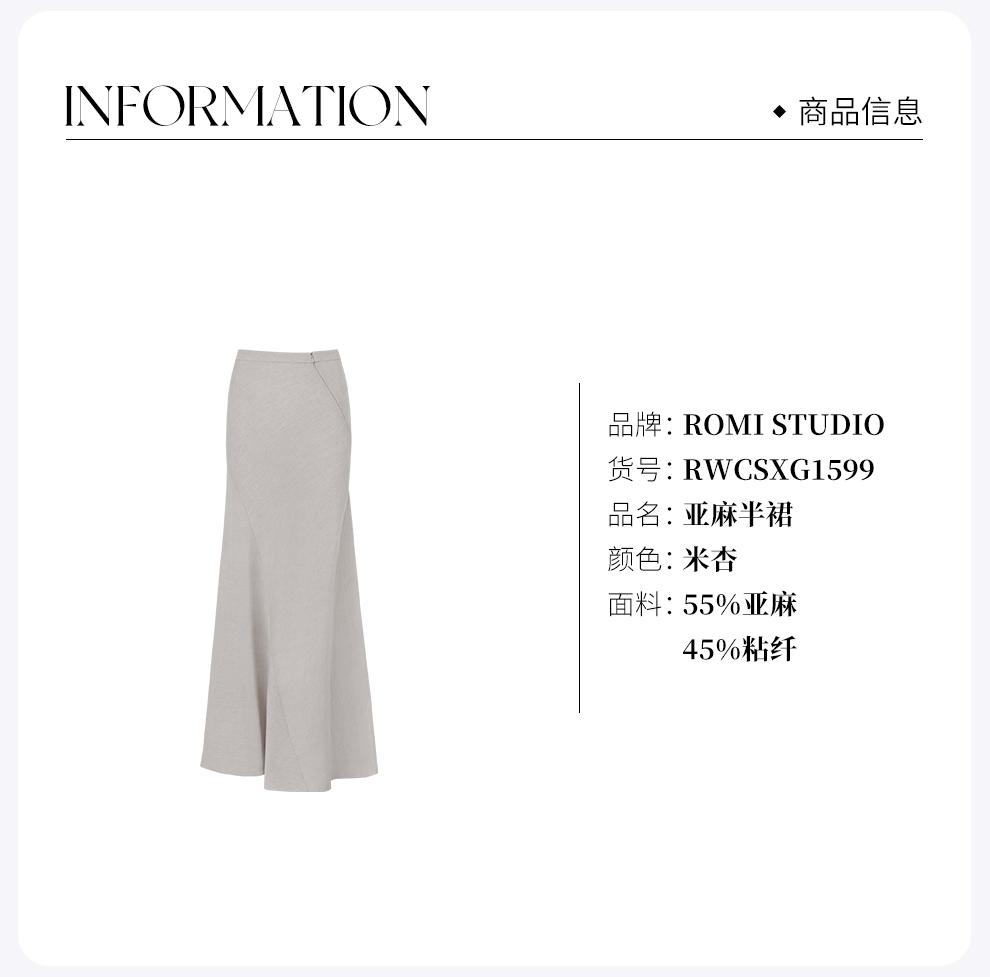 ROMI STUDIO“随性优雅”亚麻混纺立体斜裁高腰鱼尾半裙 RWCSXG1599