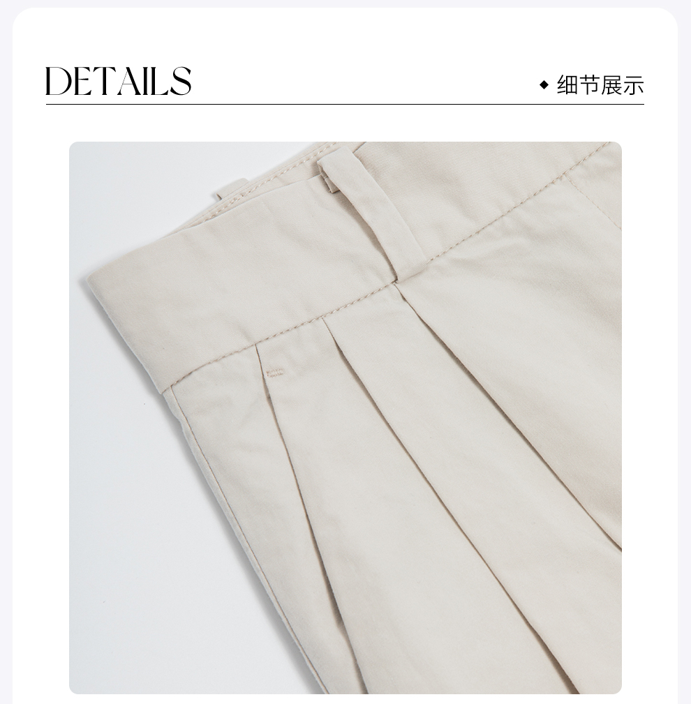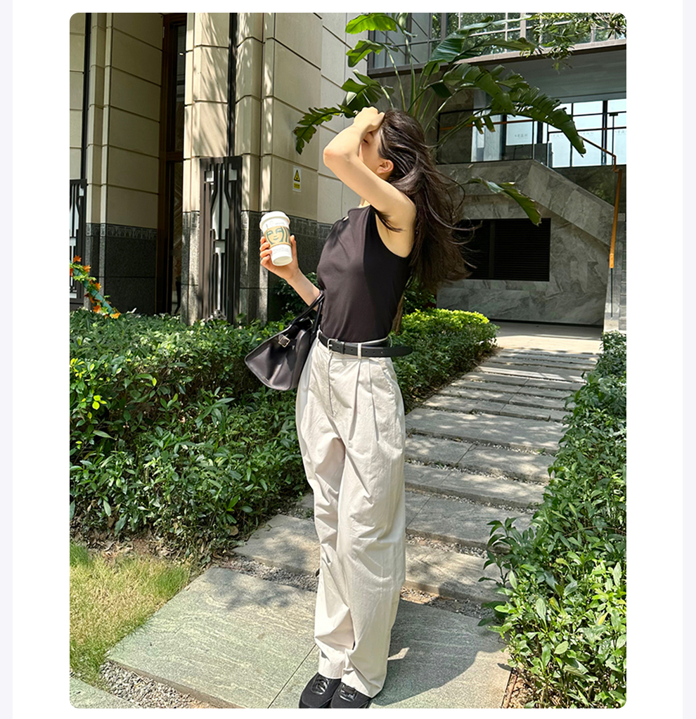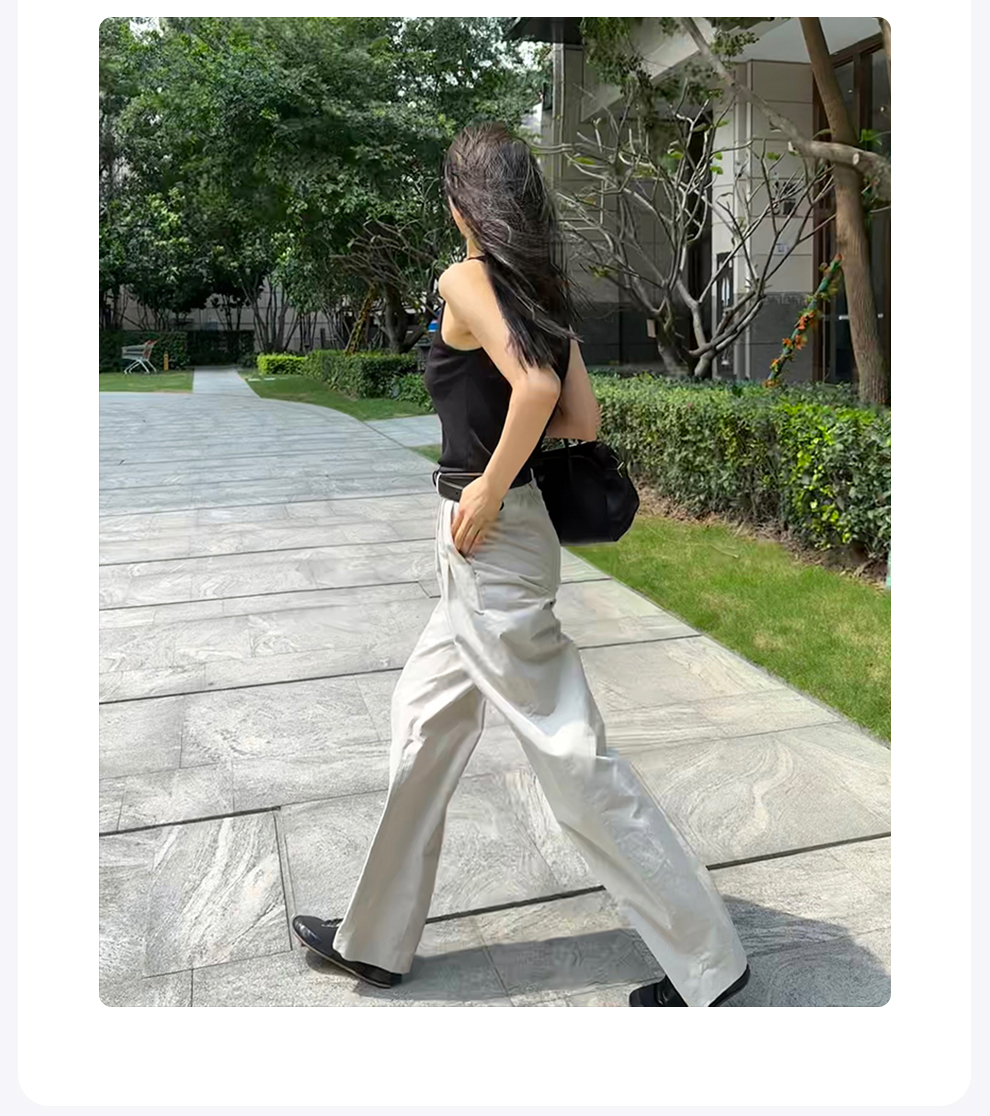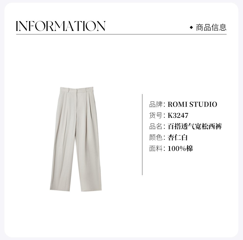 ROMI STUDIO百搭透气 舒适斜纹棉高腰直筒设宽松灰白西裤 K3247