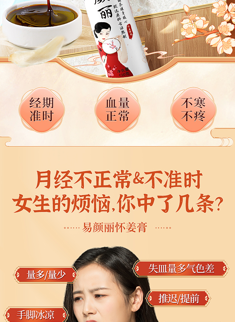 易颜丽怀姜膏月经延迟不准时暖宫驱寒改善体质调理气血不足