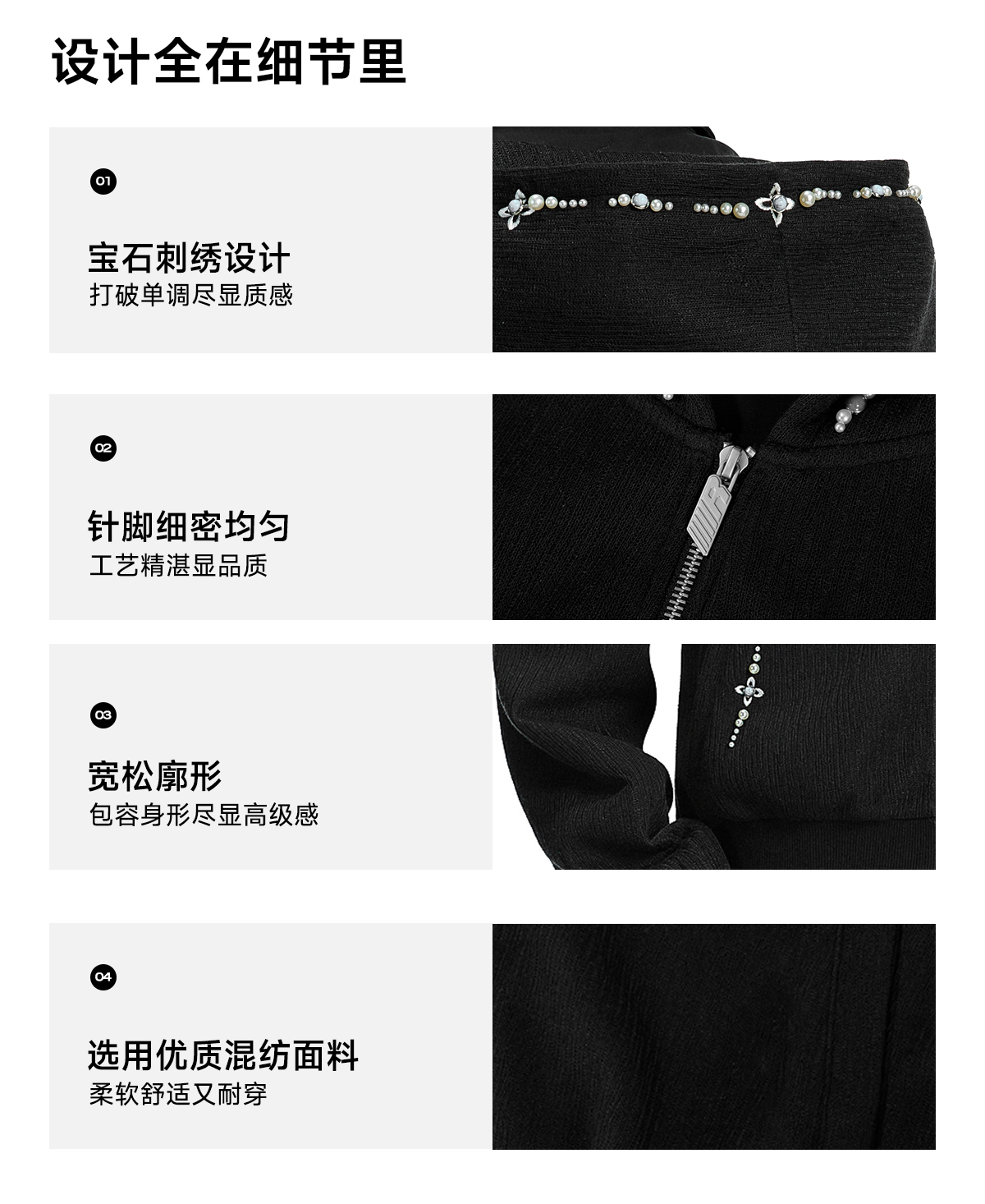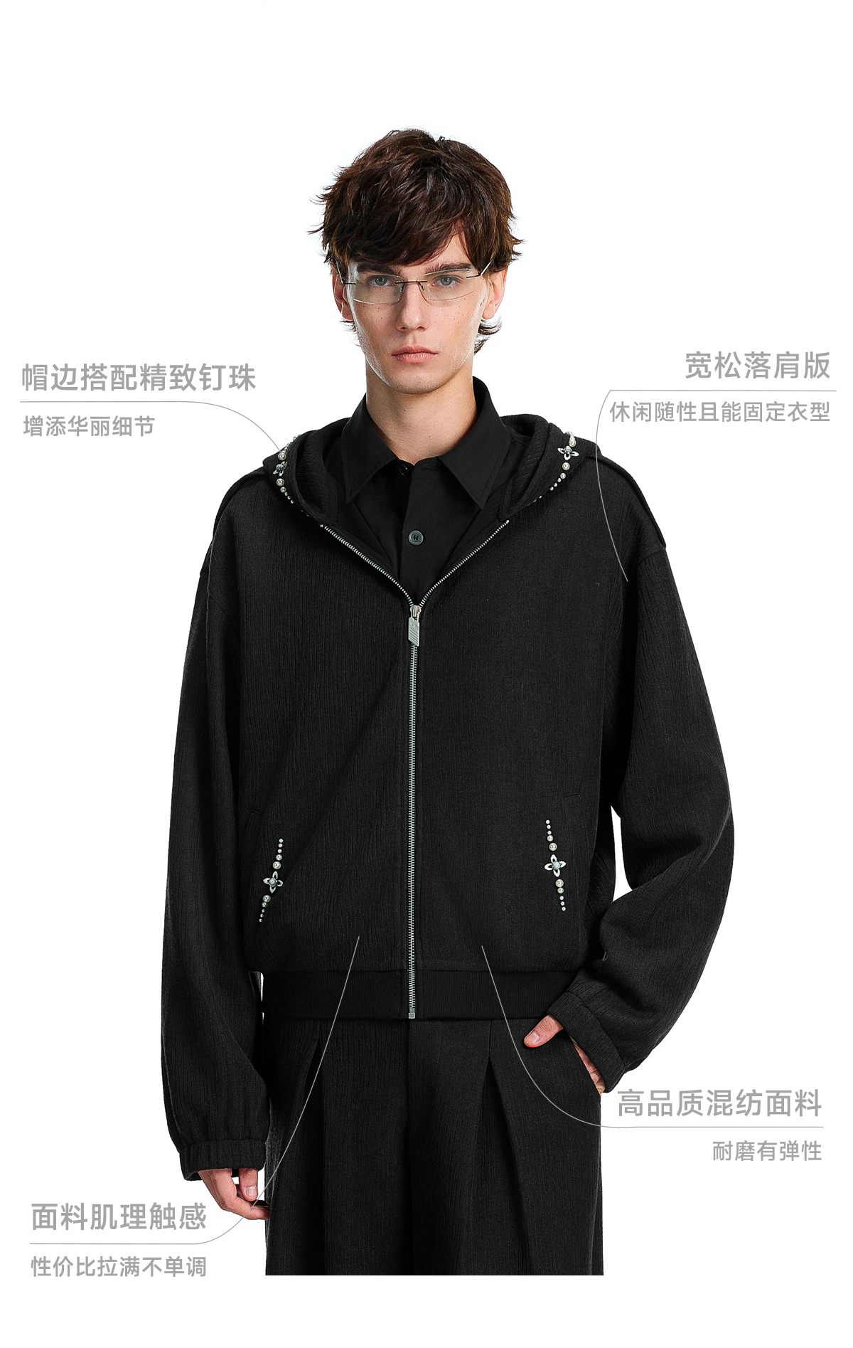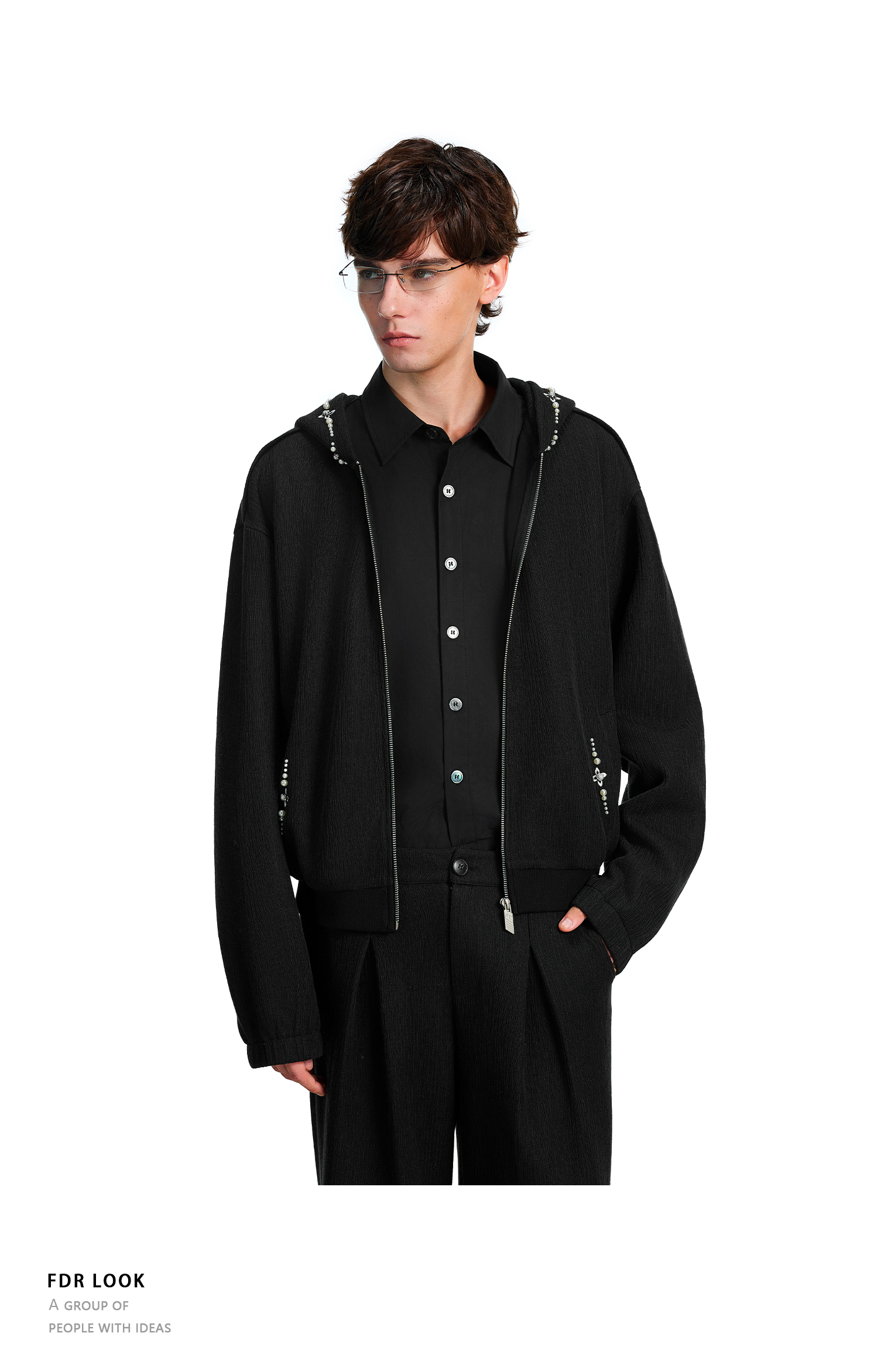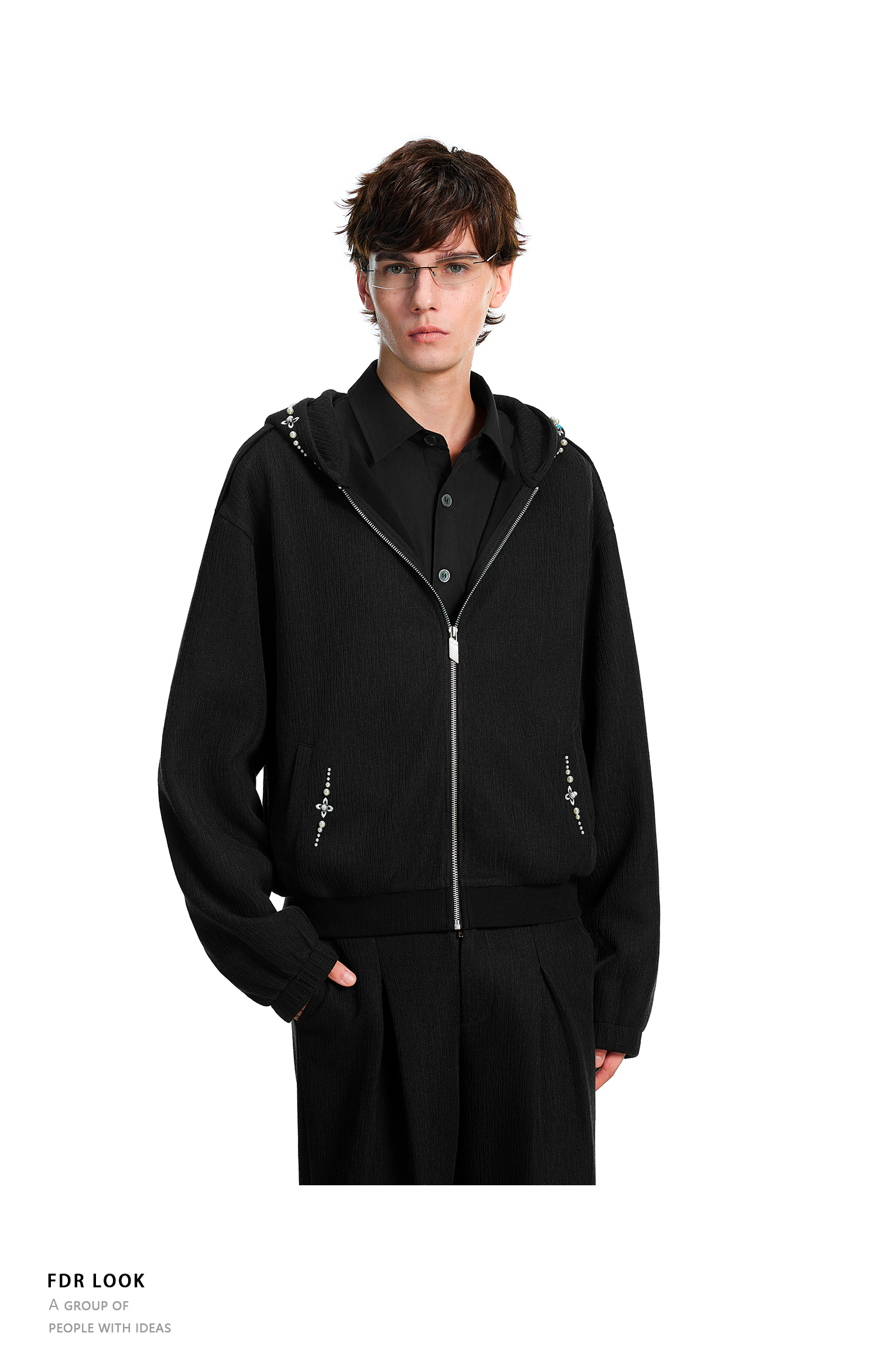 FDR官方店 宝石刺绣肌理连帽外套国潮牌秋季宽松休闲情侣男女