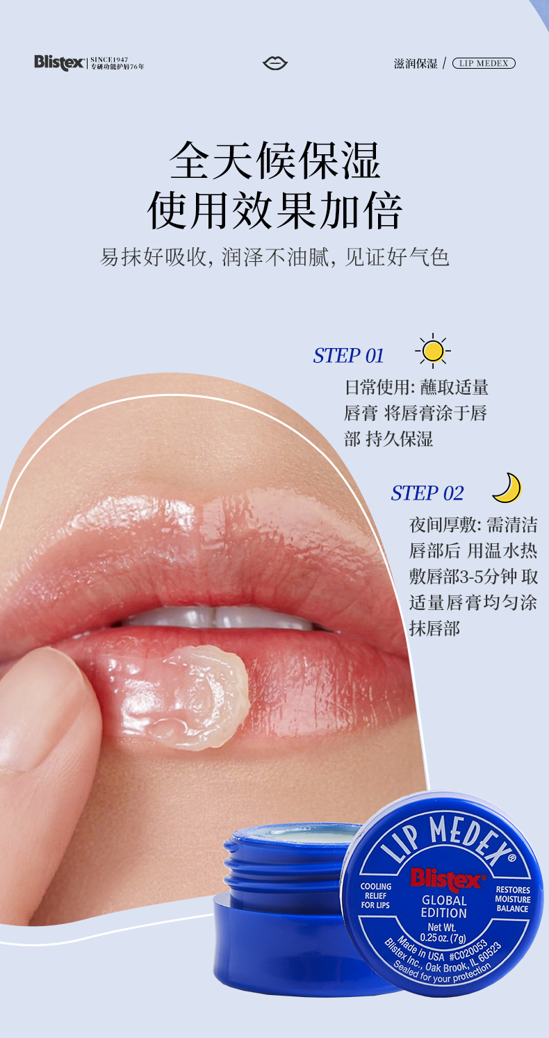 【生产日期】:百蕾适滋润修护润唇膏SPF25(小白管)效期到27年5月 (保质期3年)