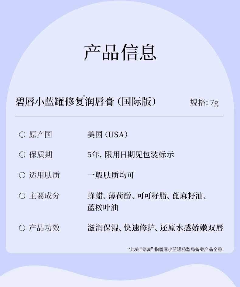 百蕾适小蓝罐修复润唇膏7g(小蓝罐)效期到29年12月(保质期5年)