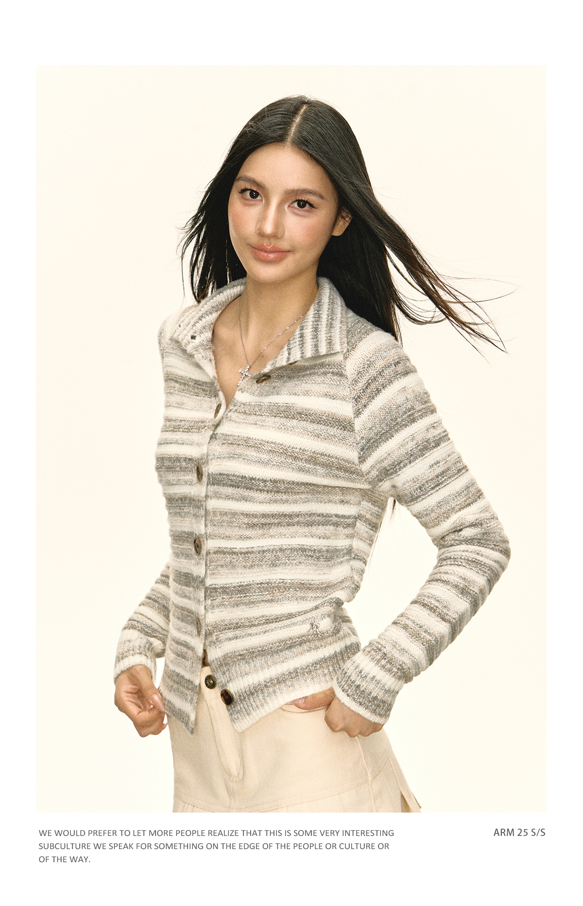 Ariseism 美式复古设计感长袖针织衫开衫毛衣女秋季新款上衣
