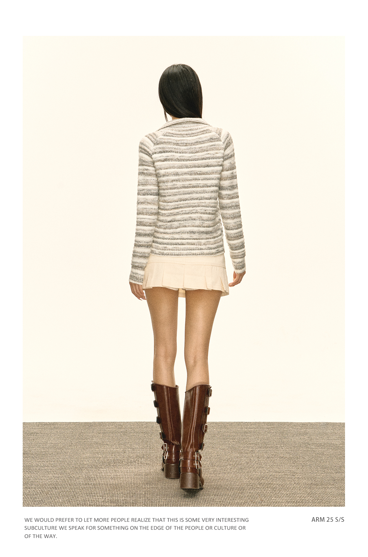 Ariseism 美式复古圆领针织开衫毛衣女春秋新款上衣