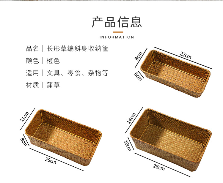 【小中大号可选】娜家草编长形收纳盒