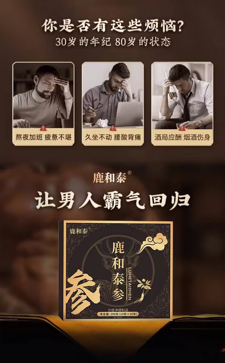 鹿和泰参可以提升精气神,含有鹿鞭,鹿血,黄精等等中药成分,这些成分里面含有比较丰富的营养,滋补身体效果是比较好的,服用以后可以缓解人体的疲劳,男性在大量运动后或者生活压力过大时都会产生疲惫感,通过服用鹿和泰参能够有效的增强男性体力和经历,补充身体元气,从而清除疲惫感,对改善身体疲劳感具有较好的效果。