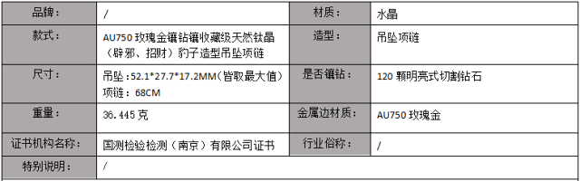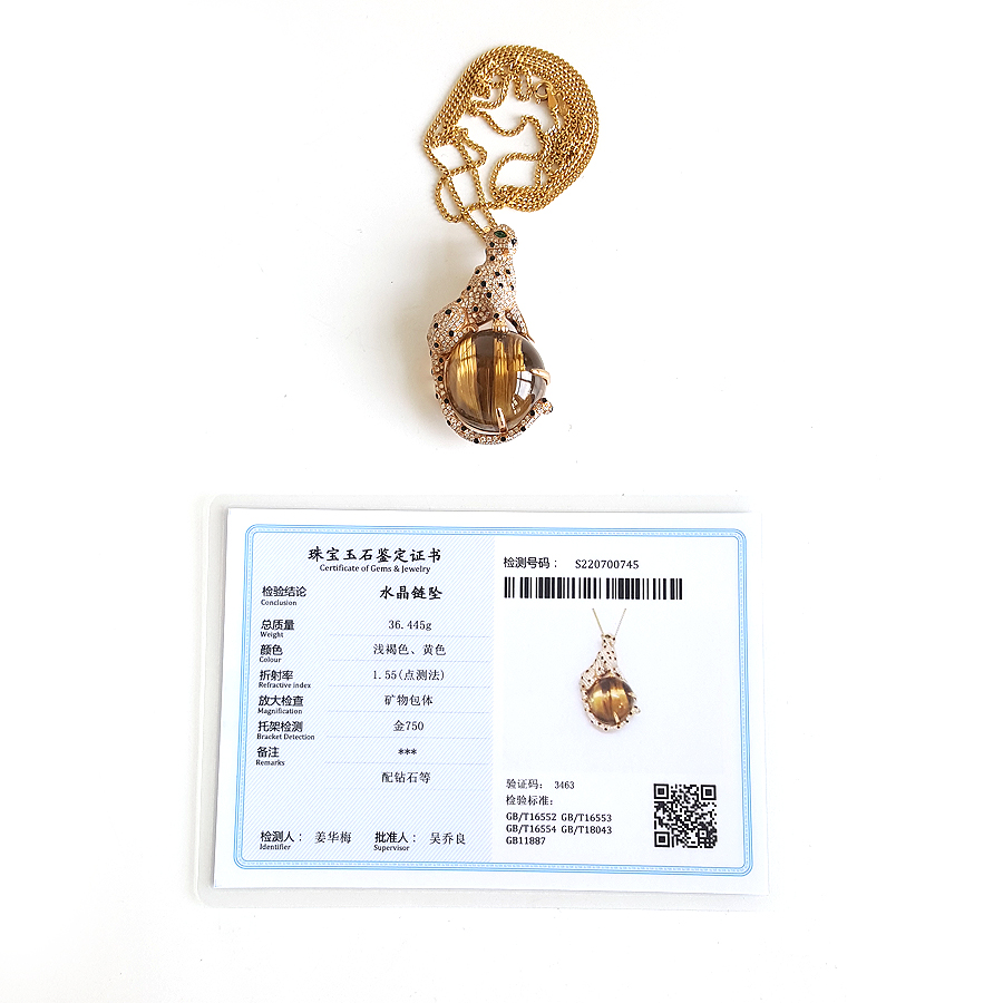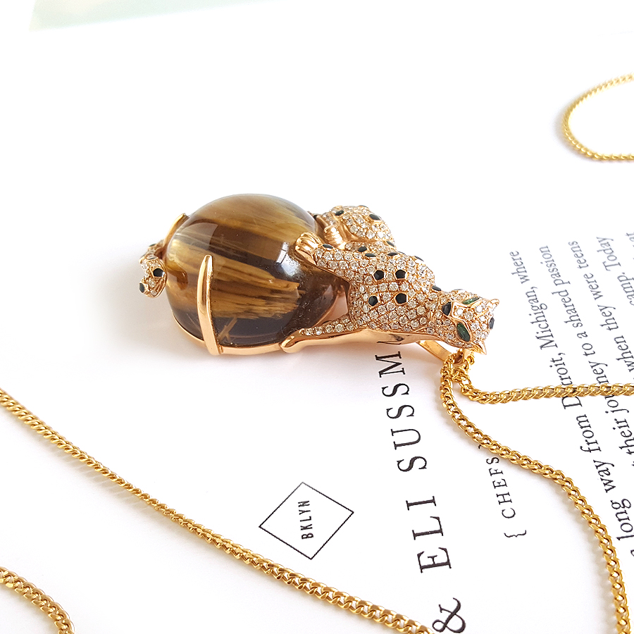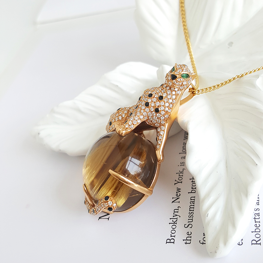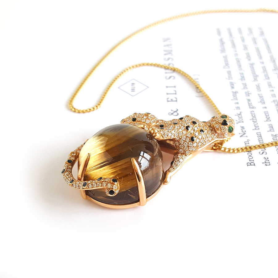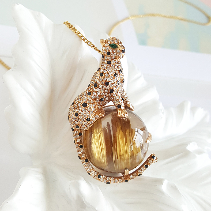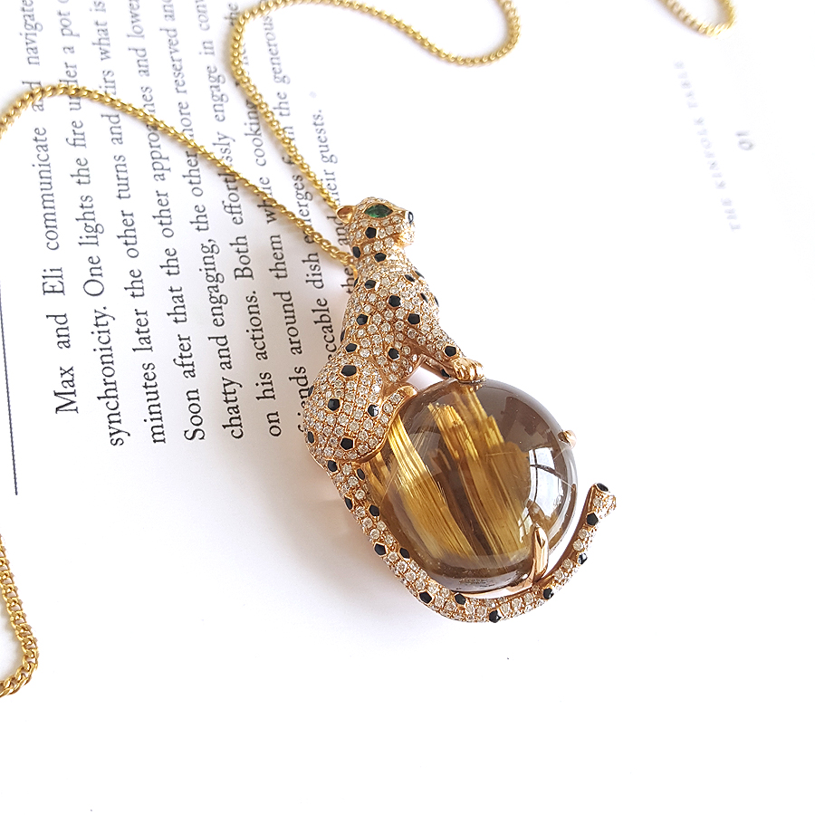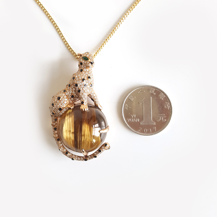 【天然正品】收藏级天然钛晶豹子造型吊坠项链 链长68CM 210722NJS13+