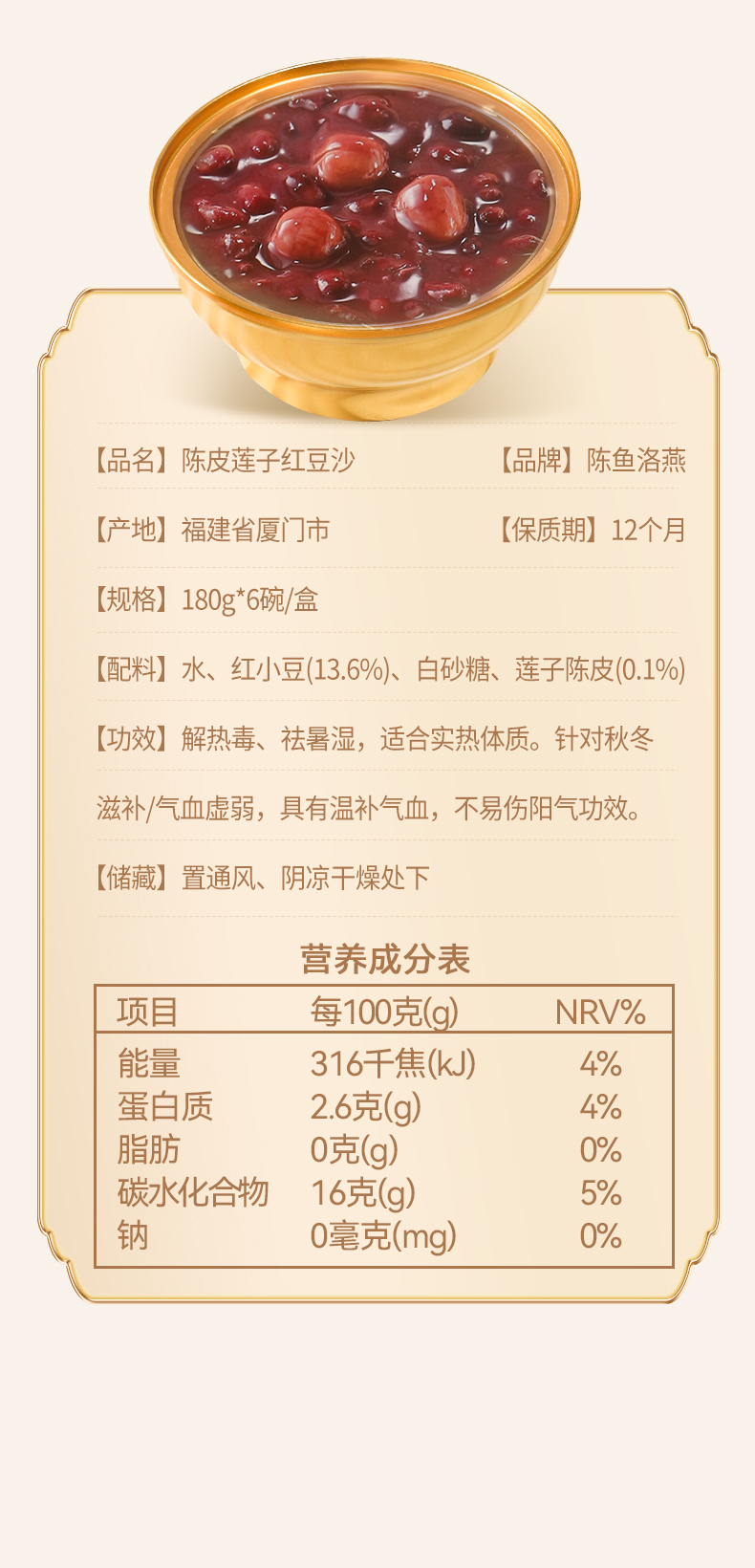 陈鱼洛燕-陈皮莲子红豆沙/陈皮莲子绿豆沙(礼盒装)